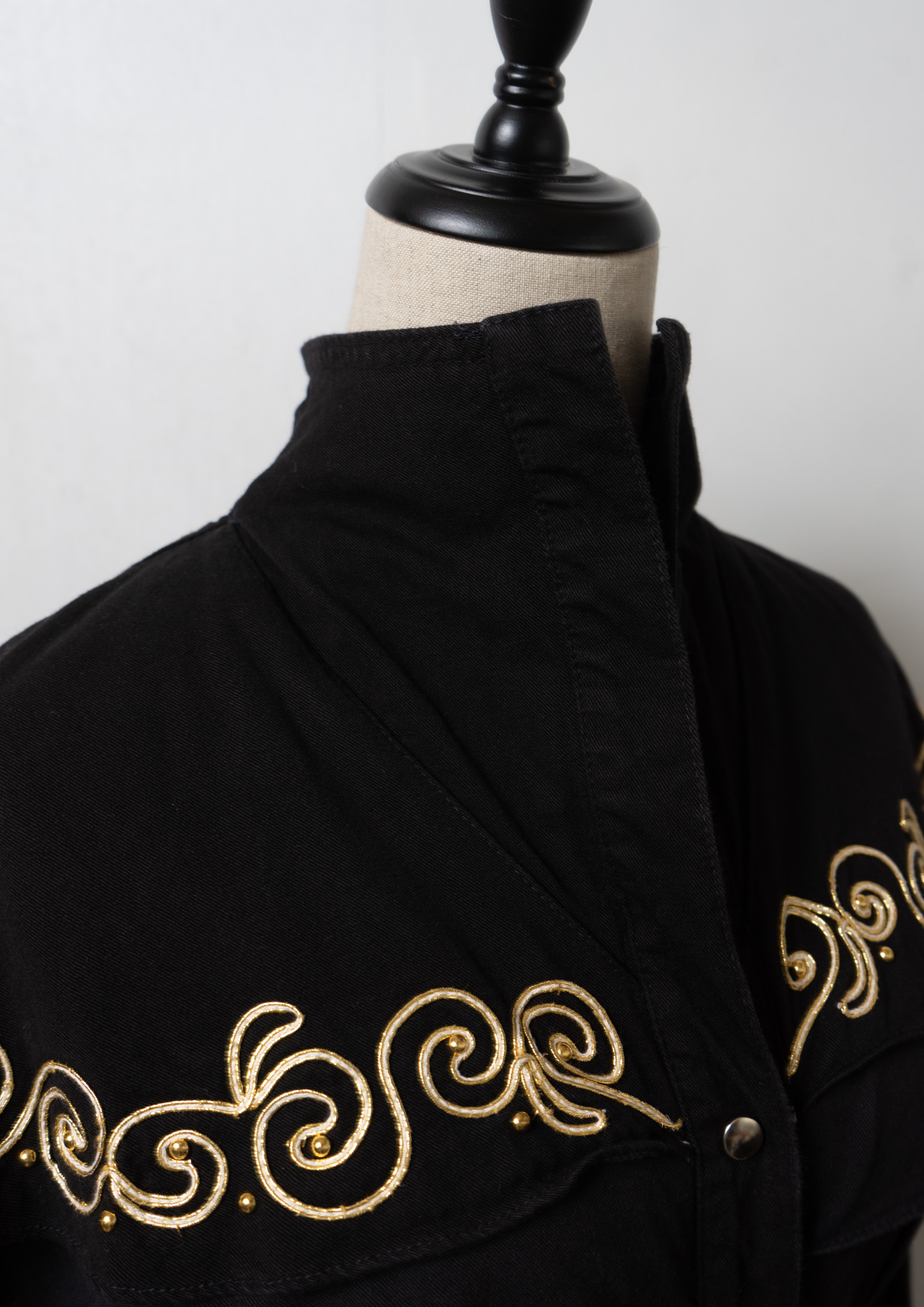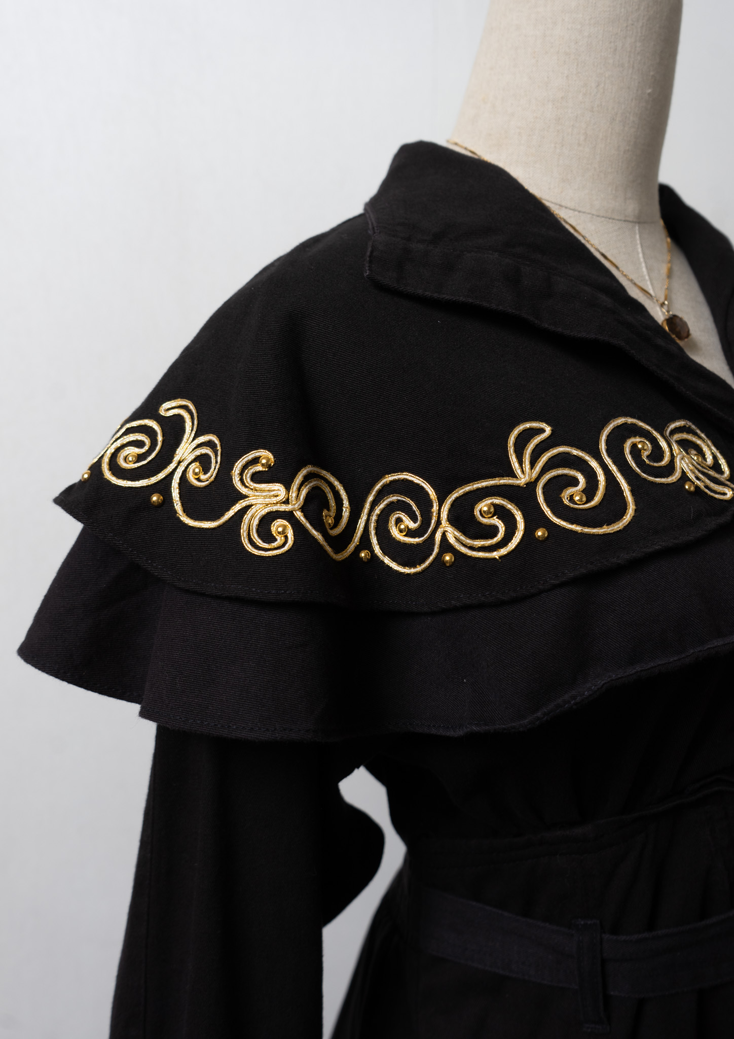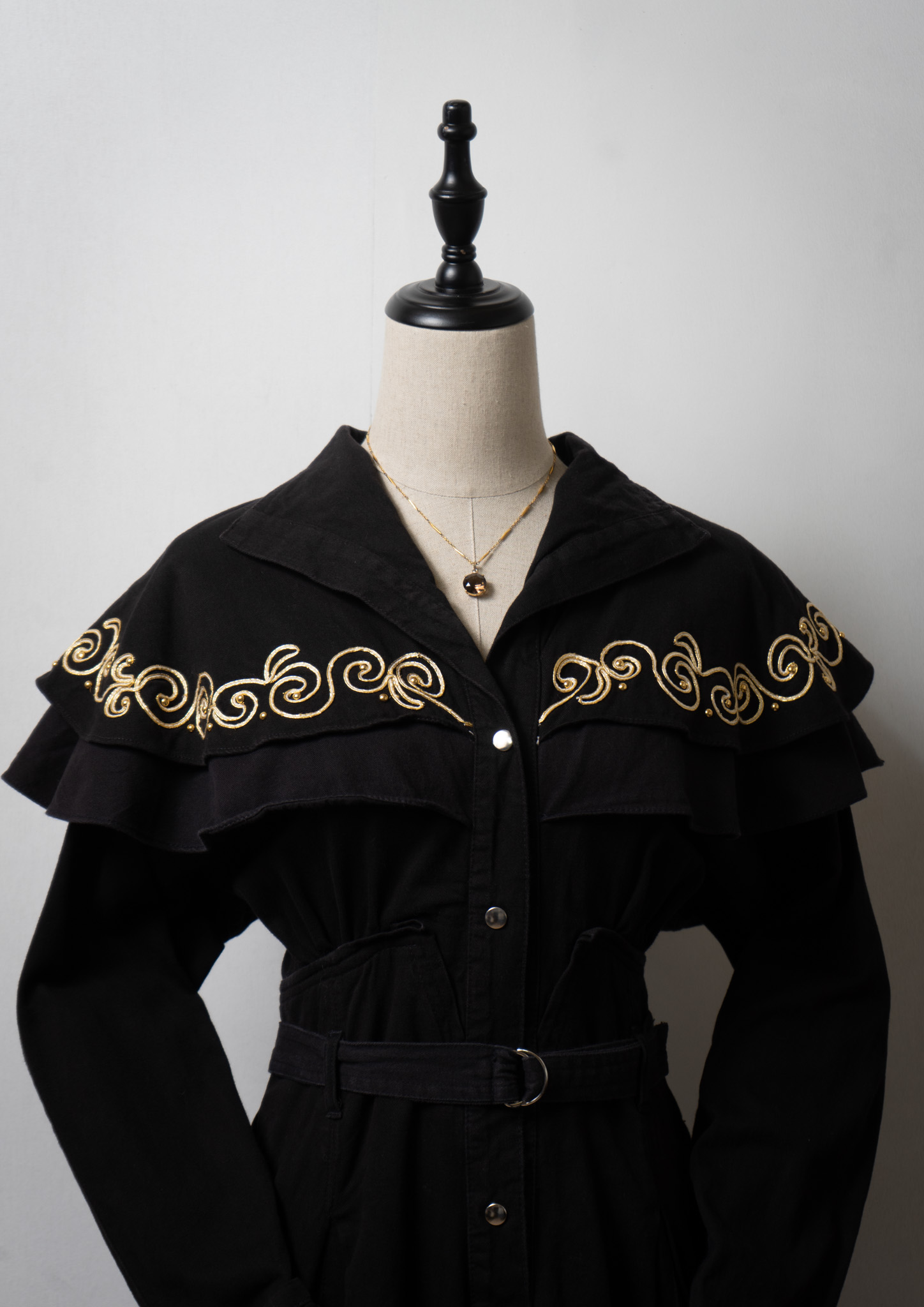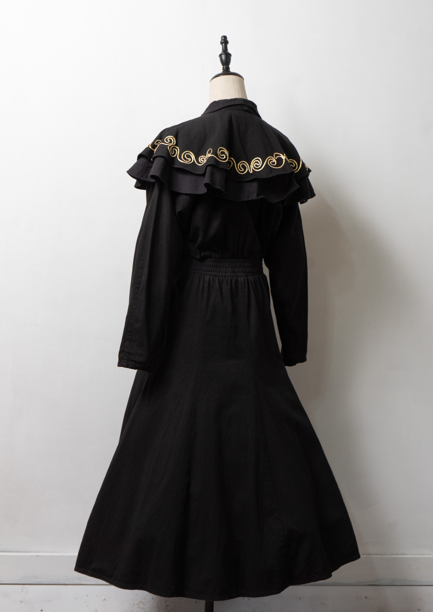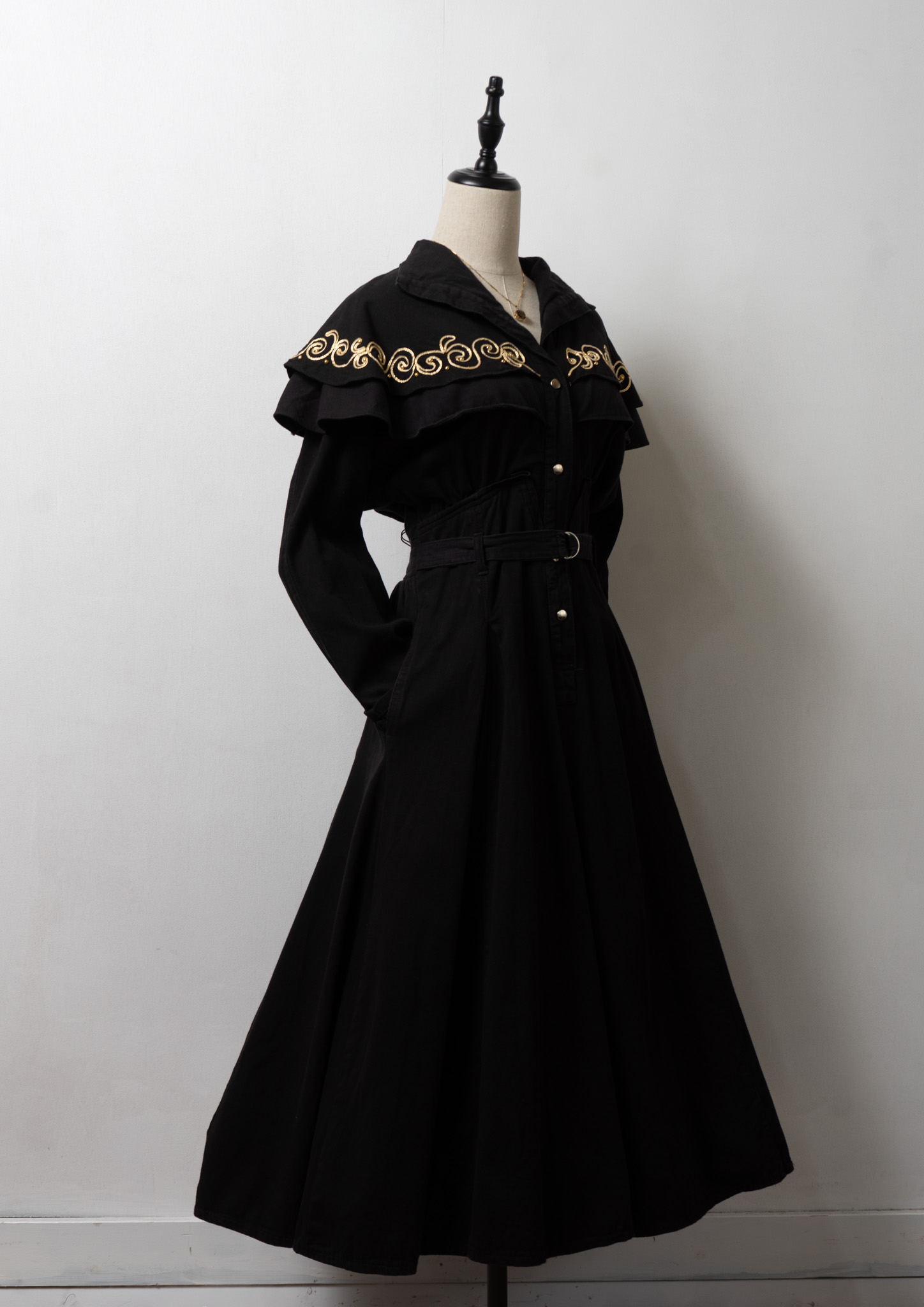80's USA Gold Rope × Studs Design Black Dress