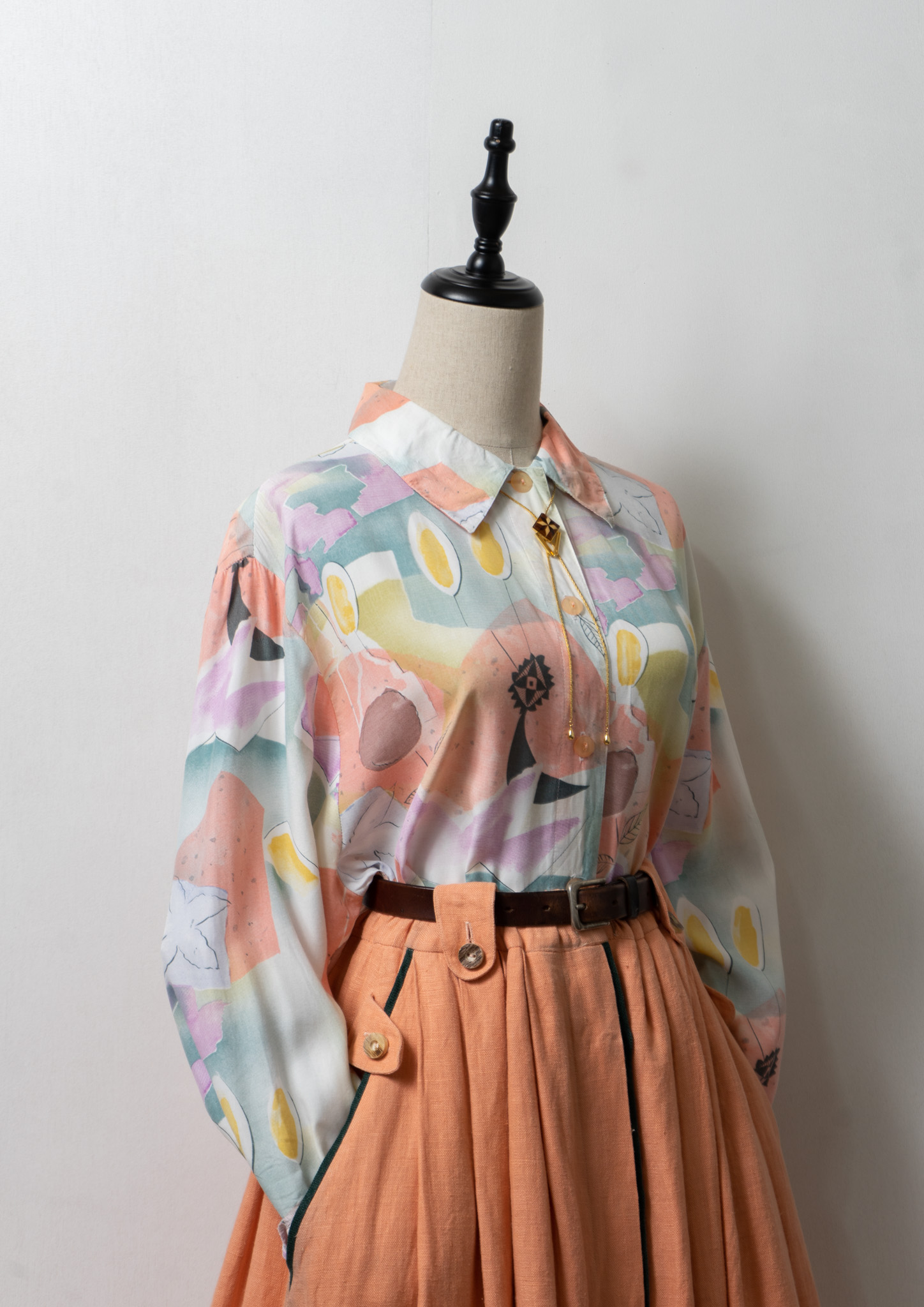 90's Art Pattern Pale Color Blouse