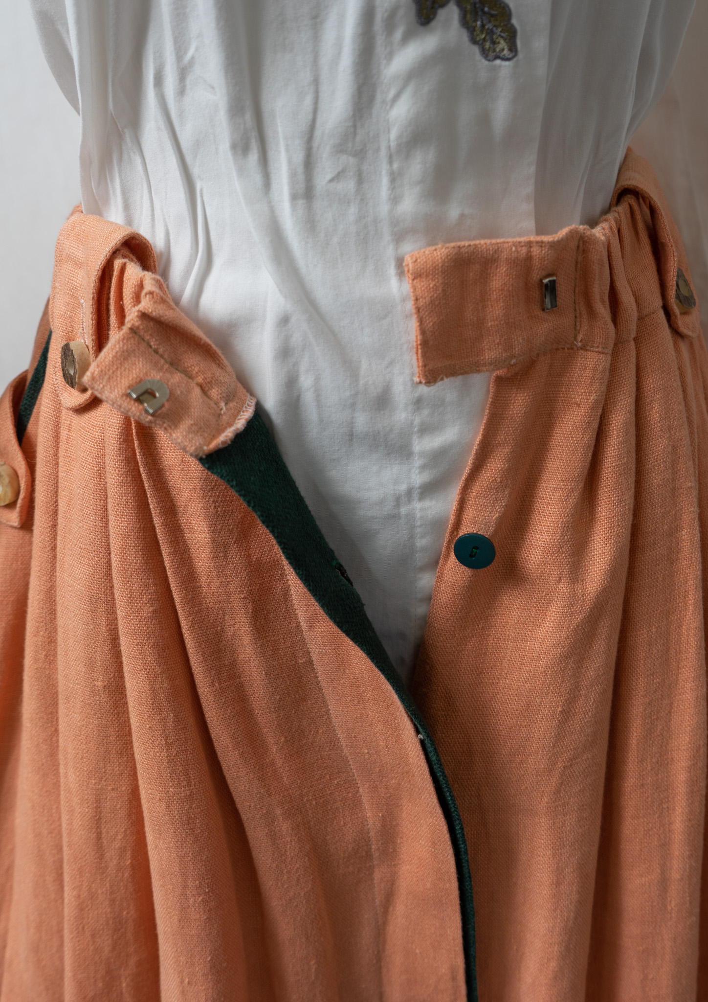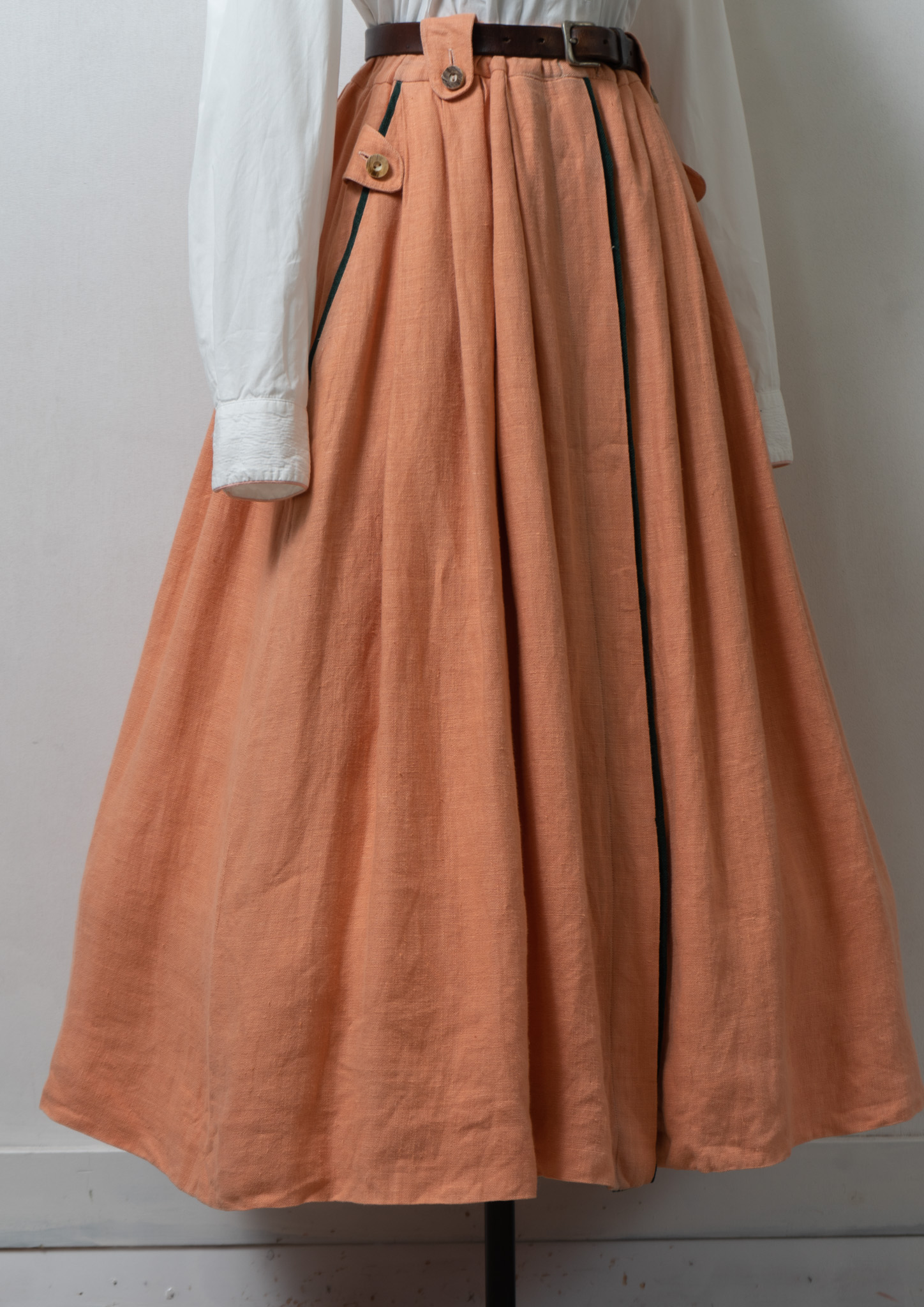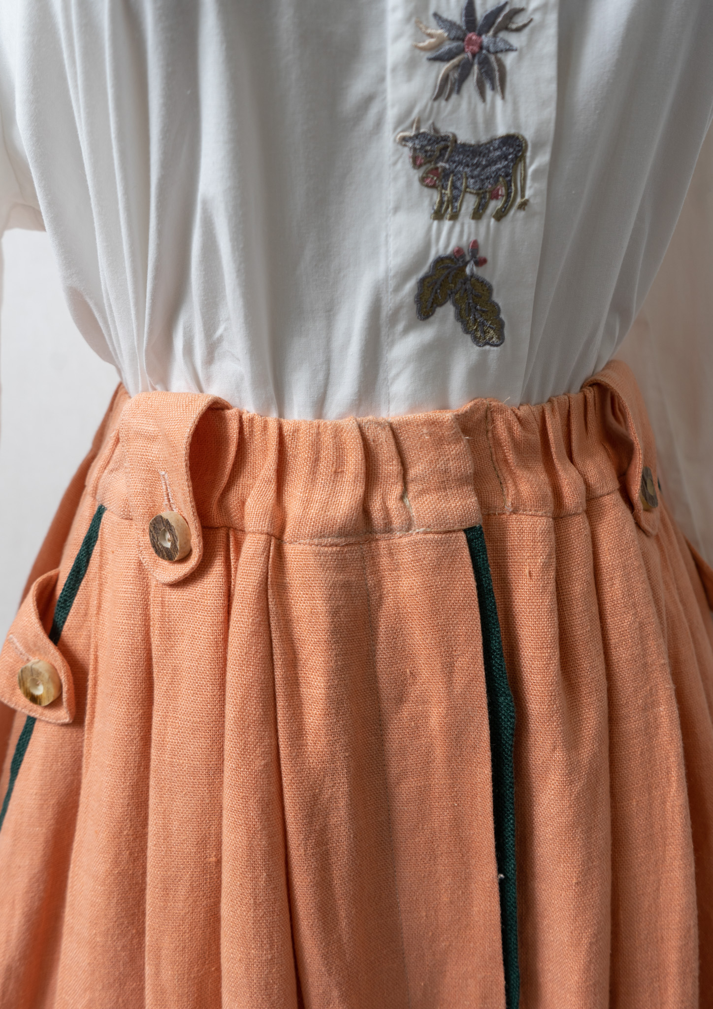 90's Green Piping Like Design Pale Orange Tyrol Skirt
