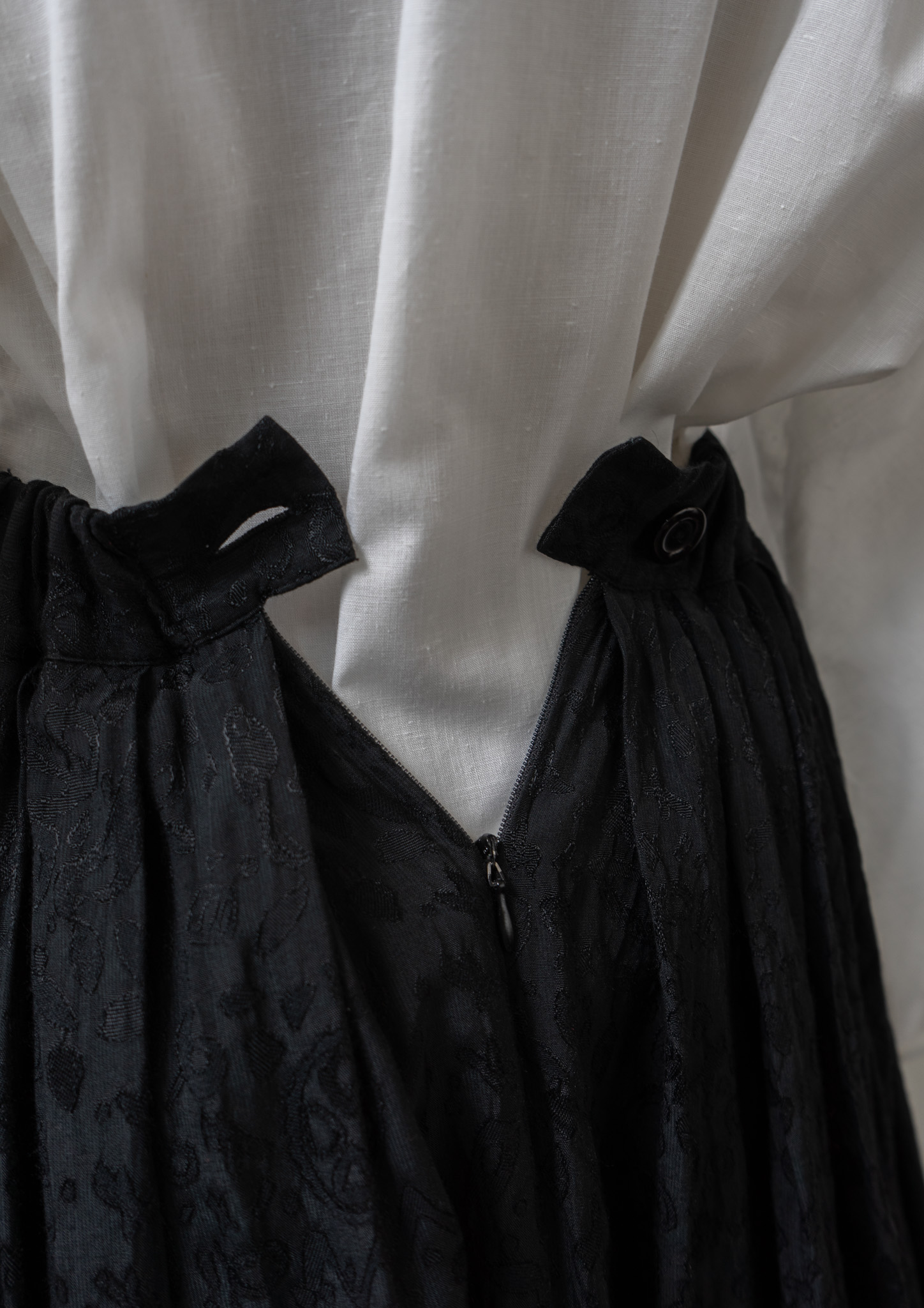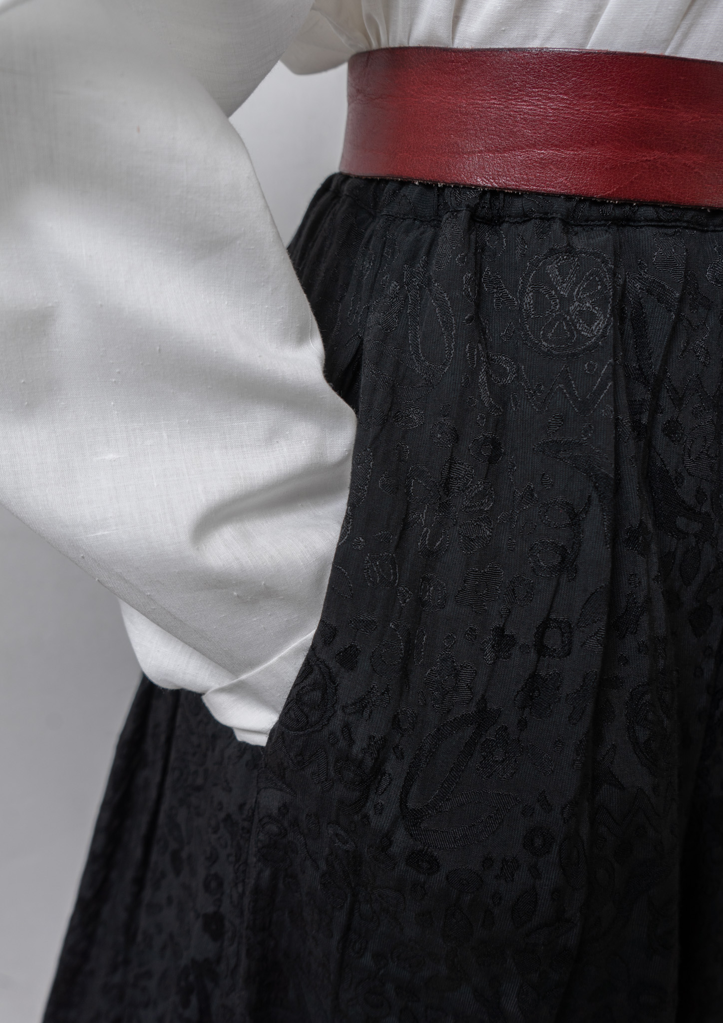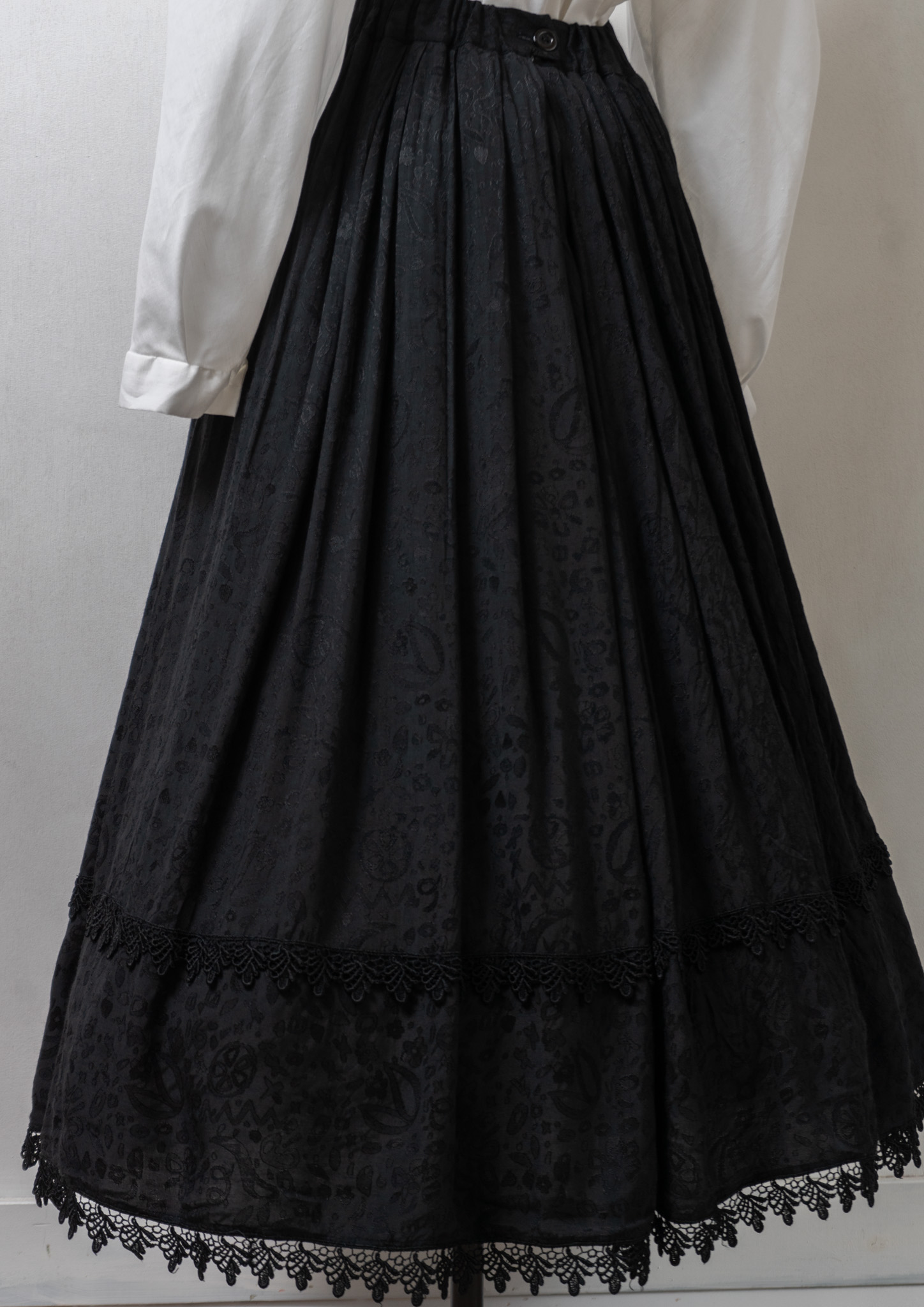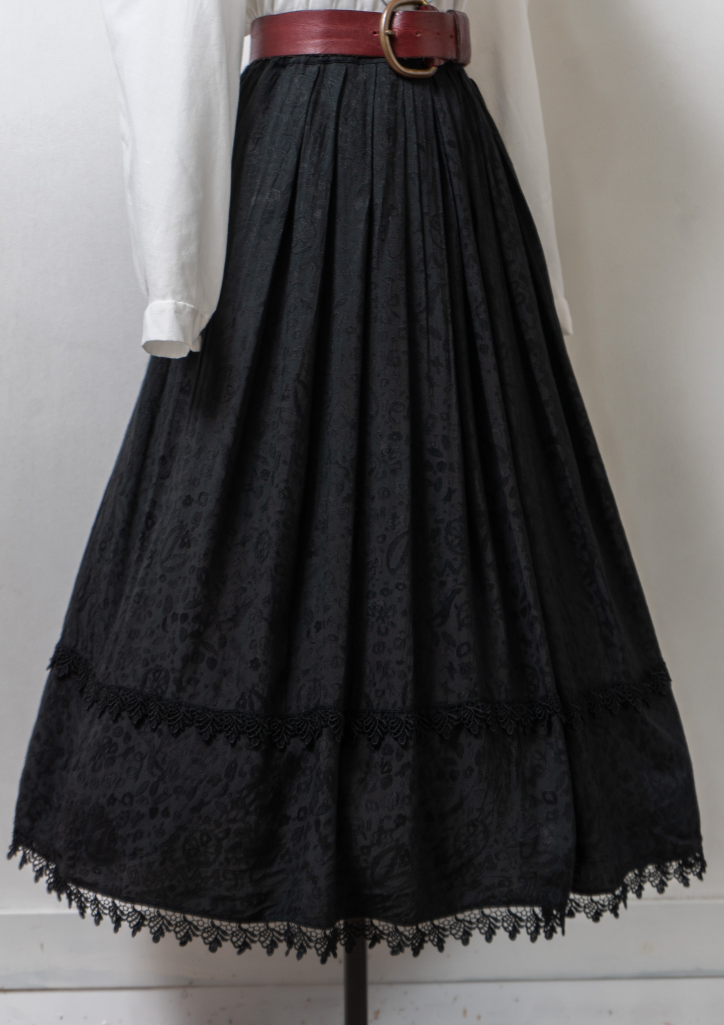 80's Euro Velours & Embroidery Tape Design Black Sheer Skirt