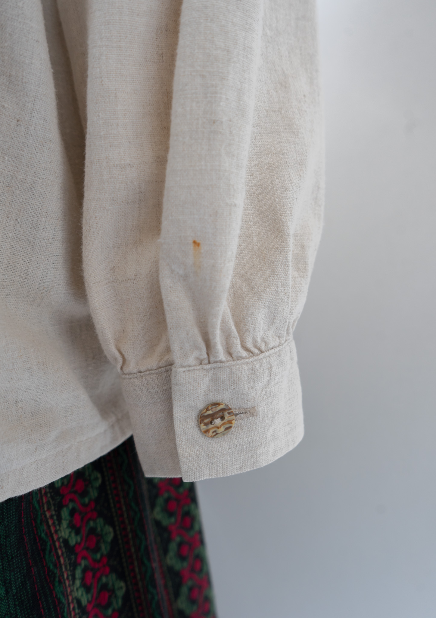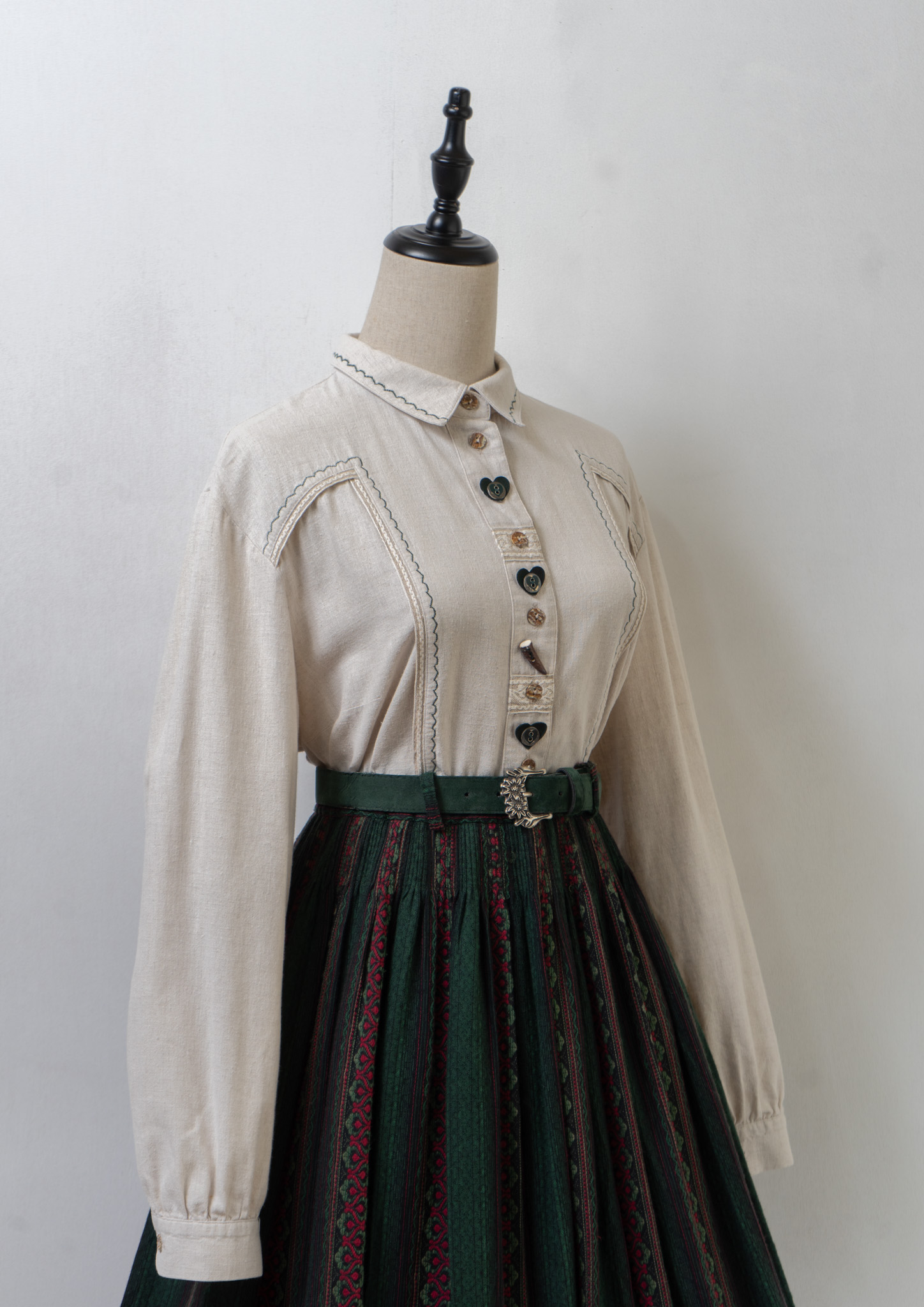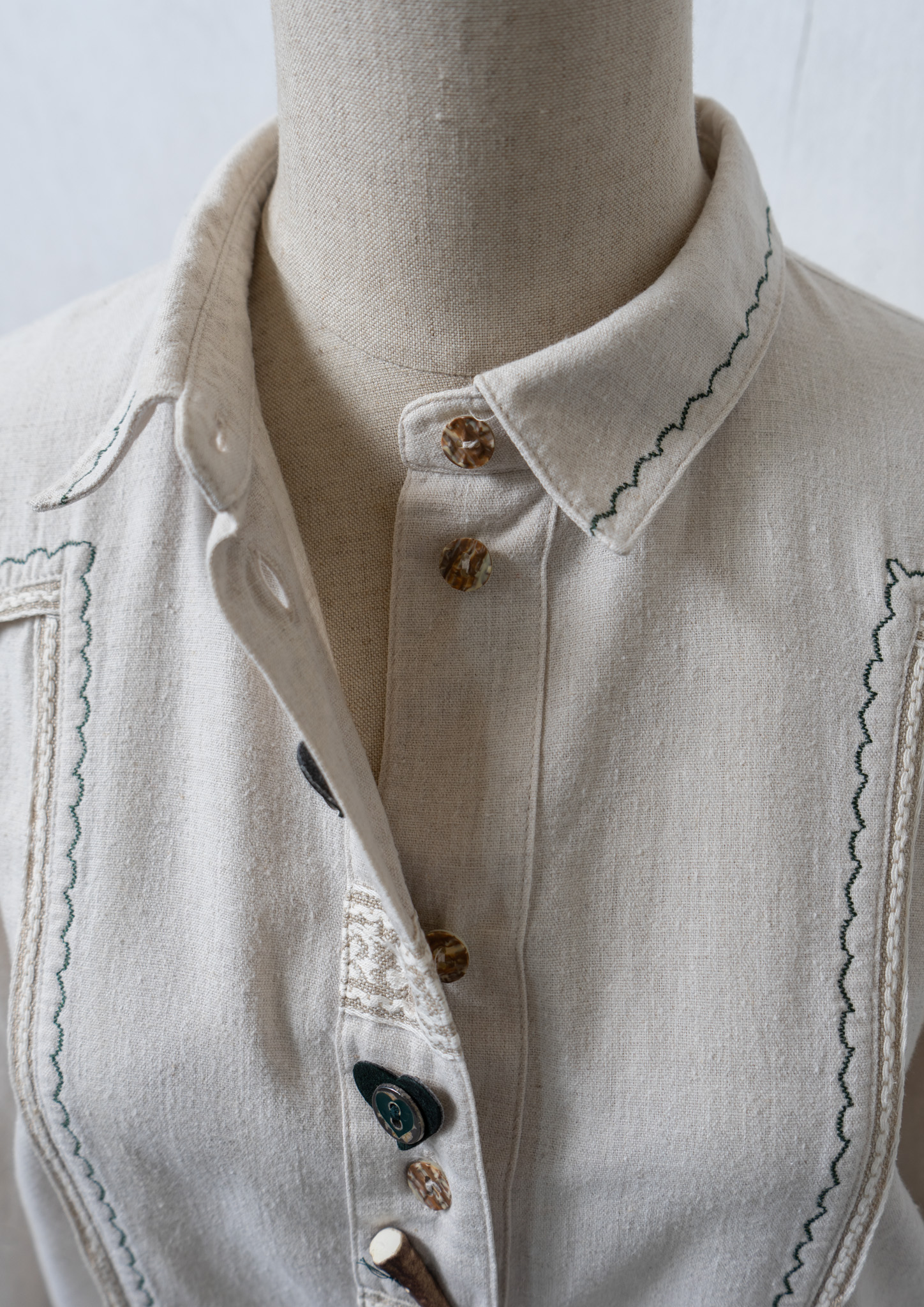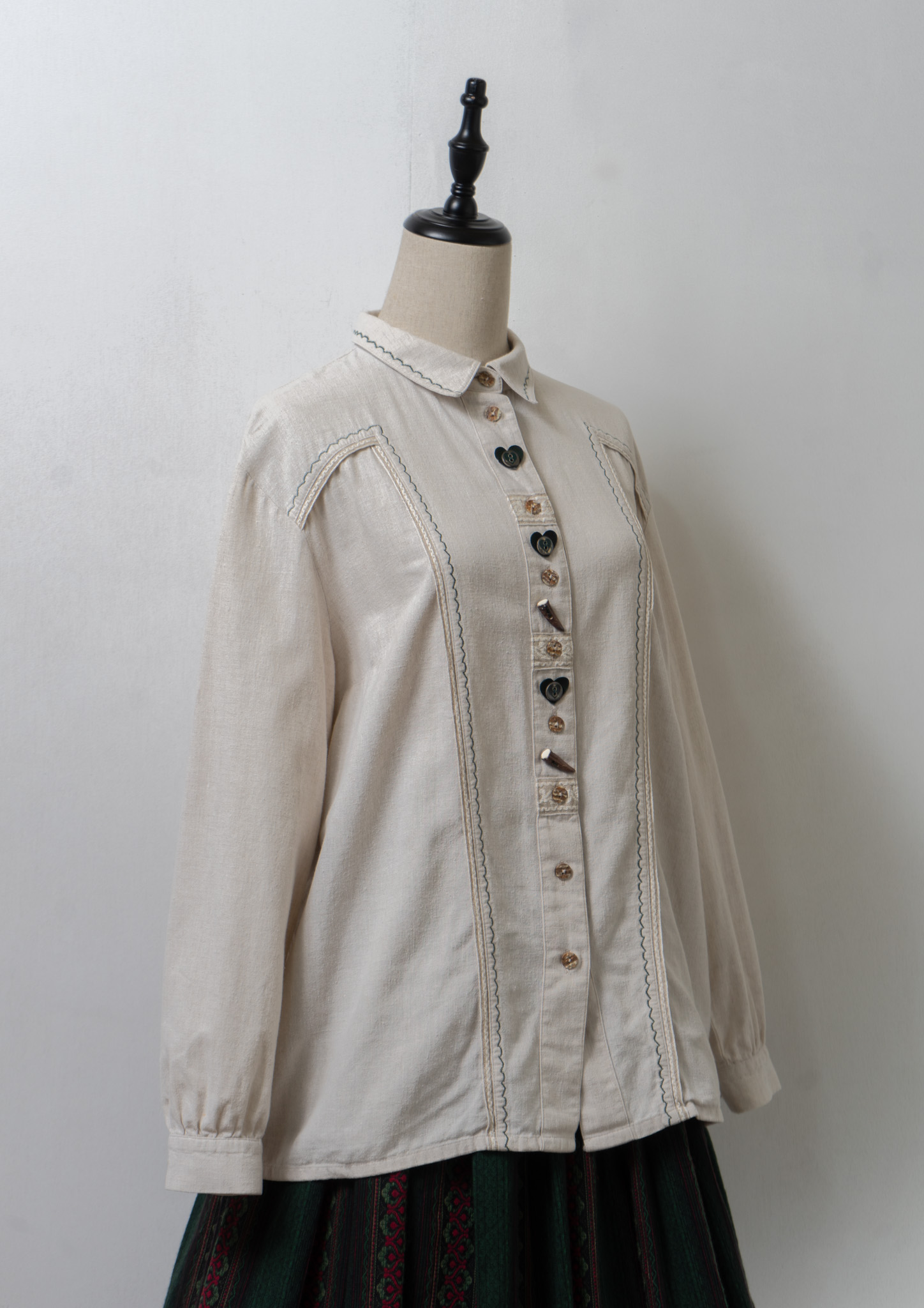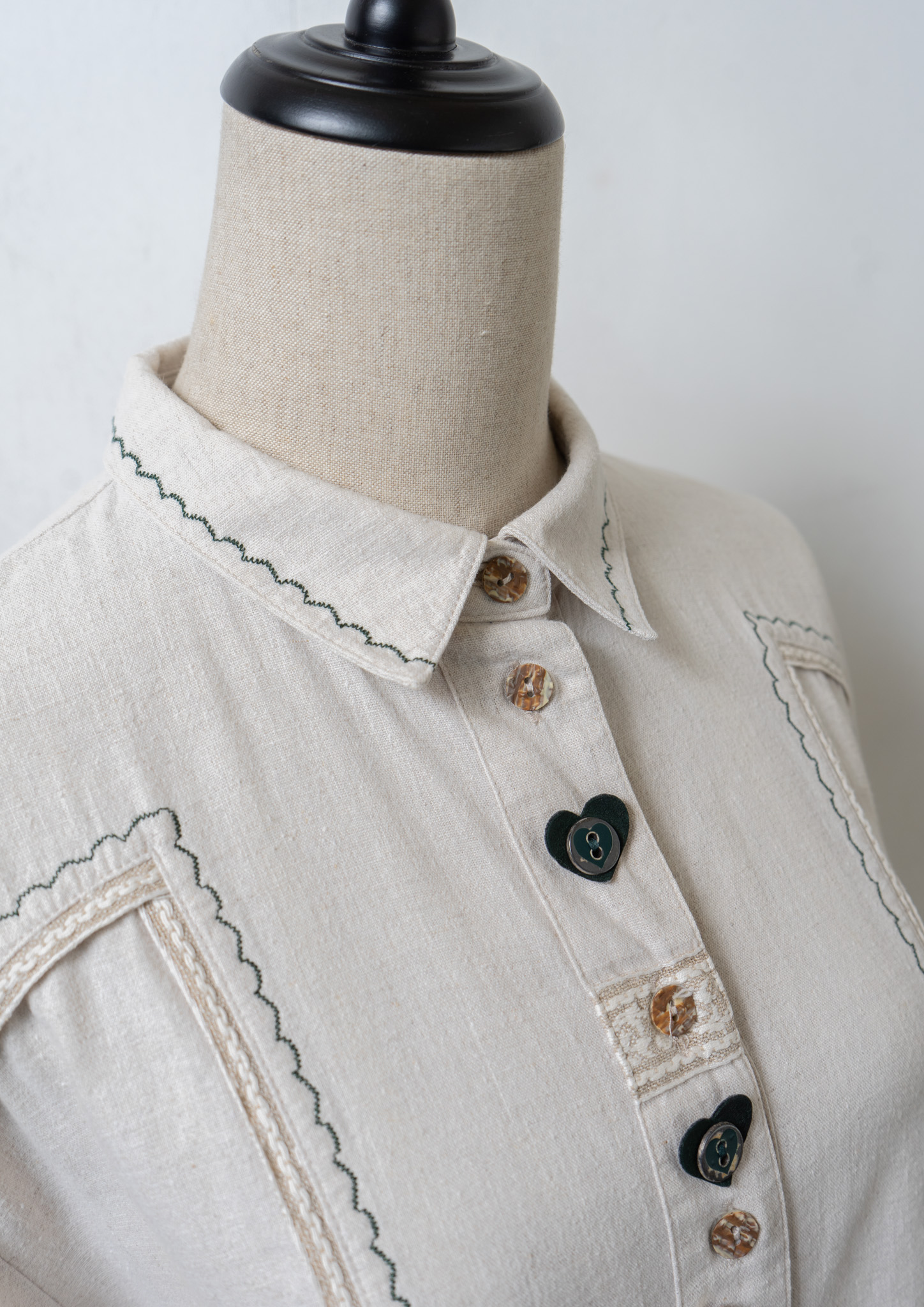 90's Various Button Design Green Stitch Cotton Linen Blouse