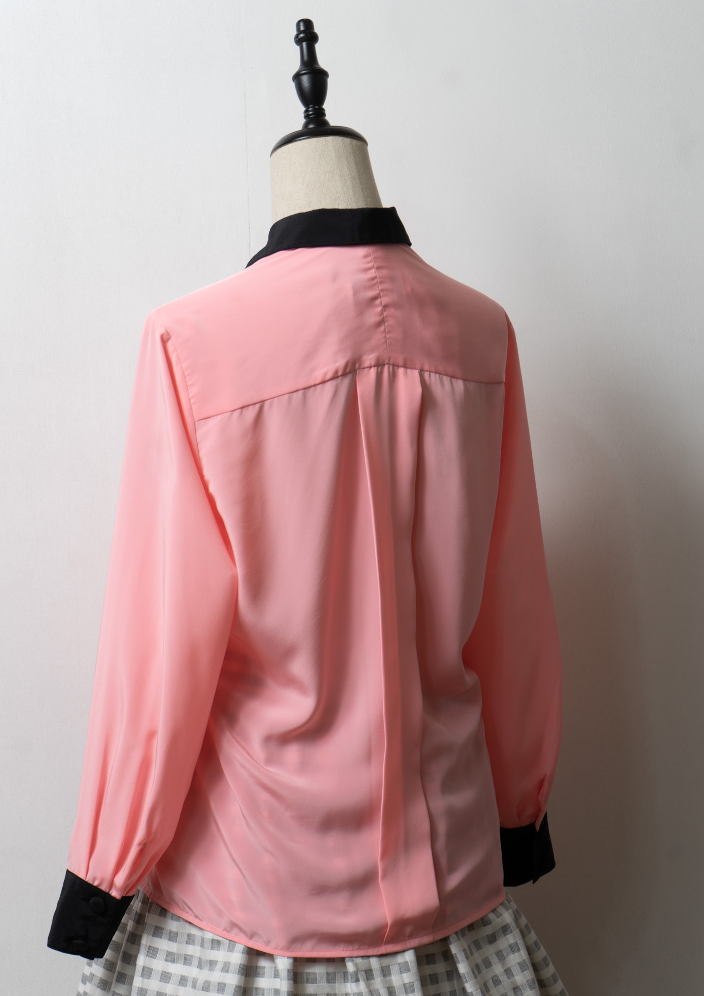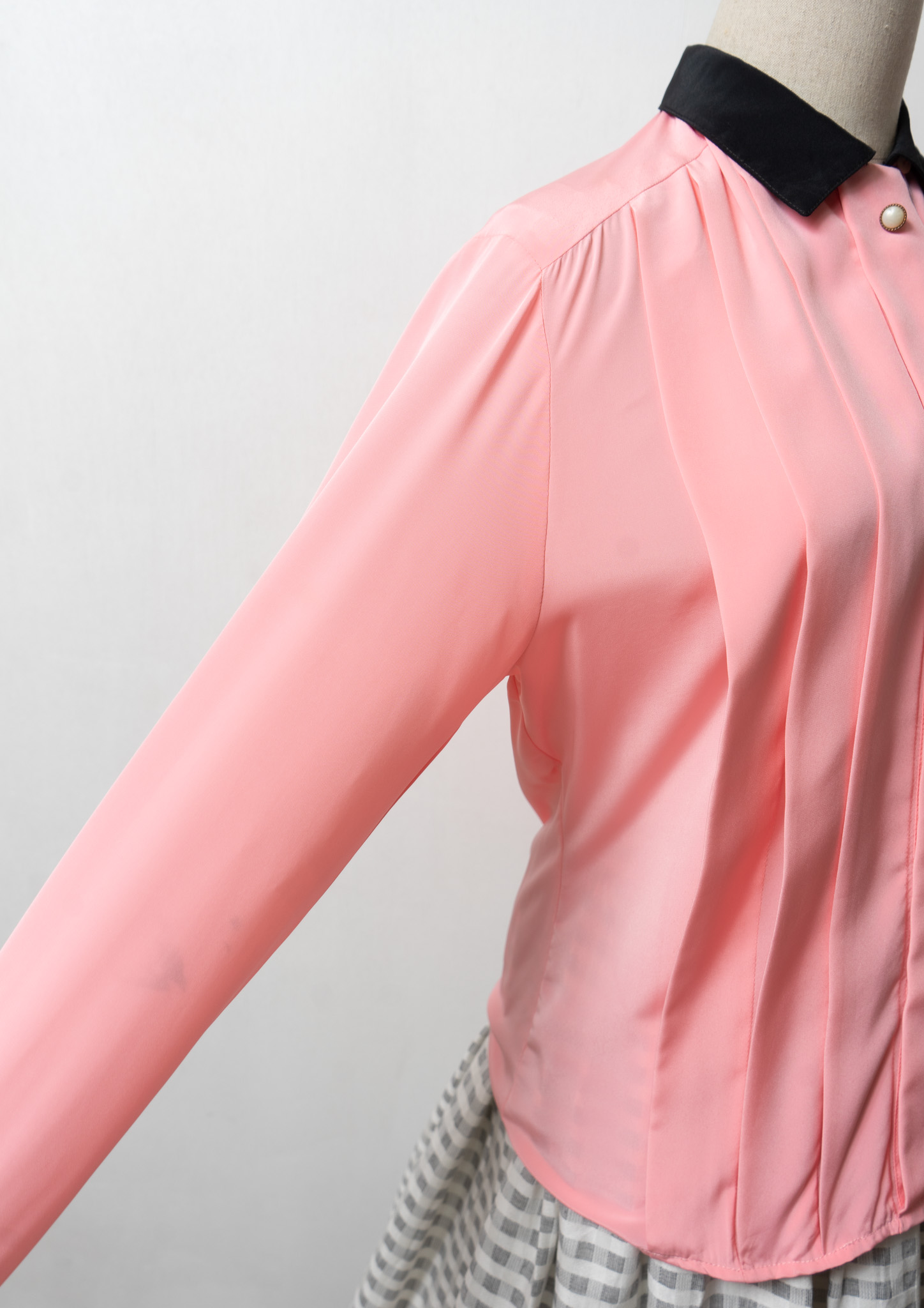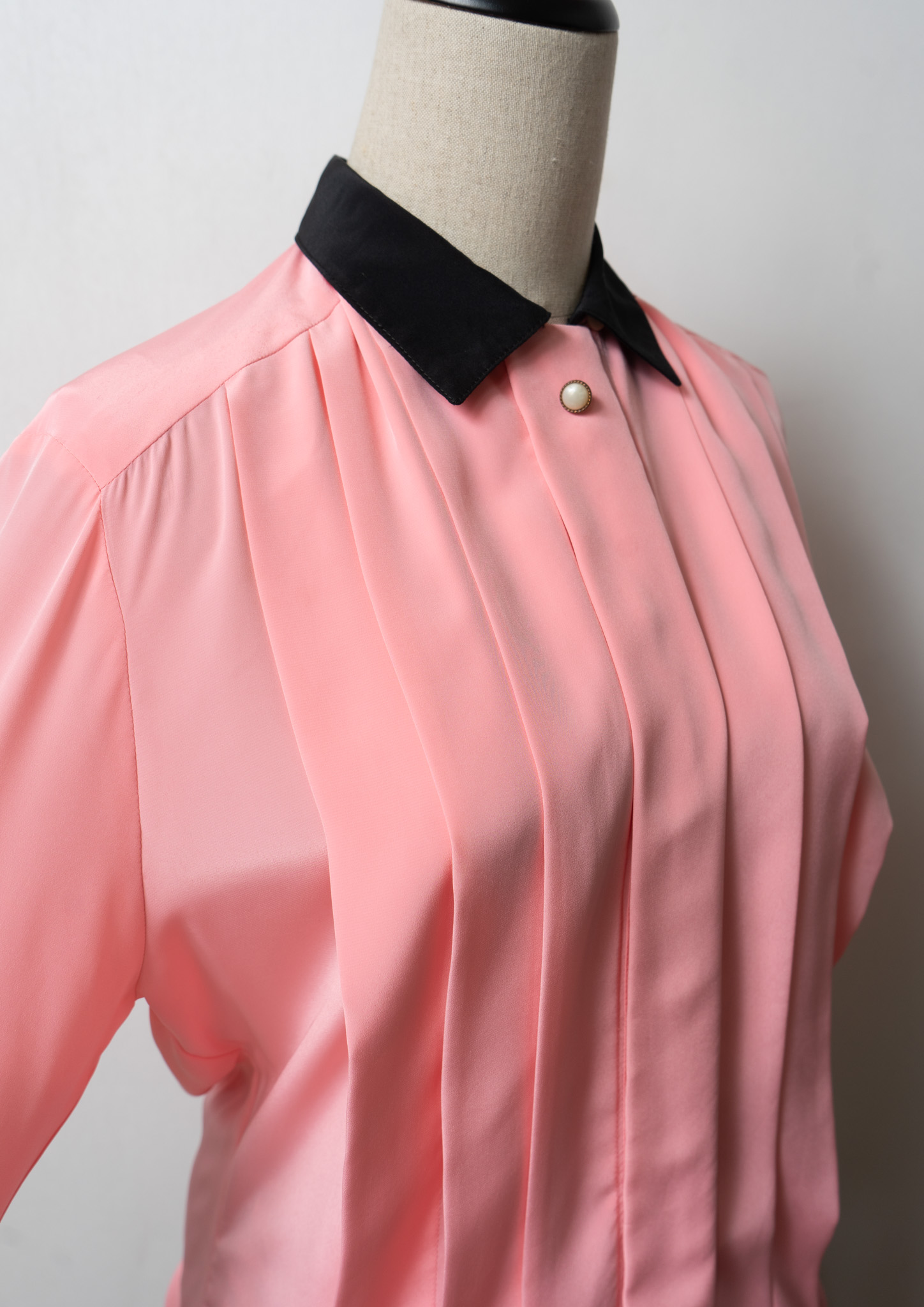 80's Tuck Design Pink × Black Bicolor Blouse