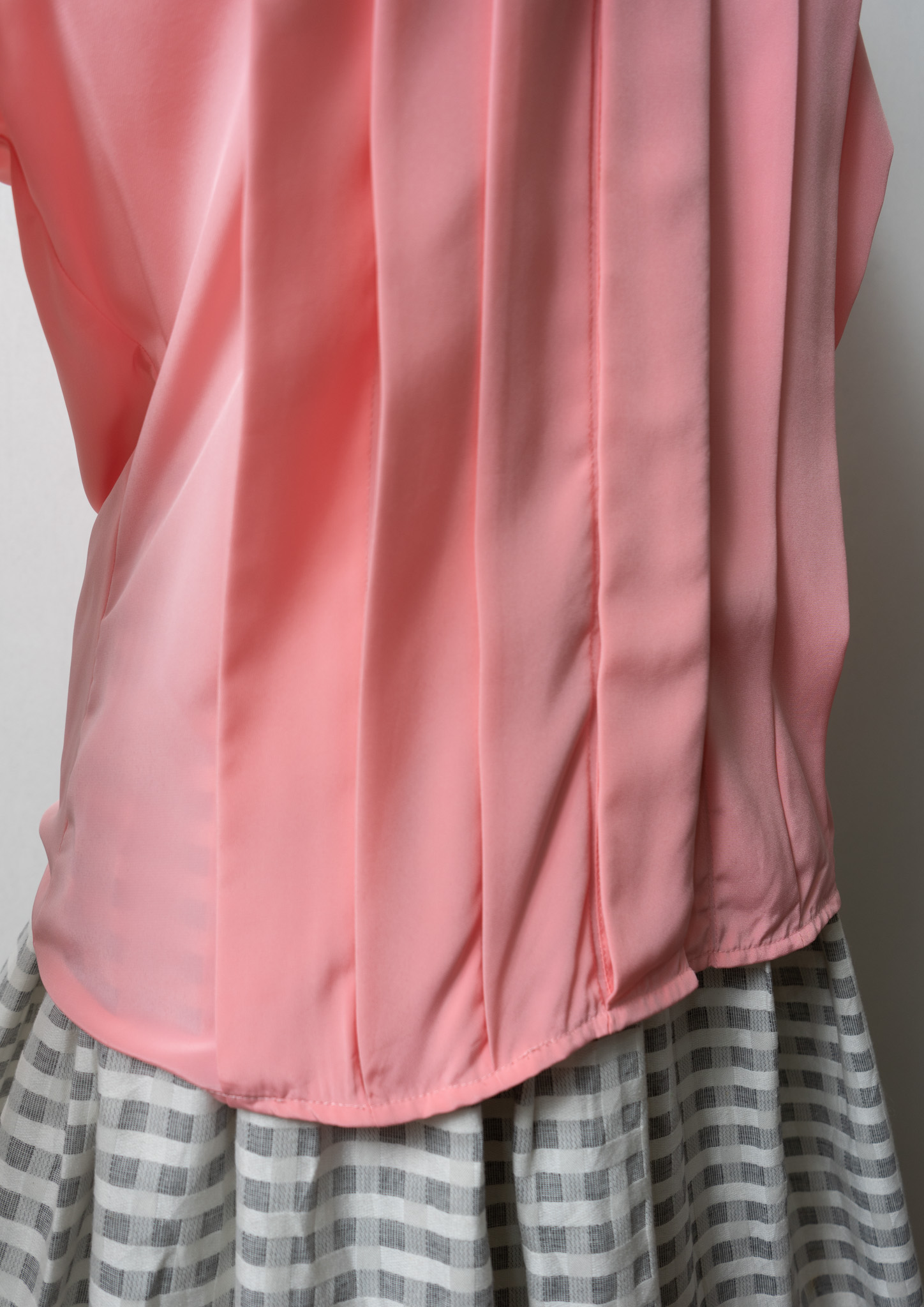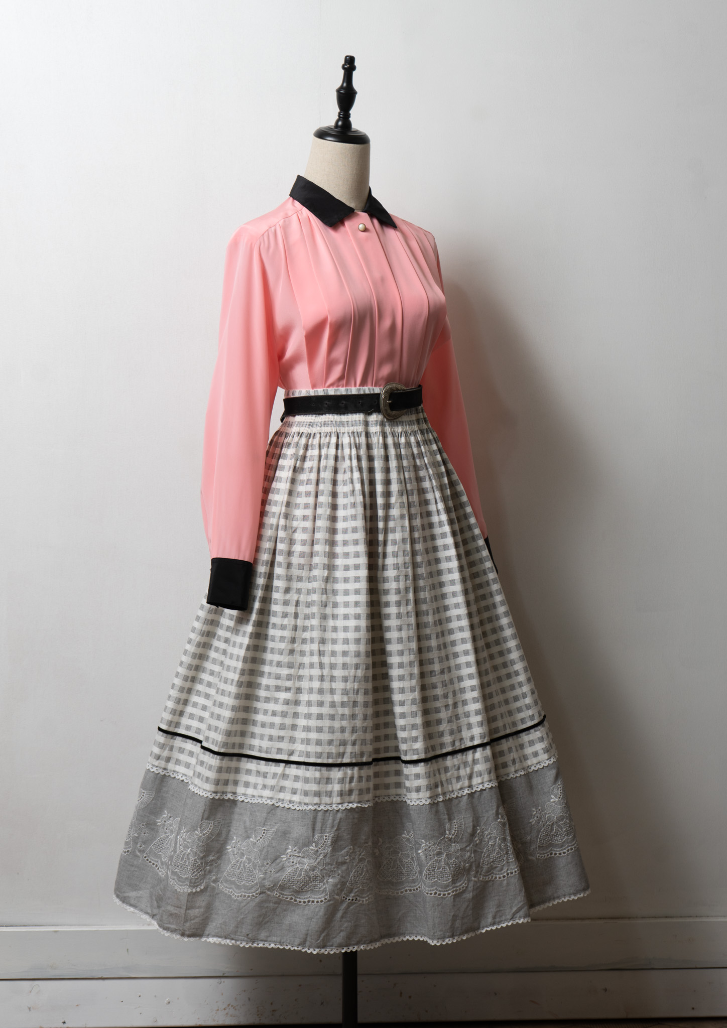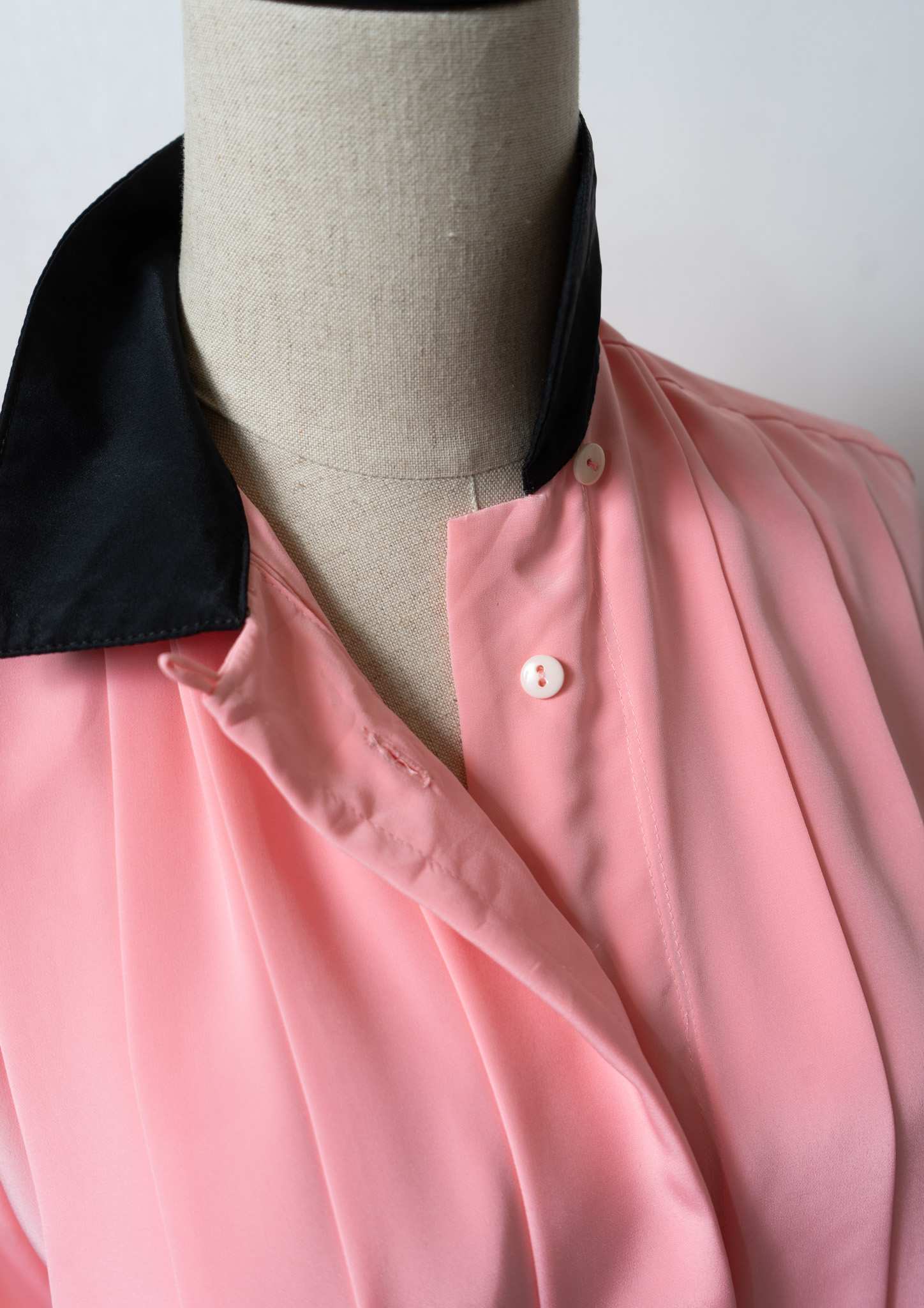 80's Tuck Design Pink × Black Bicolor Blouse