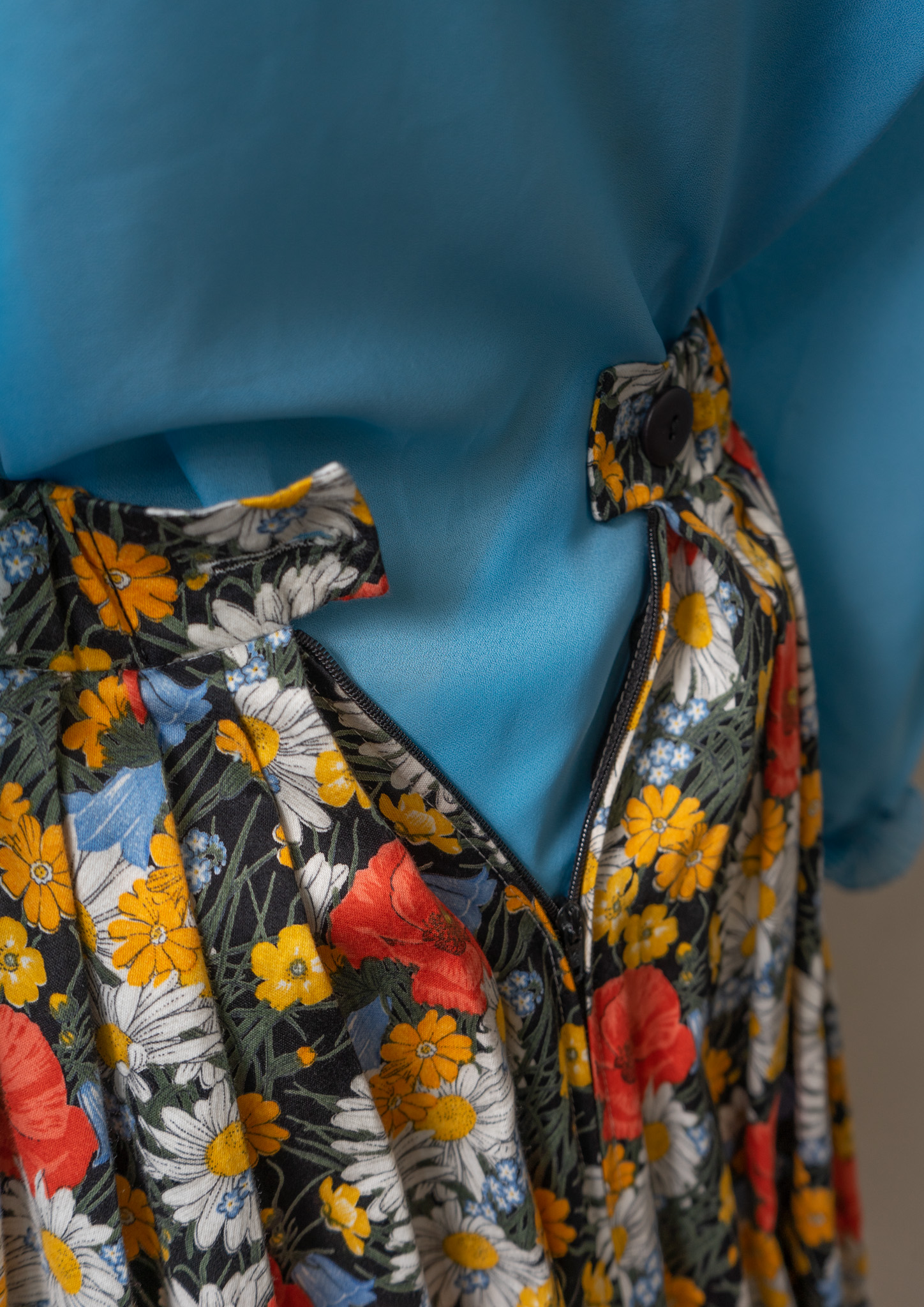 70's Multi Small Flower Pattern Navy Skirt