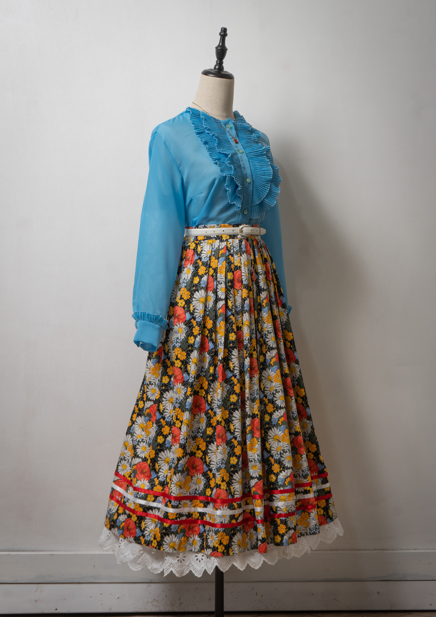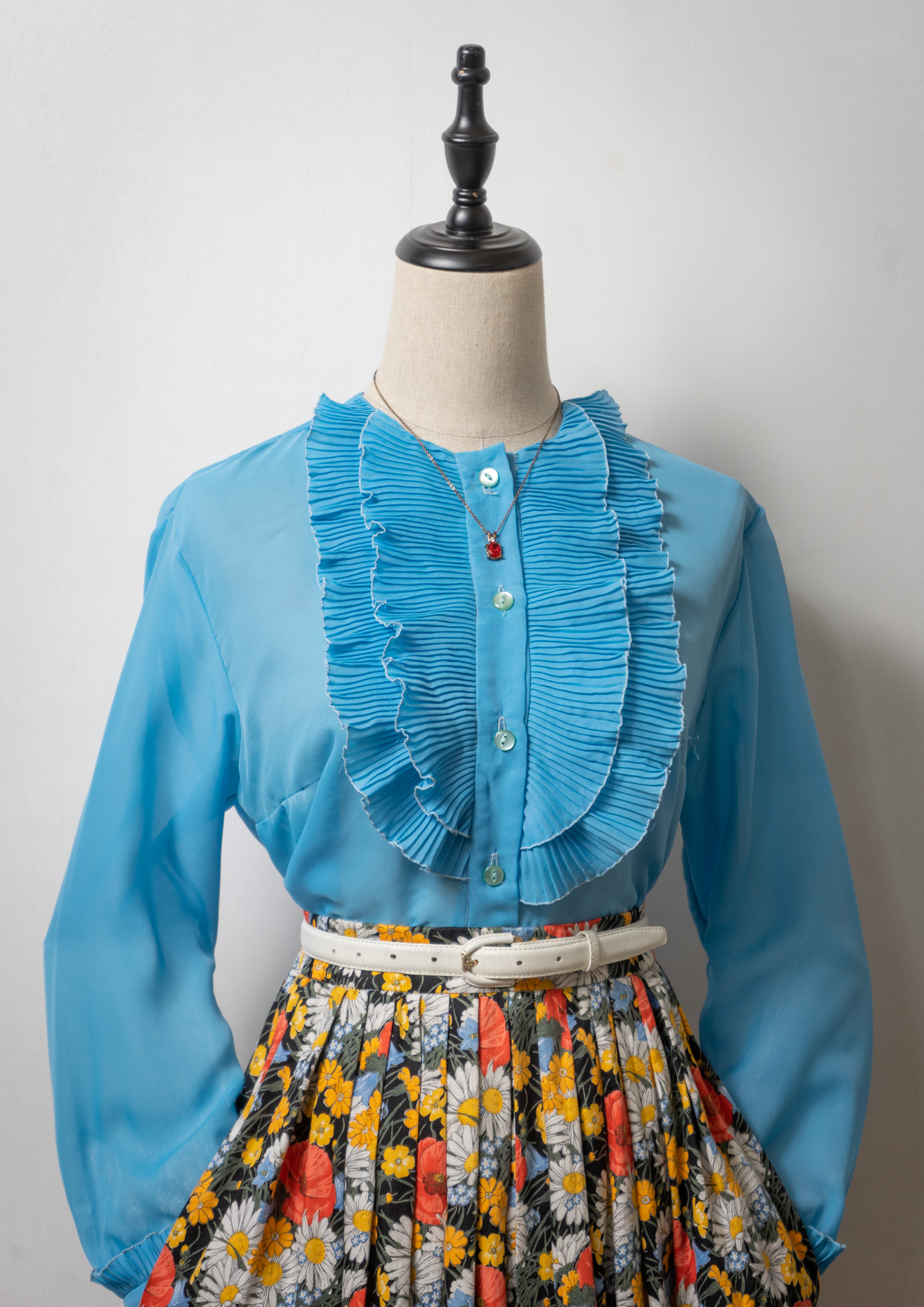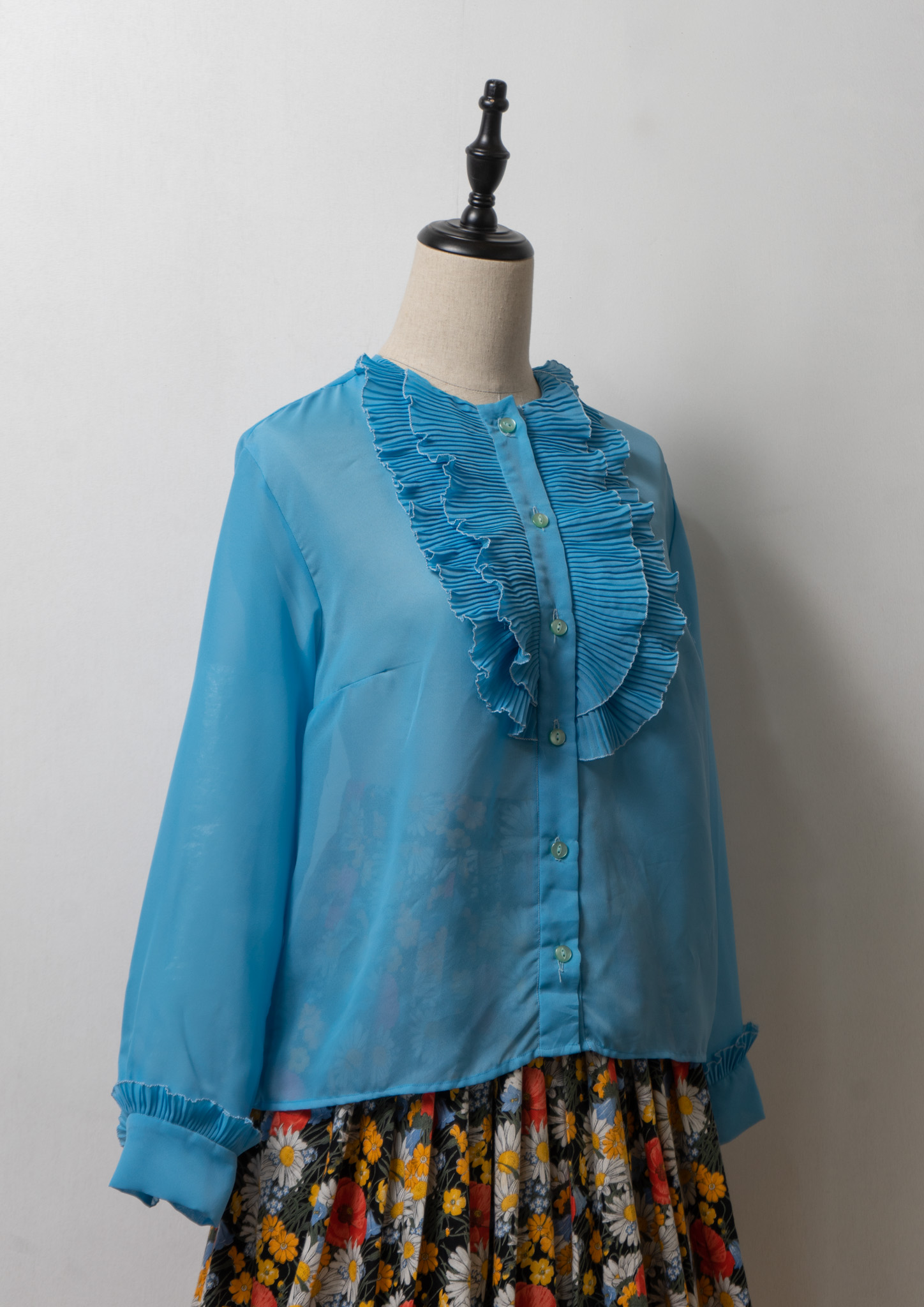 70's Pleated Frill Design Blouse