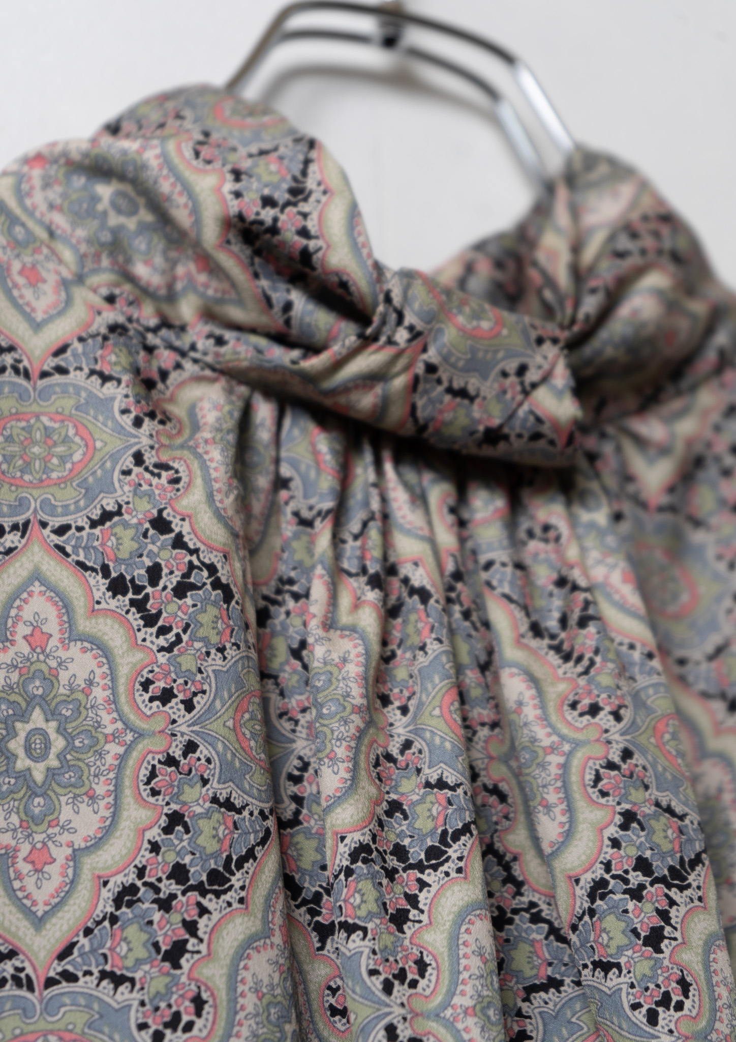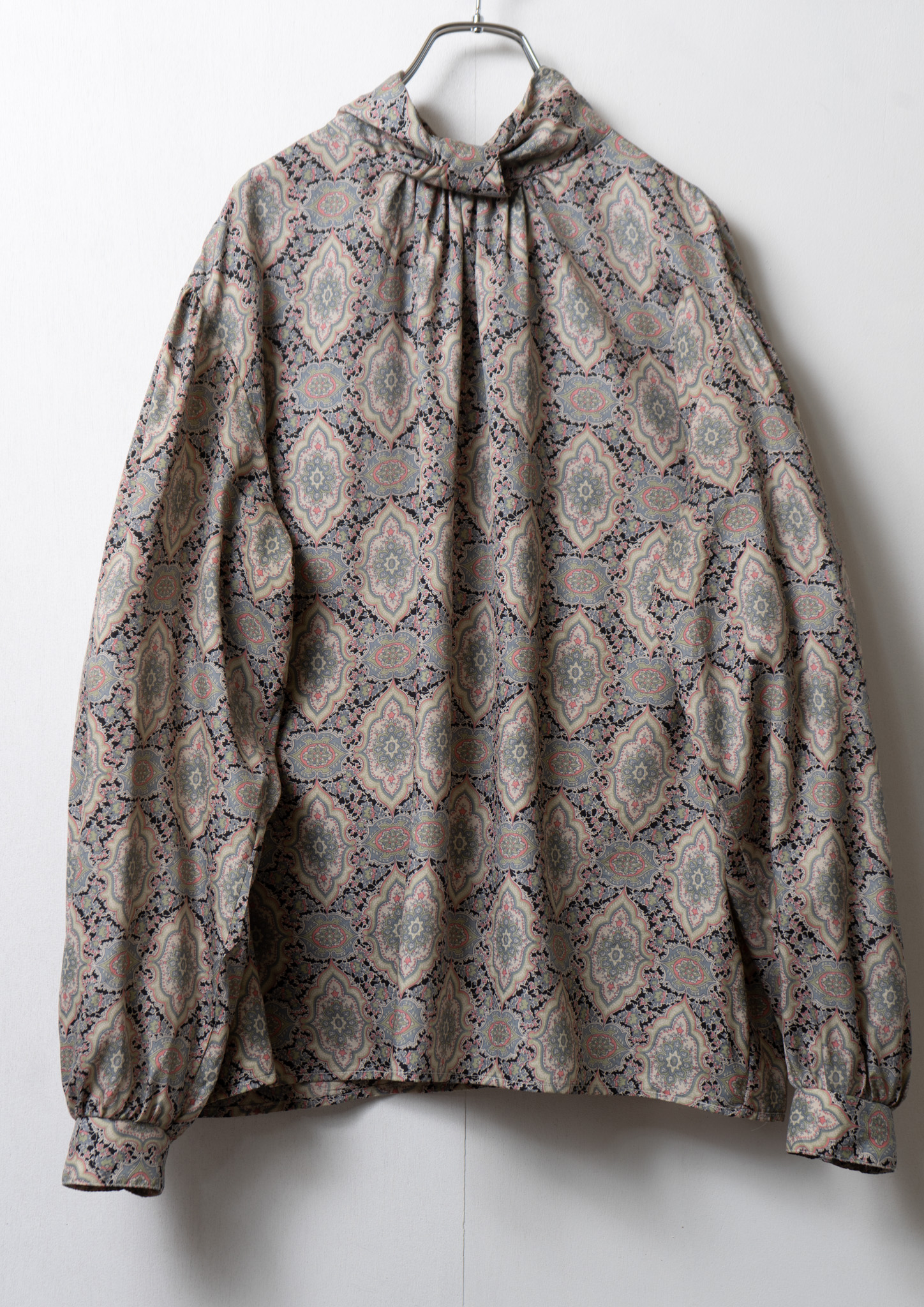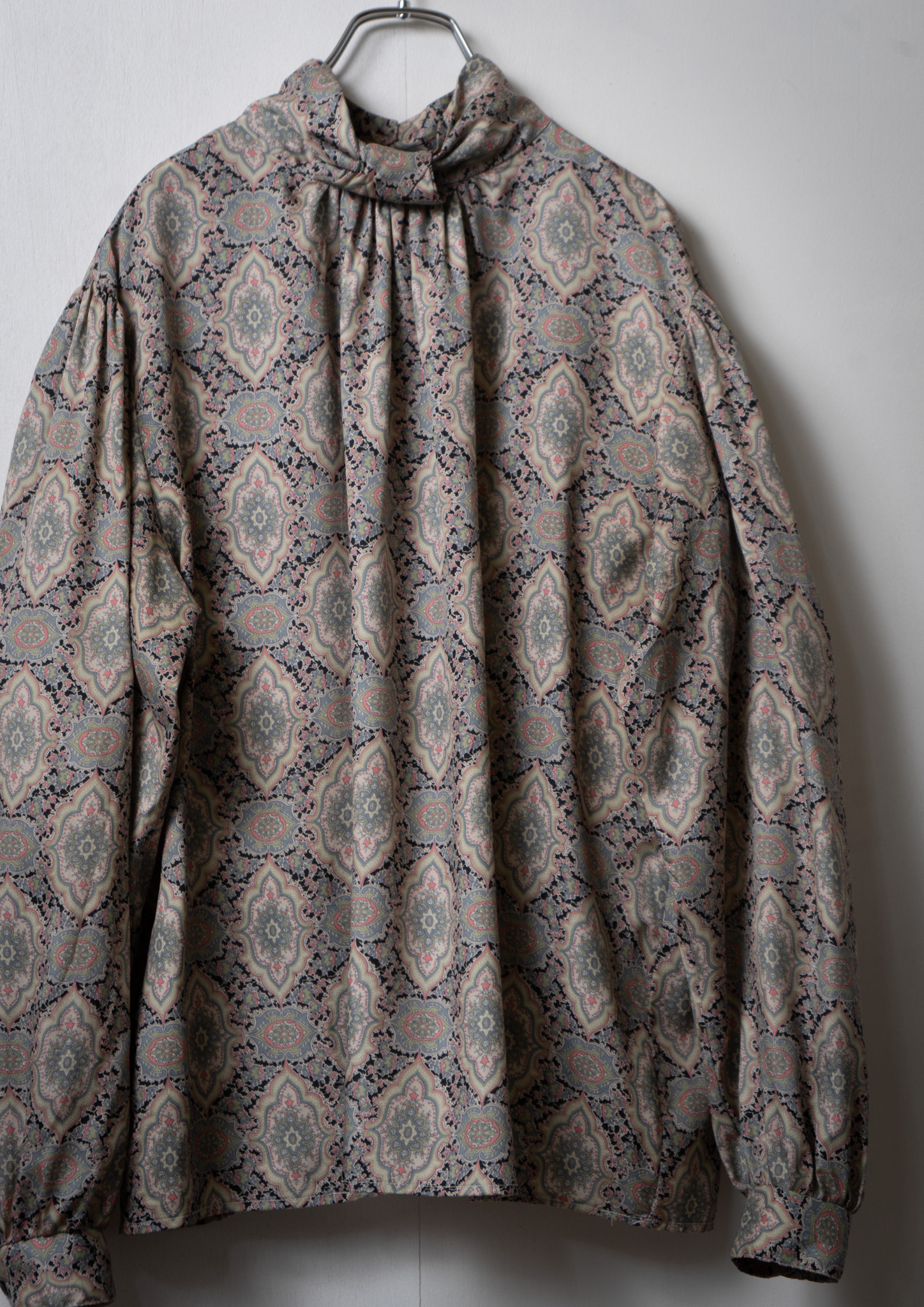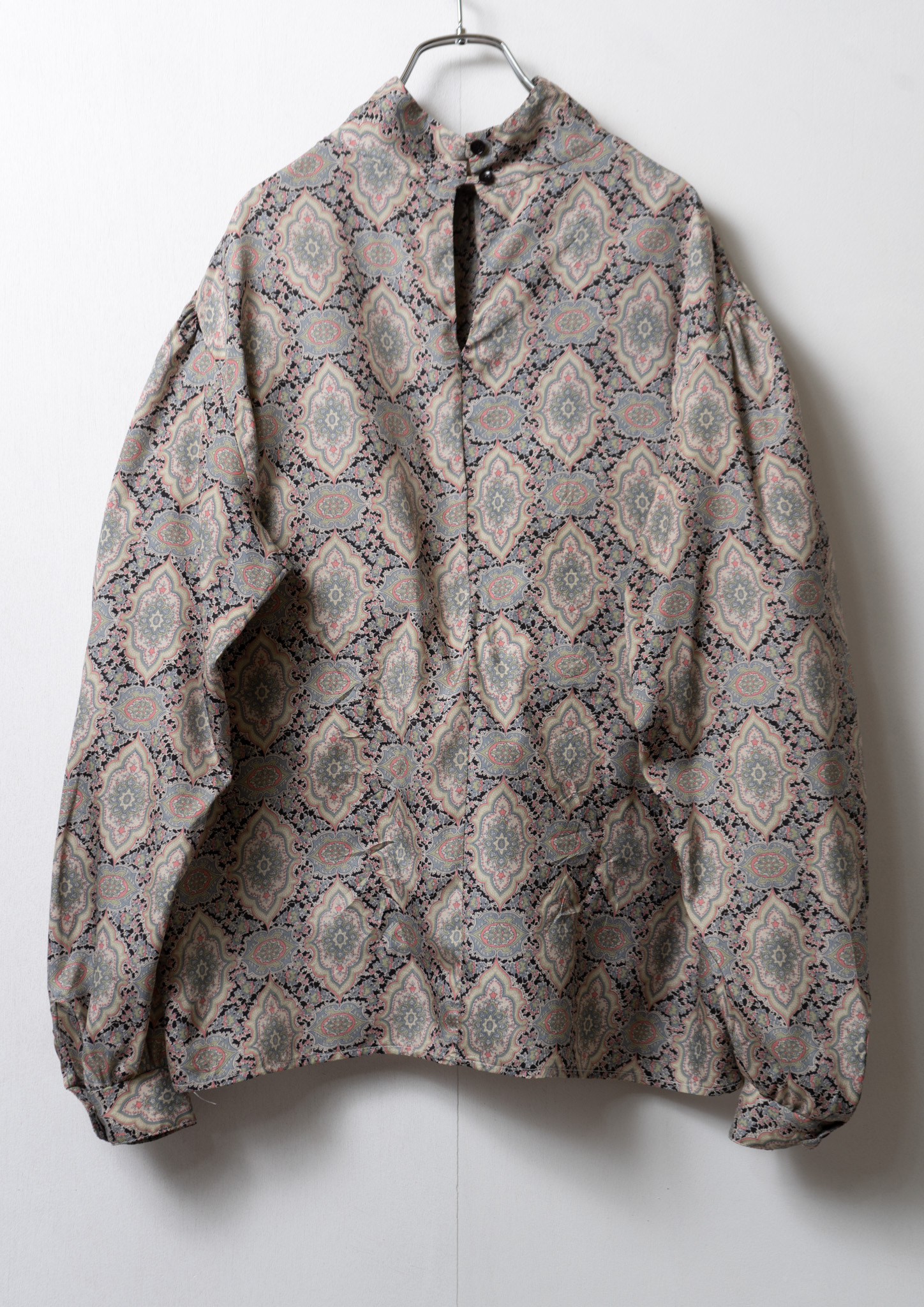 80's Damask Pattern Design Stand Neck Blouse