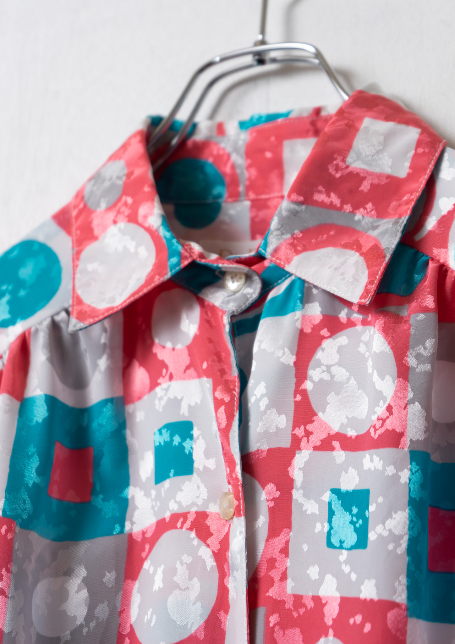 80's USA Triangle Collar Art Pattern Blouse