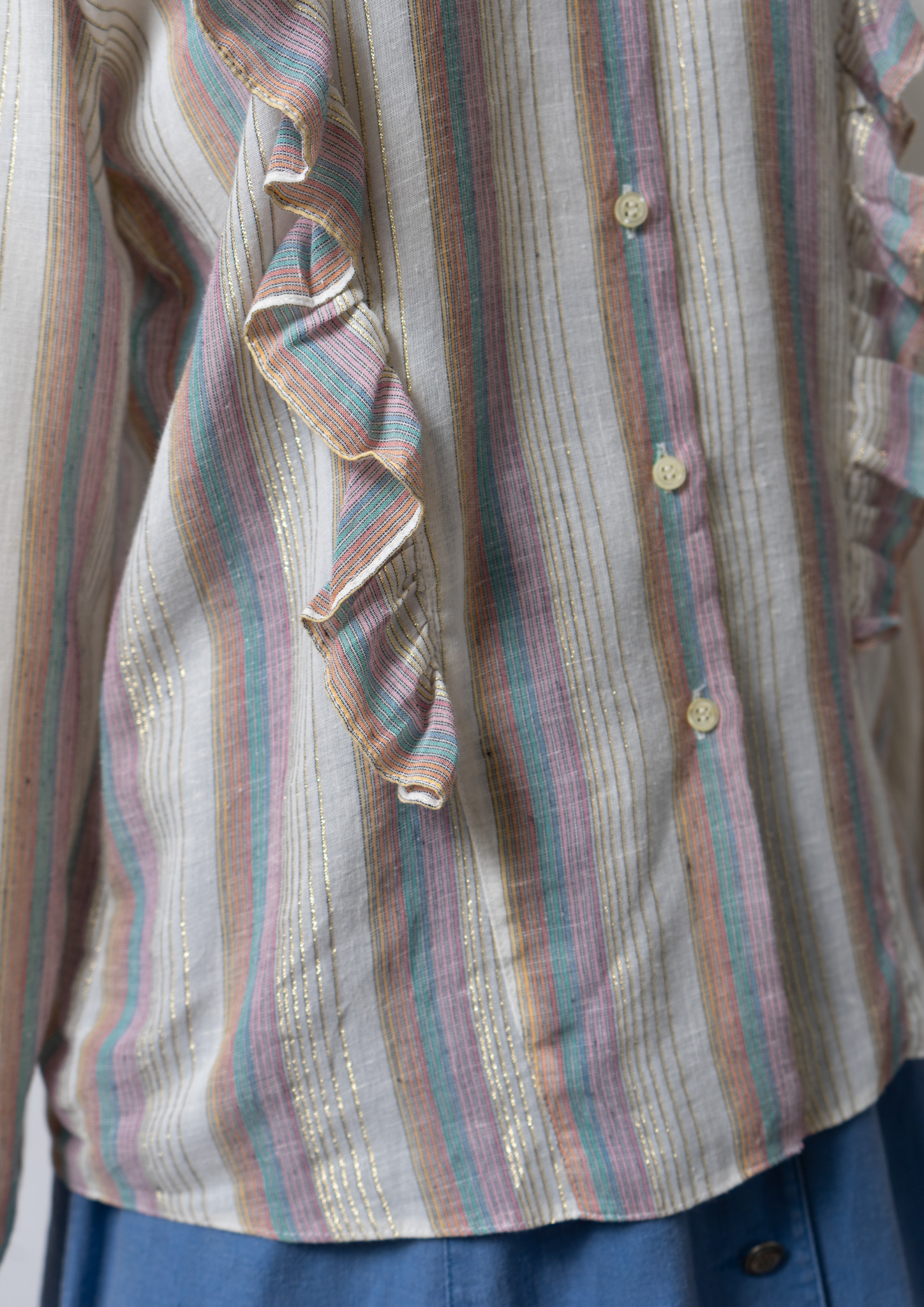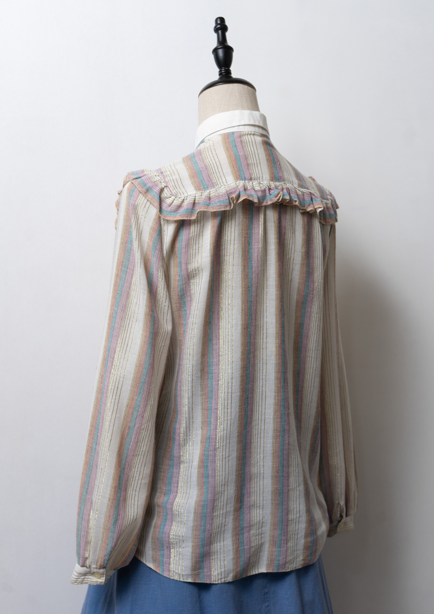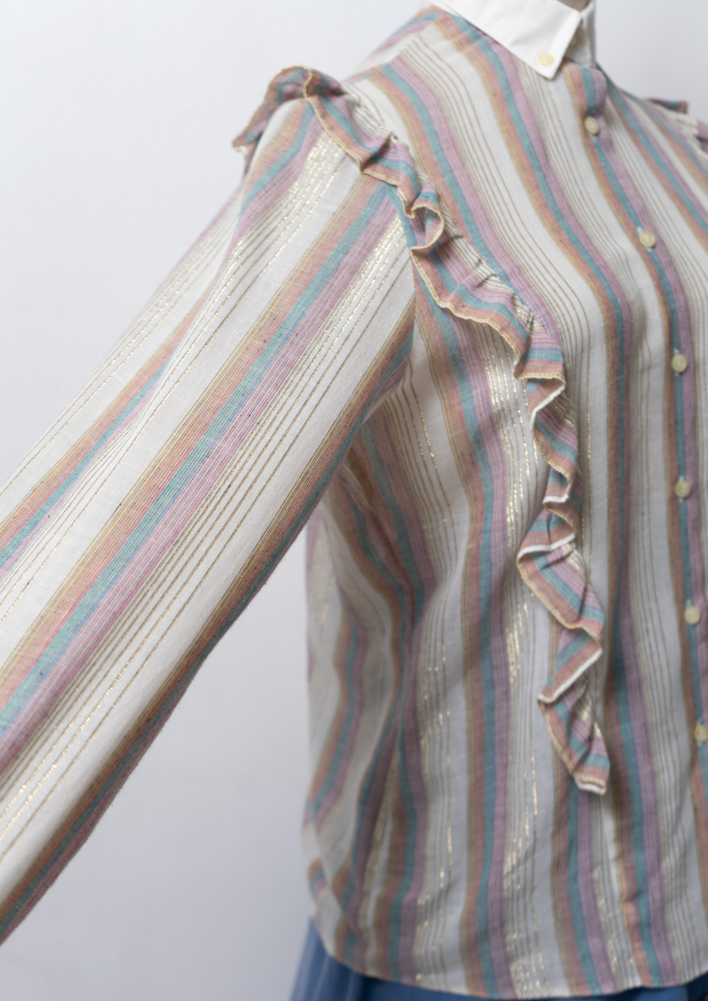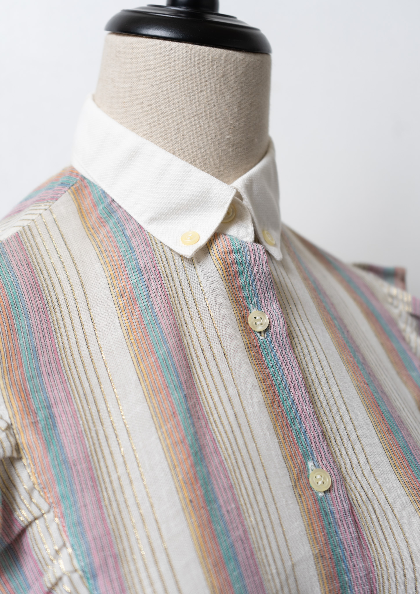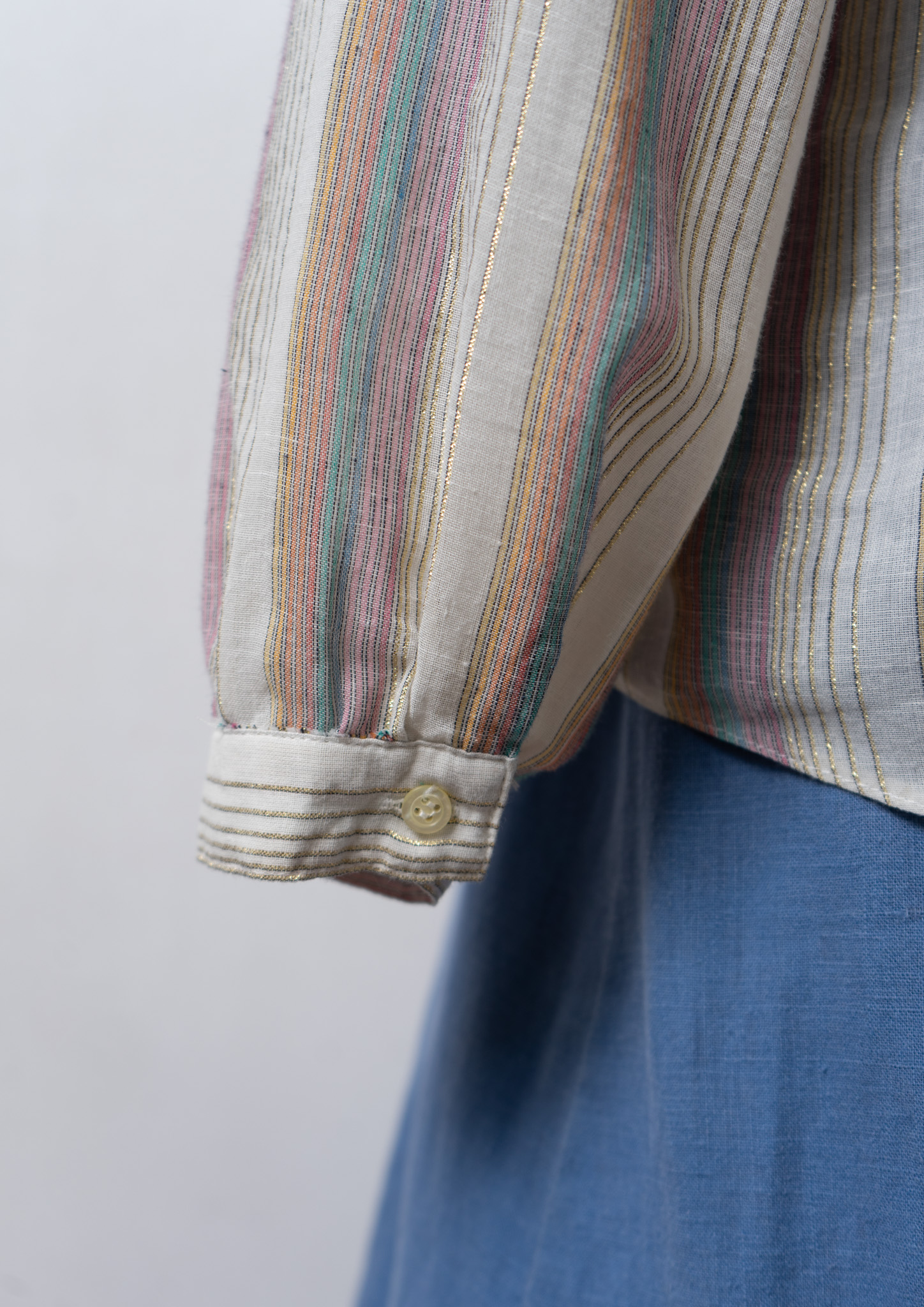 70's Gold Lame × Multi Color Stripe Pattern Blouse