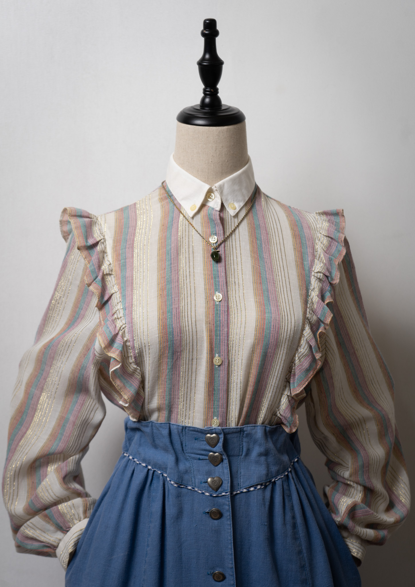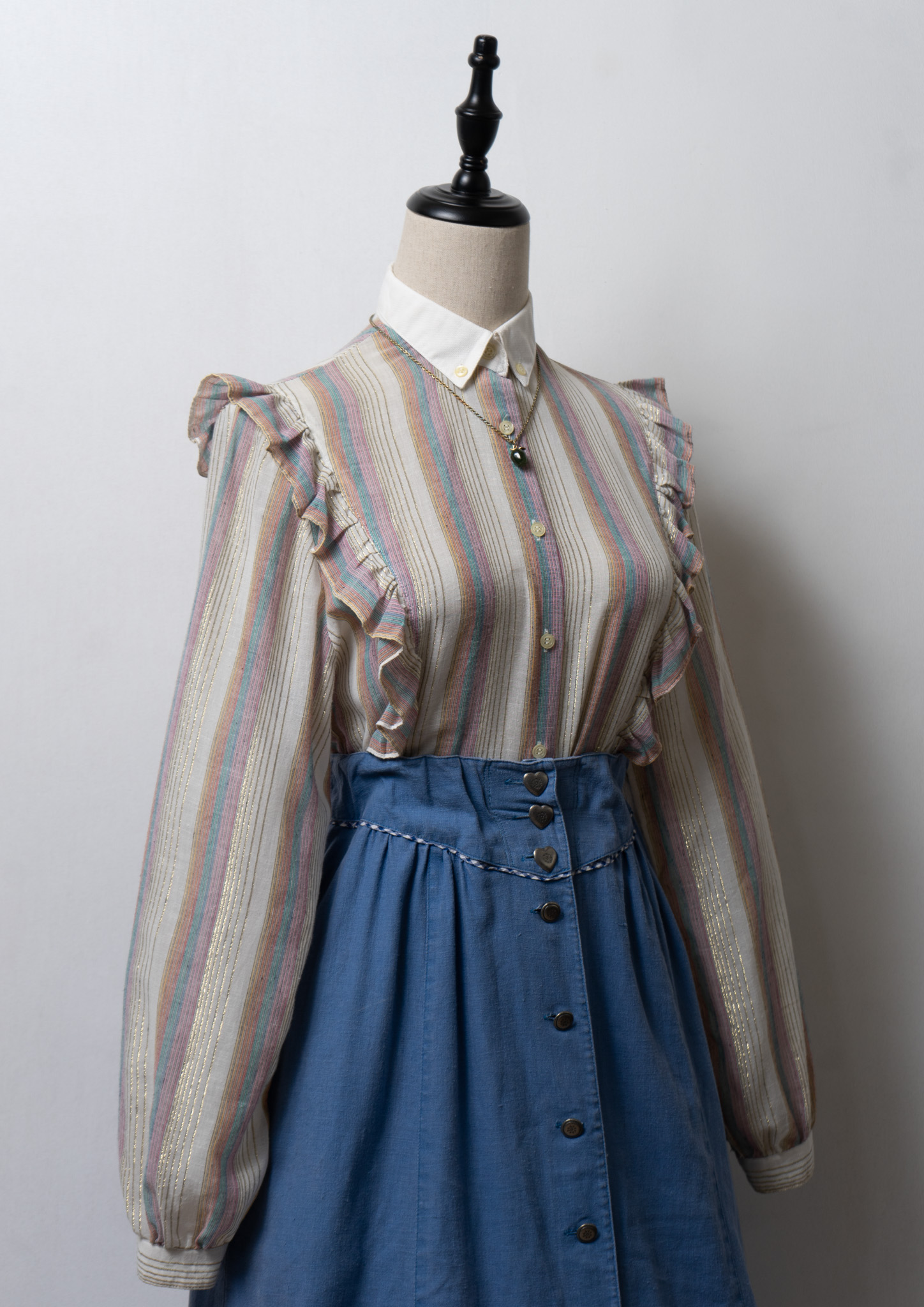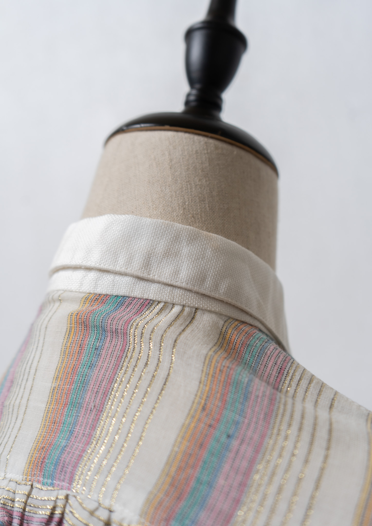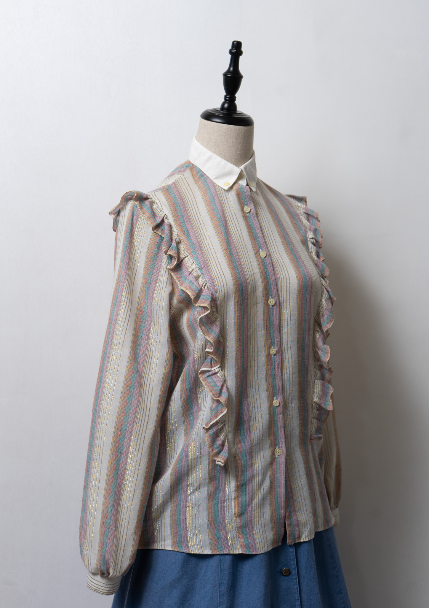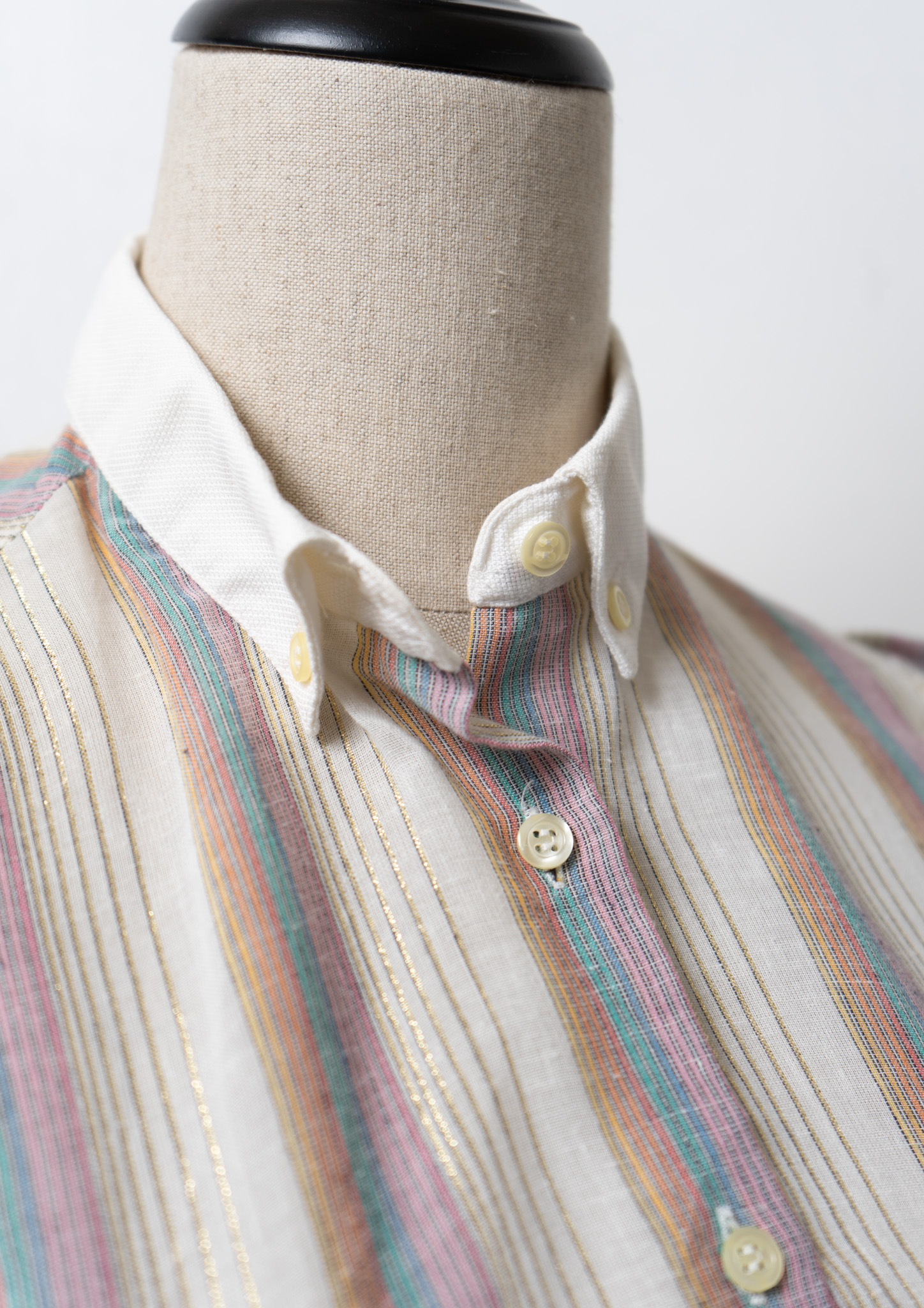 70's Gold Lame × Multi Color Stripe Pattern Blouse