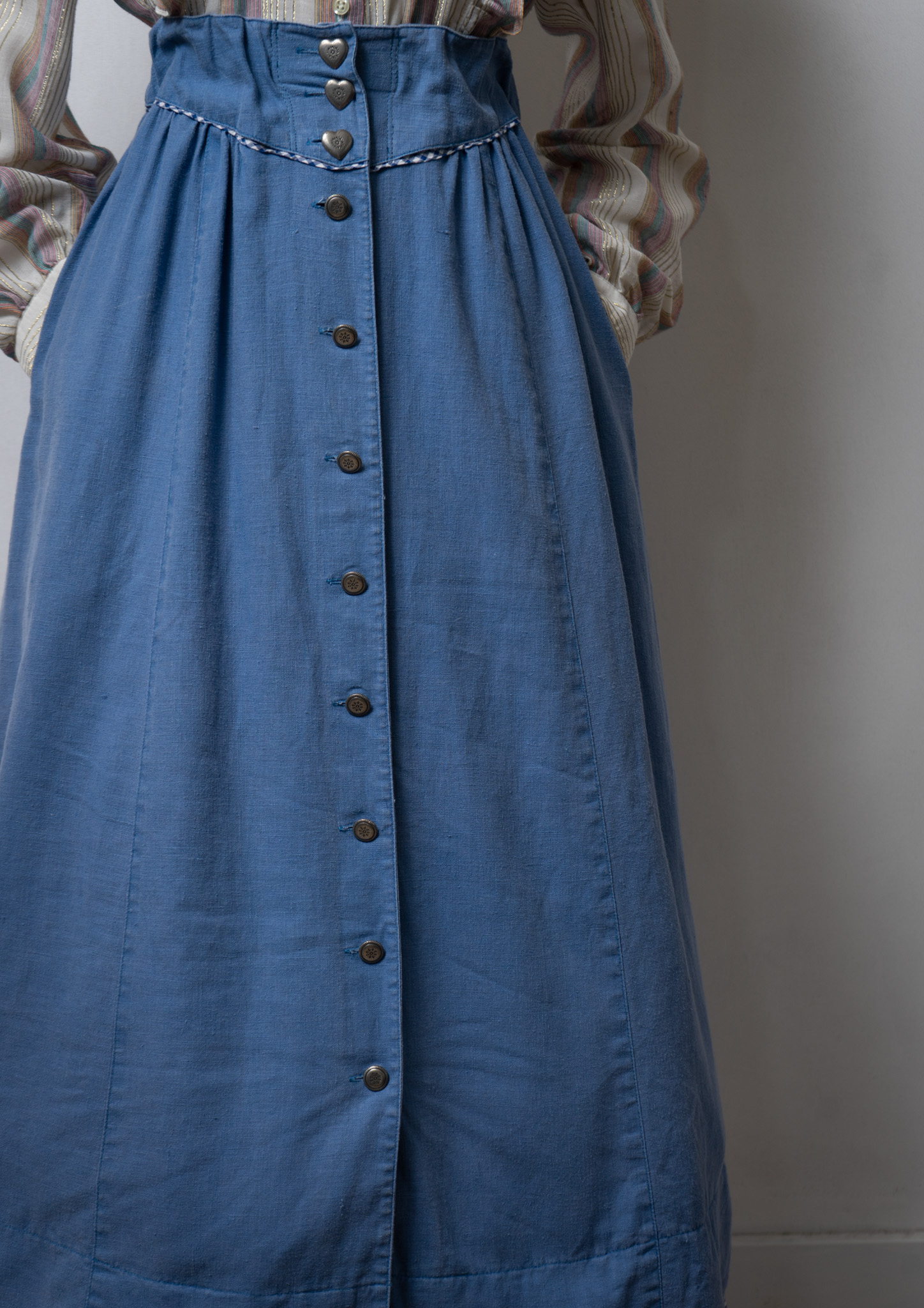 90's Point Blue Gingham Check Pattern × Heart Button Skirt