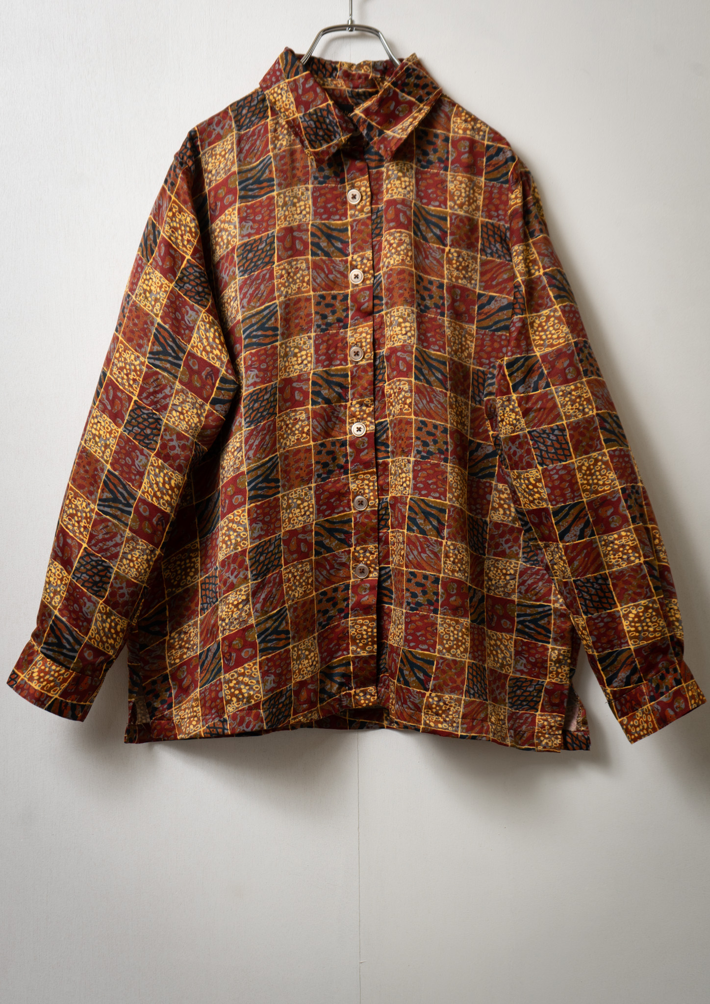 80~90's Switzerland Block Art Pattern Blouse