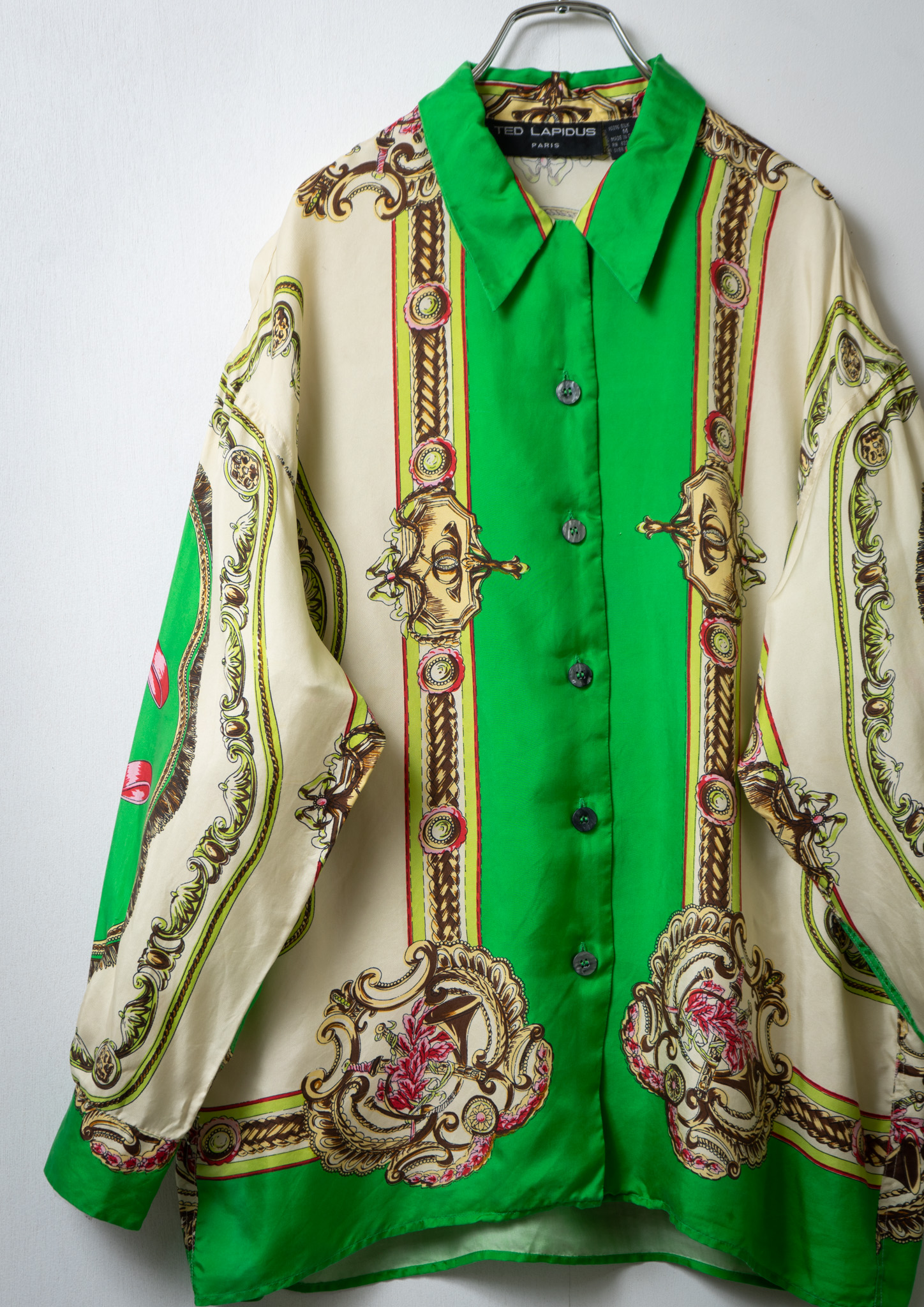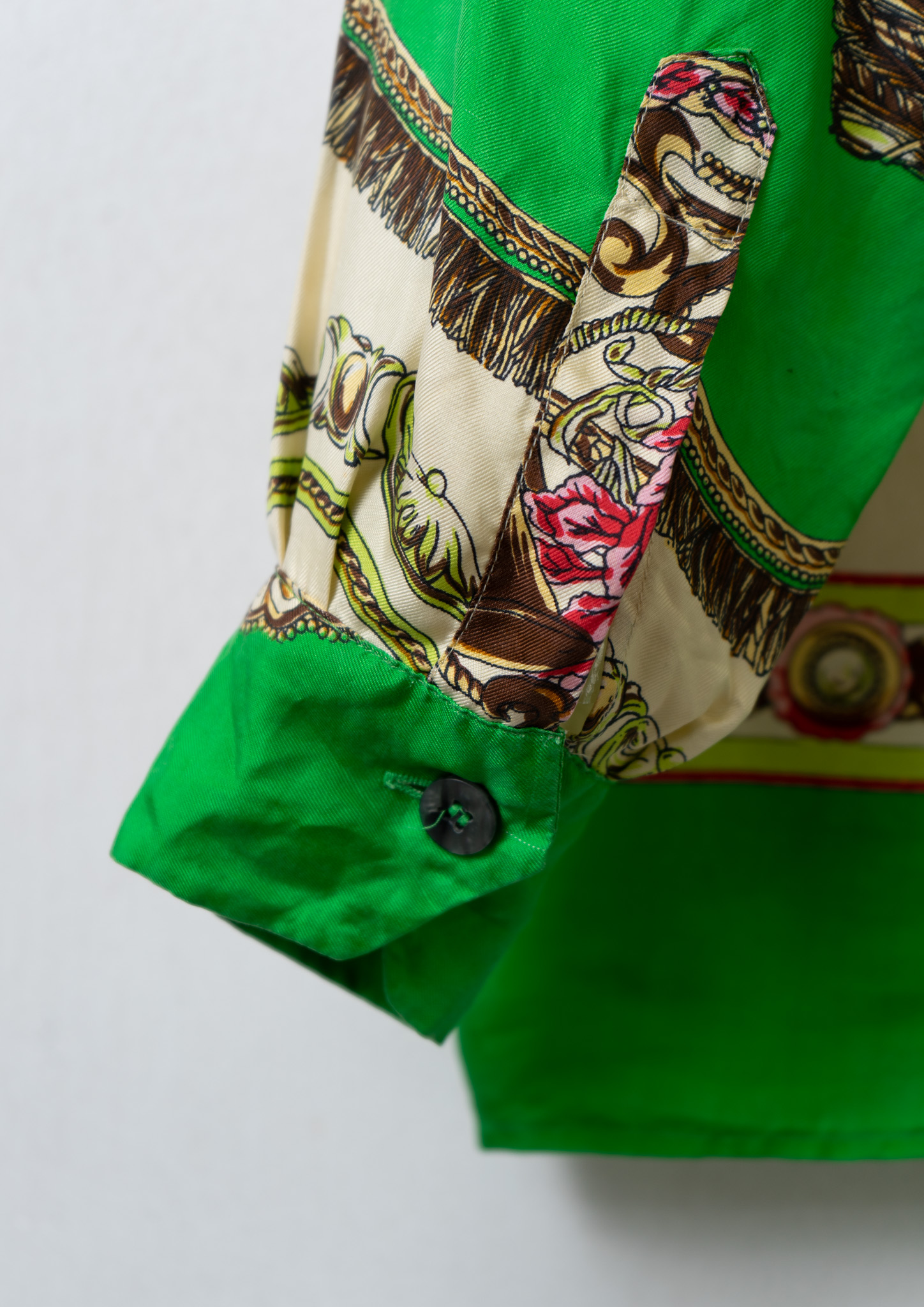 80’s Scarf Like Pattern Light Green Blouse