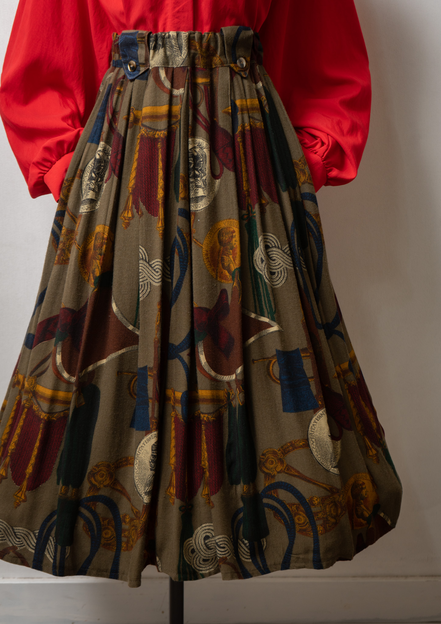 70's Euro Stripe × Small Flower Pattern Tyrol Skirt