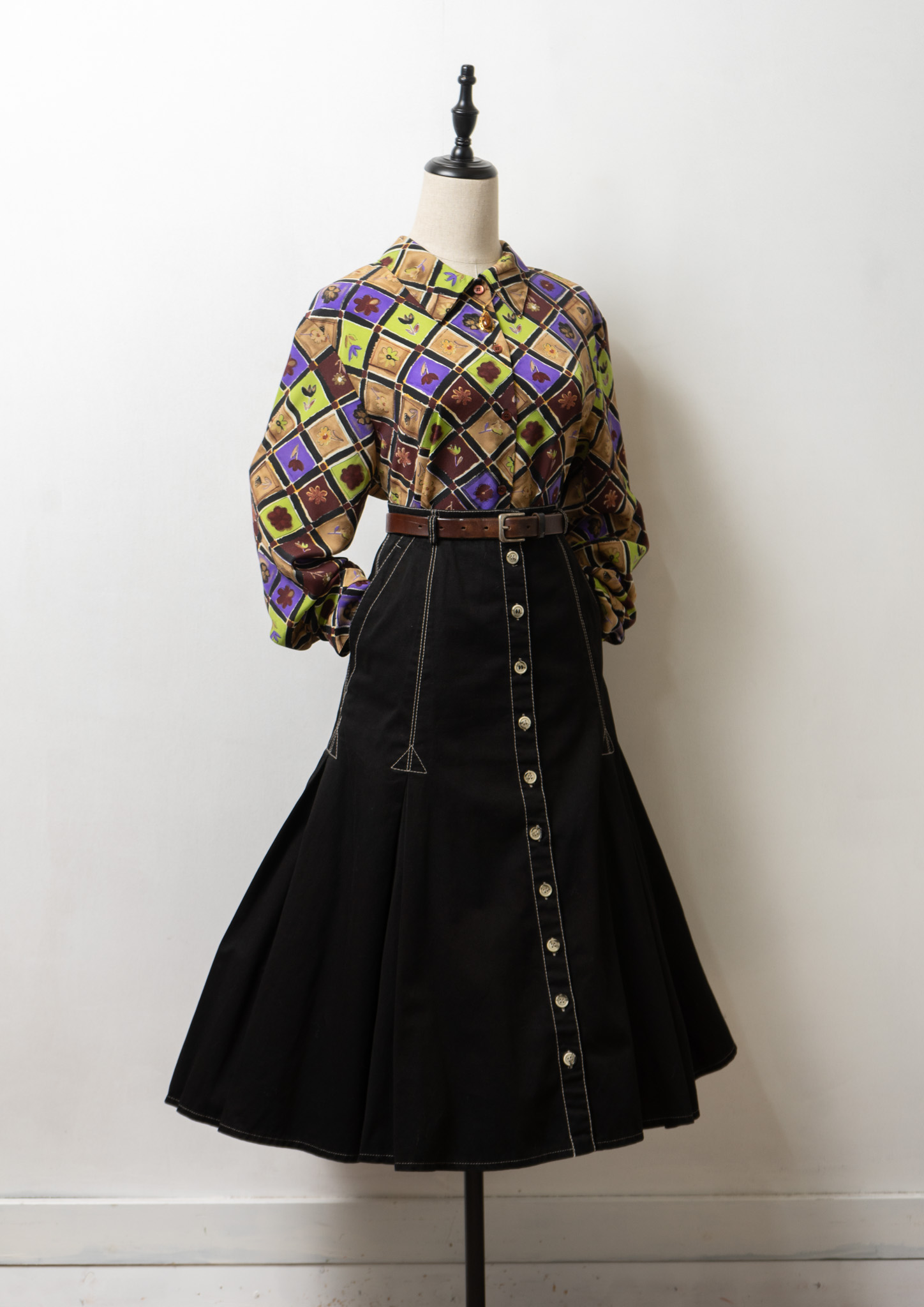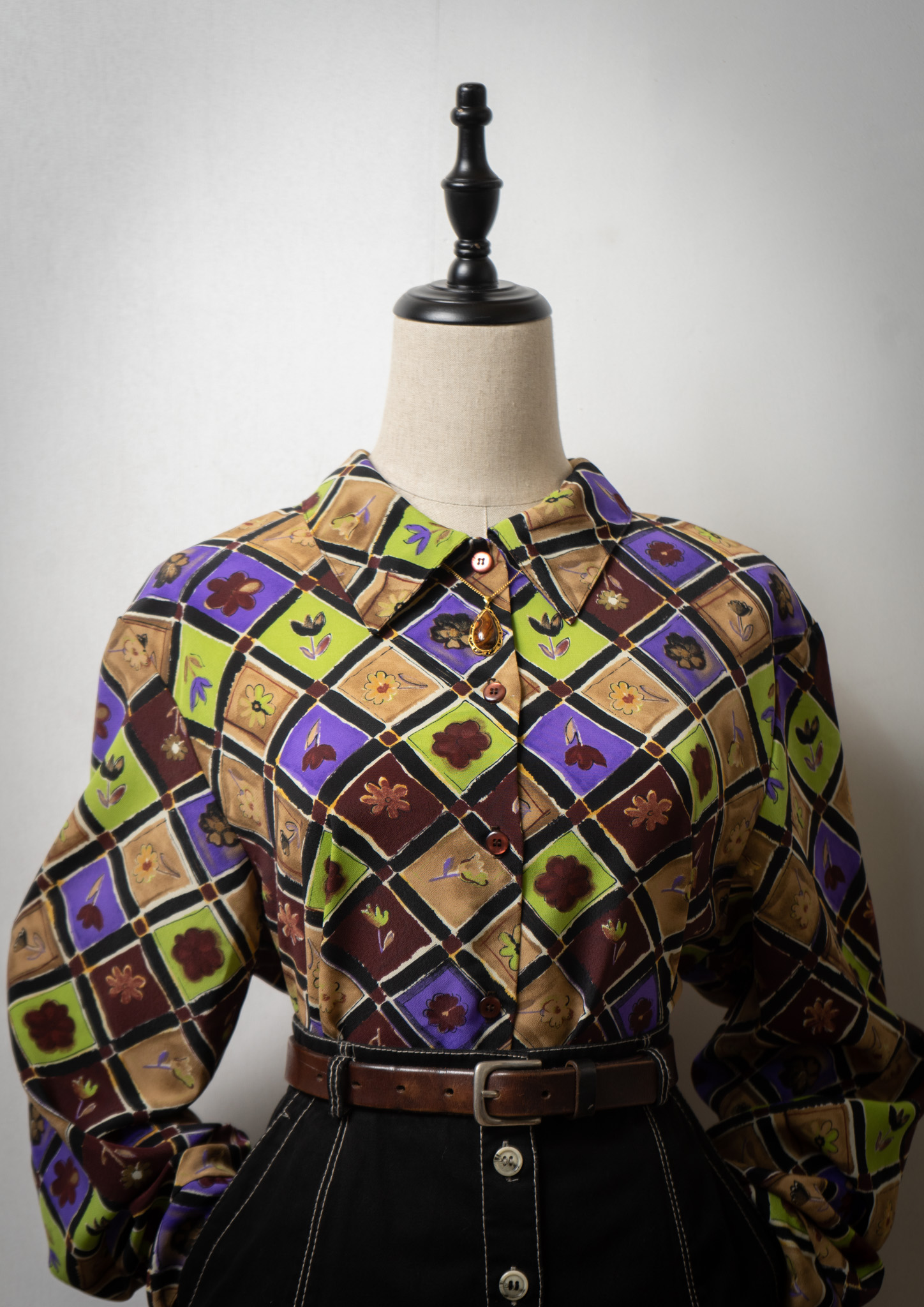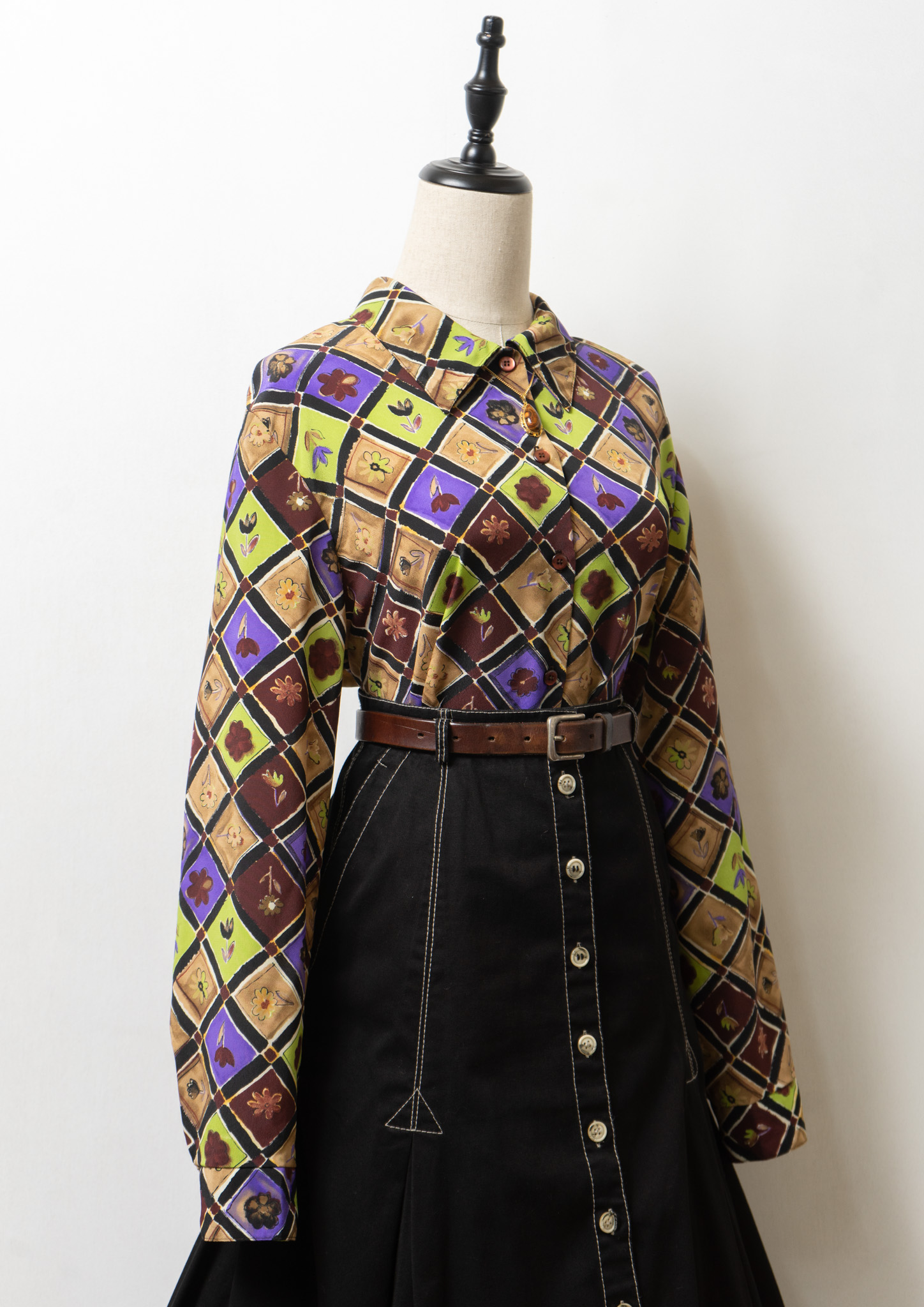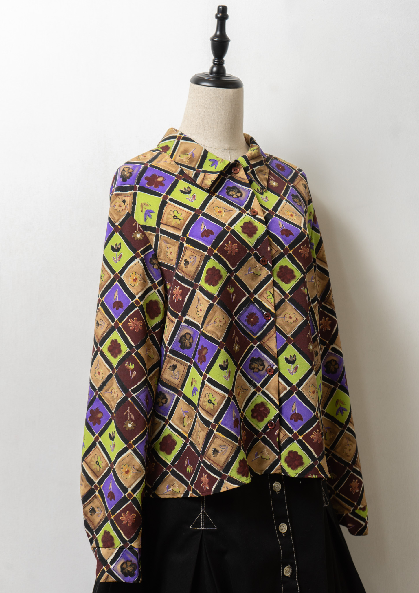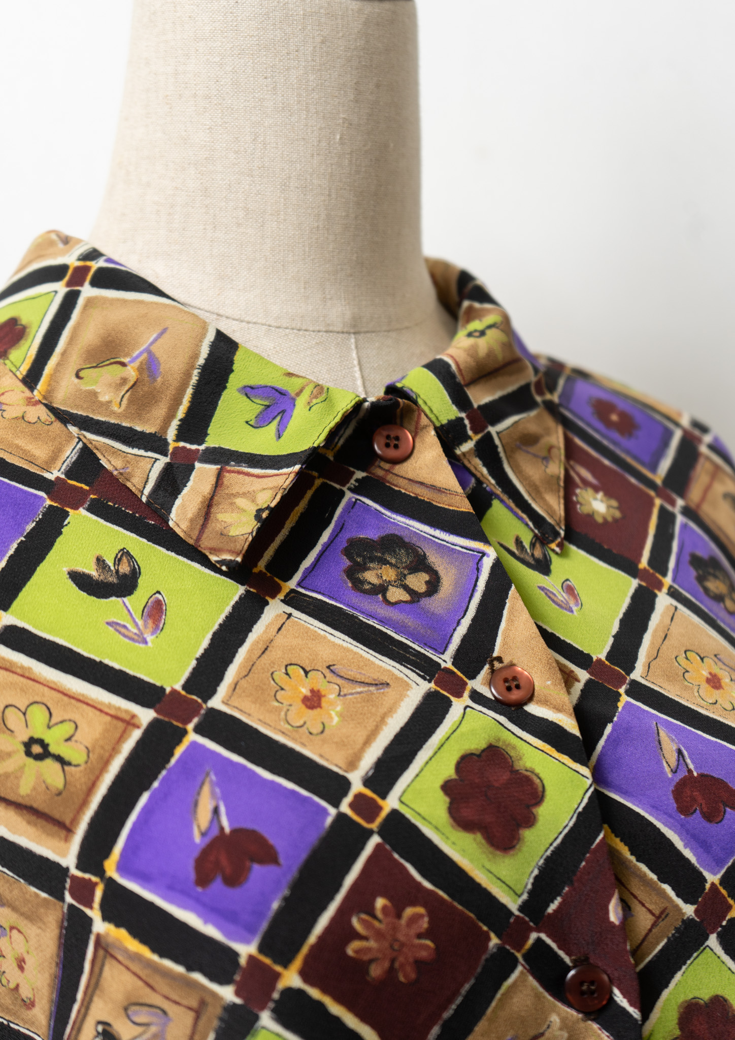 90's USA Flower Patchwork Like Pattern Blouse