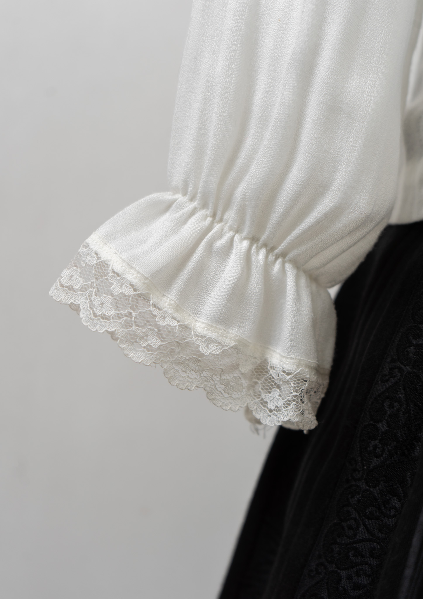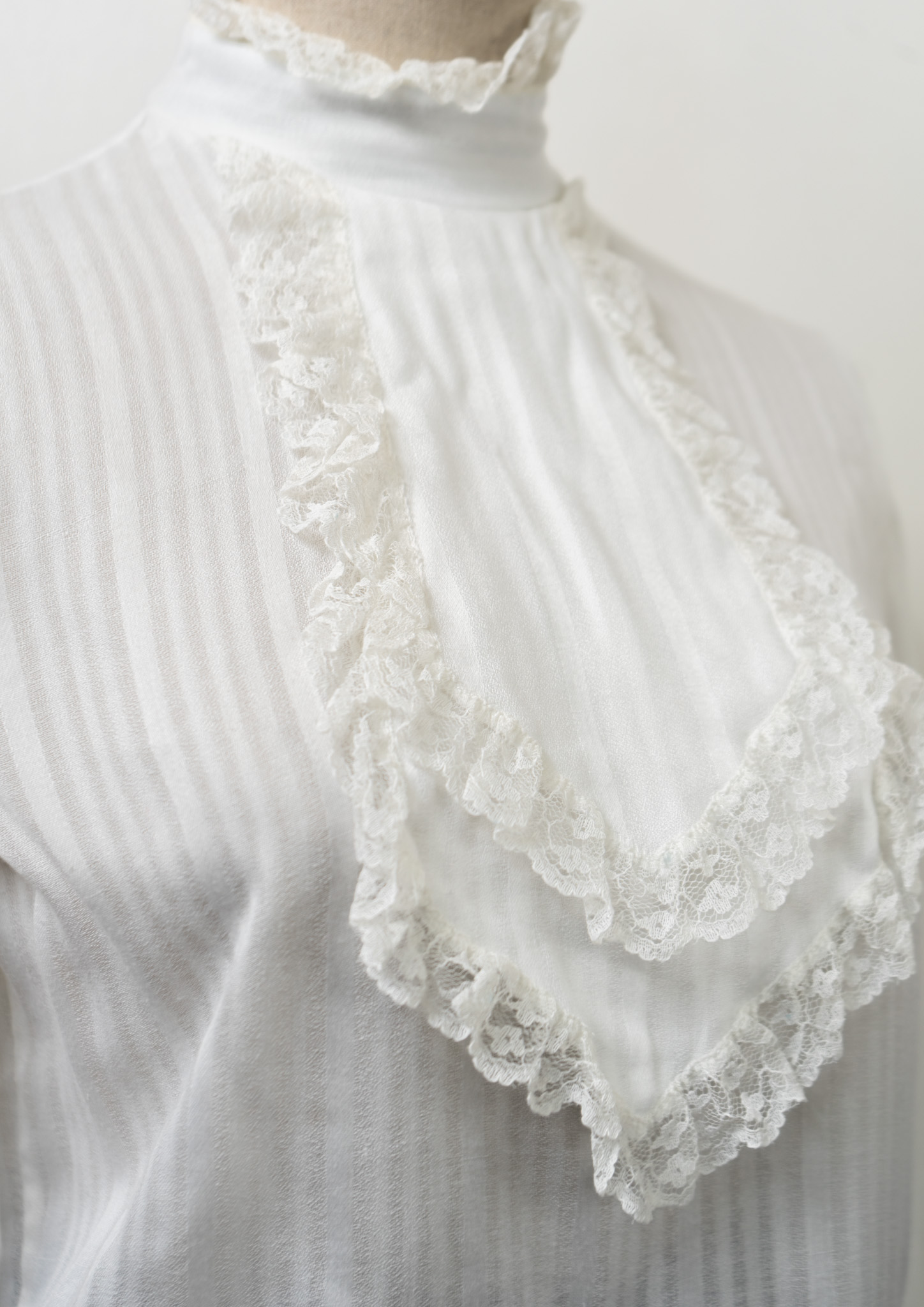 70's Frill Neck Jabot Like Collar White Blouse