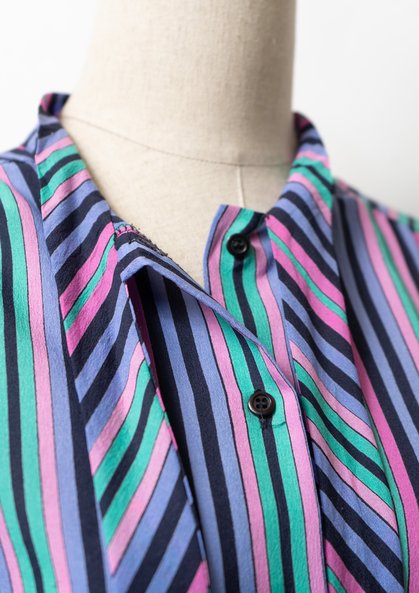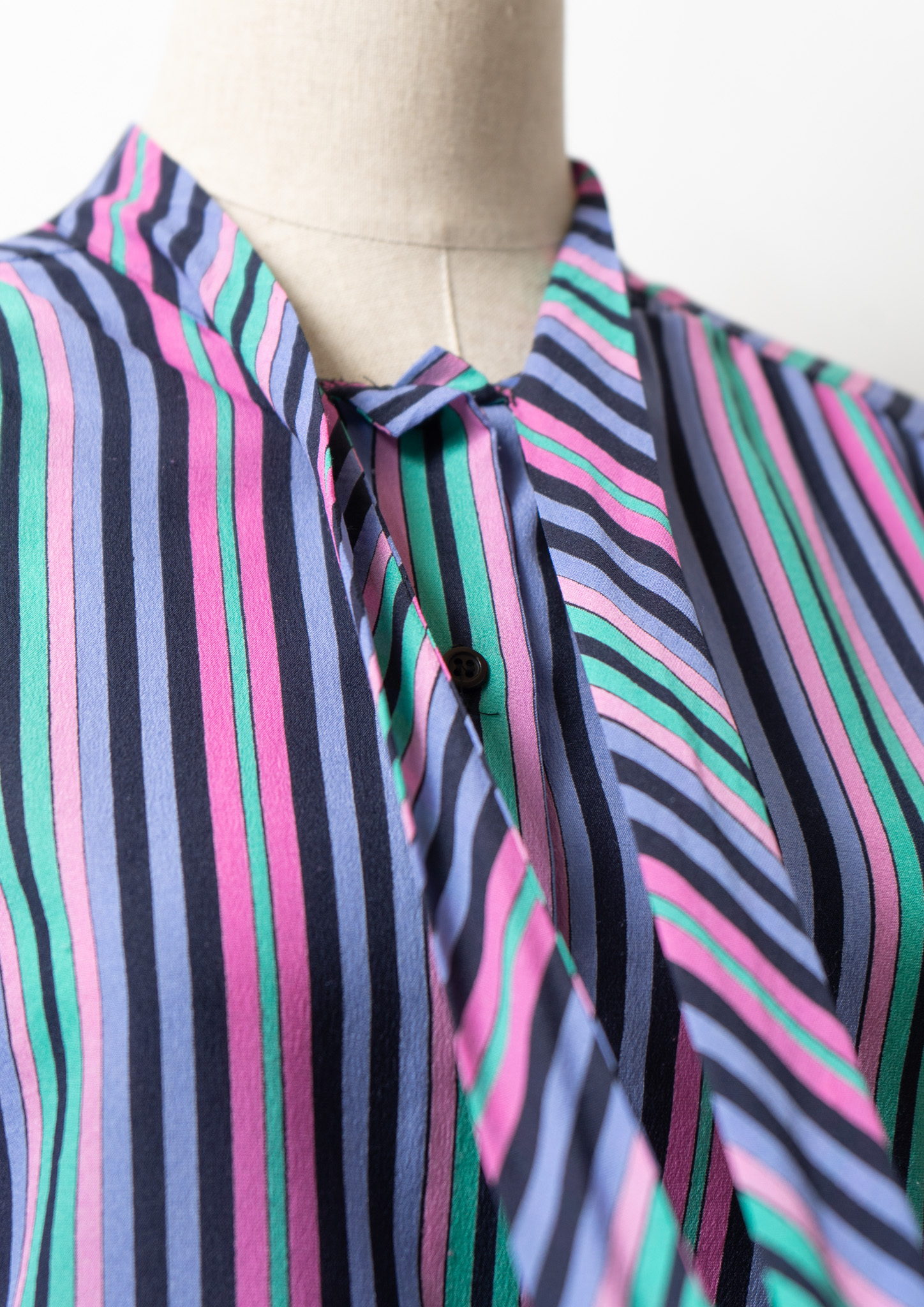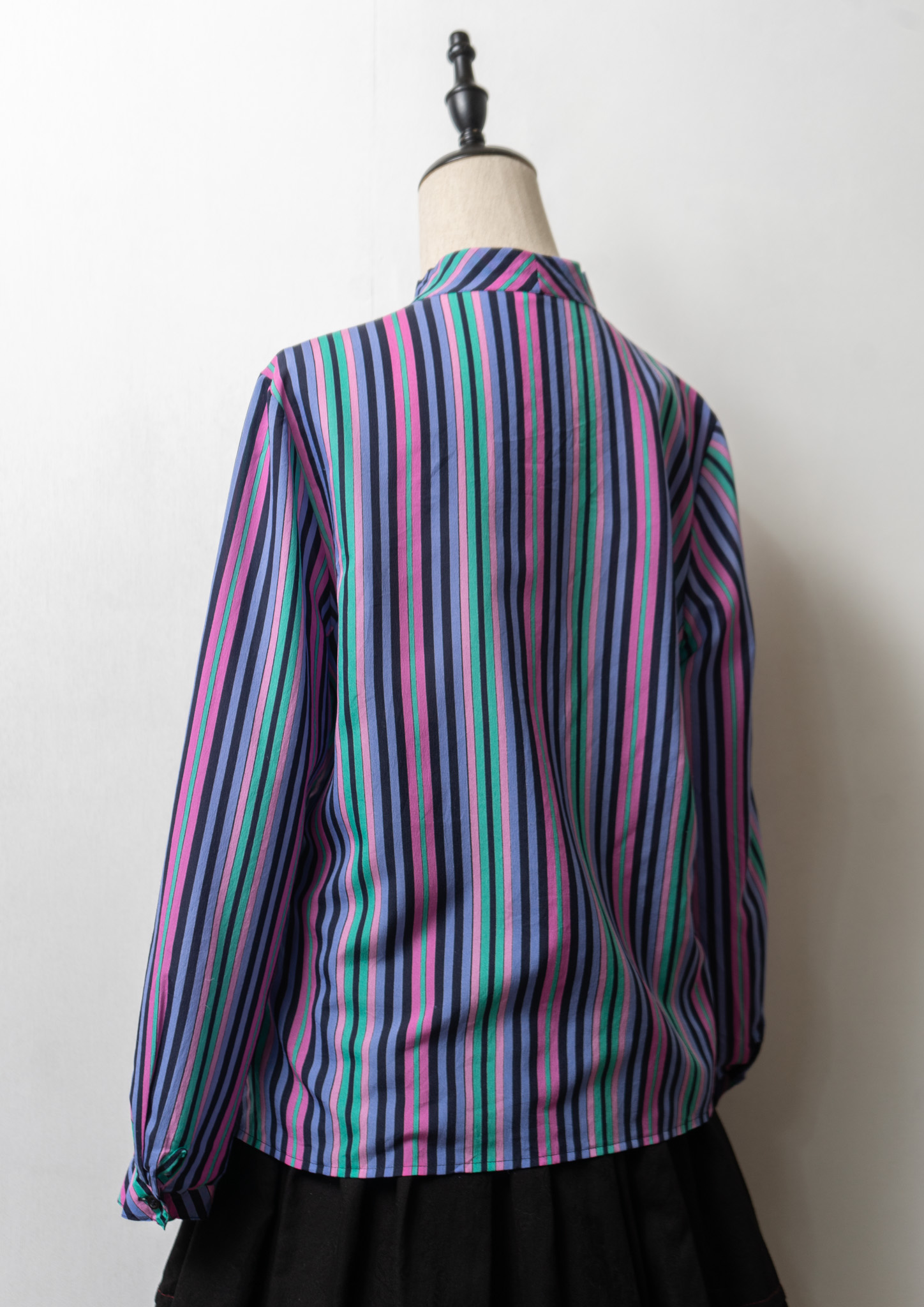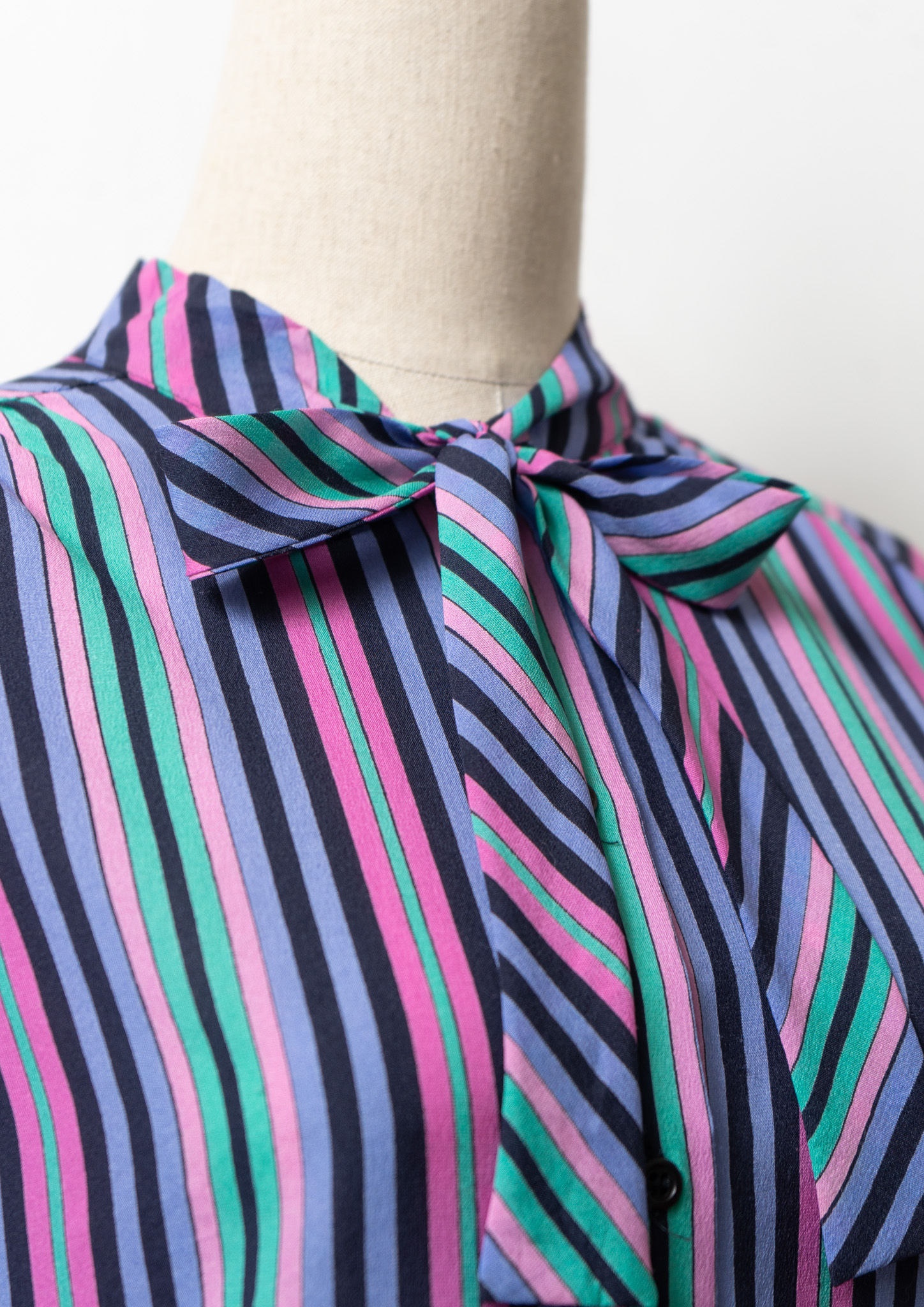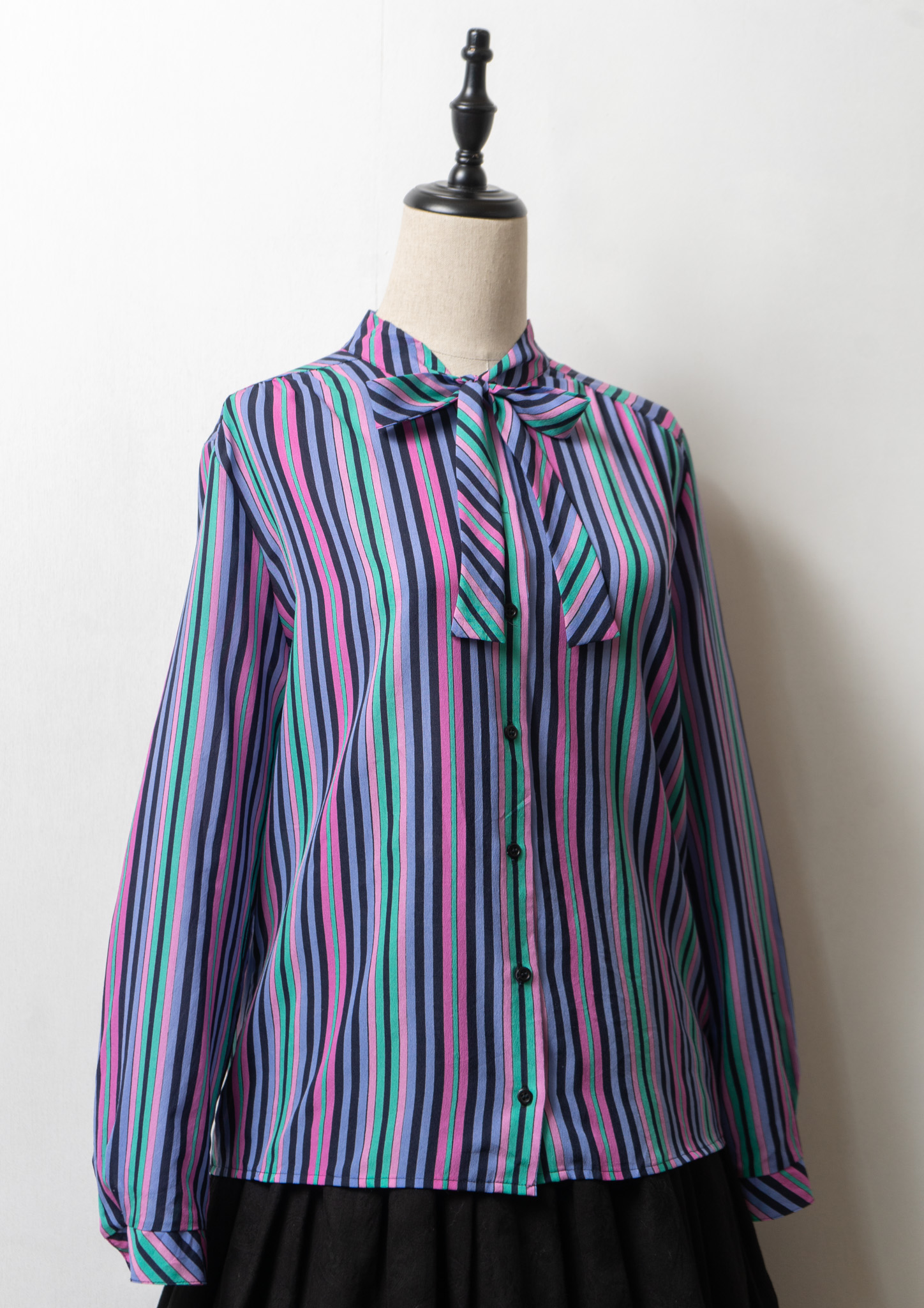 80's Multi Color Stripe Pattern Bow tie Blouse