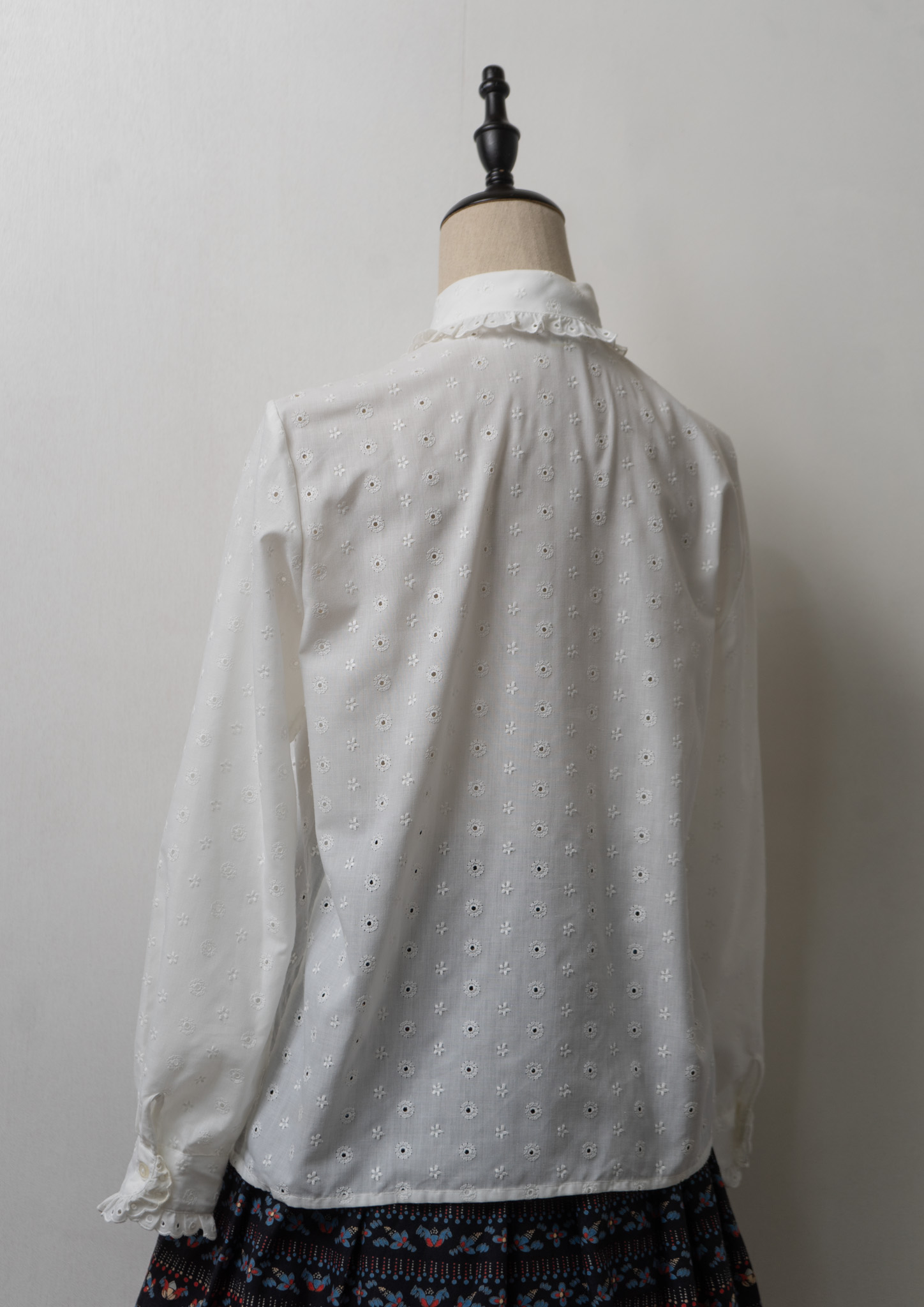 80's Euro Eyelet Lace Lace Design White Blouse