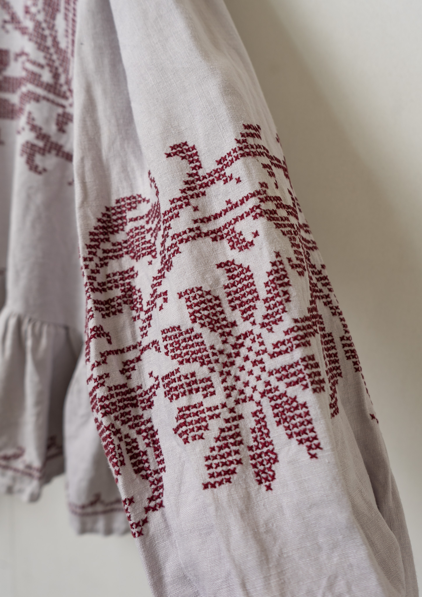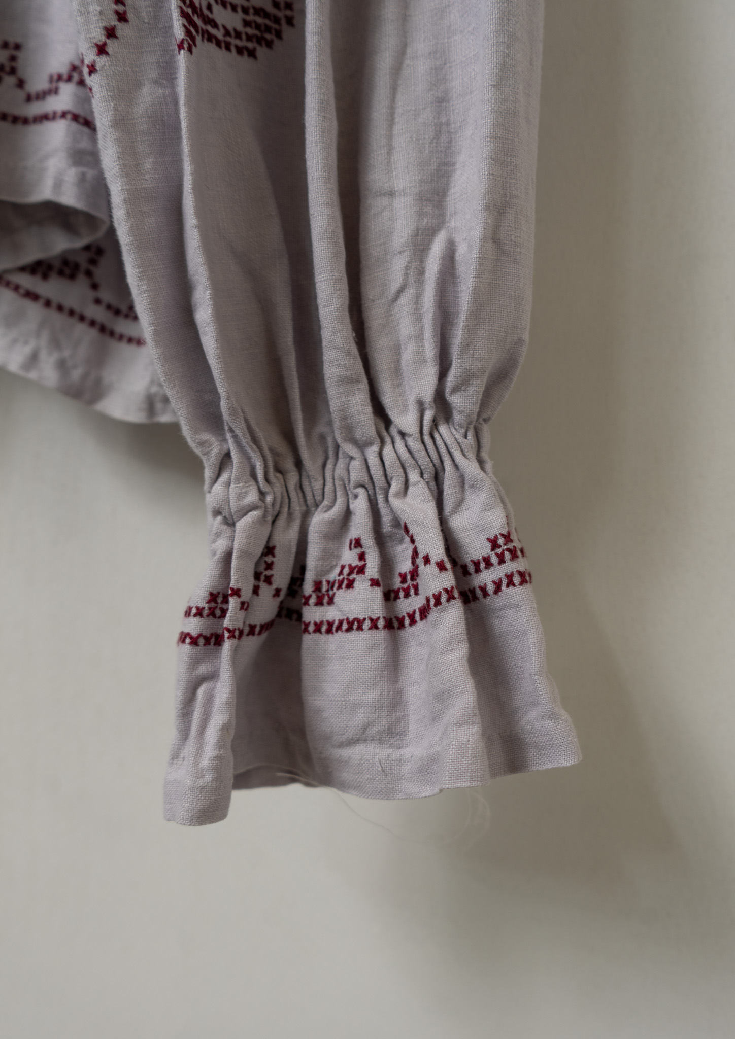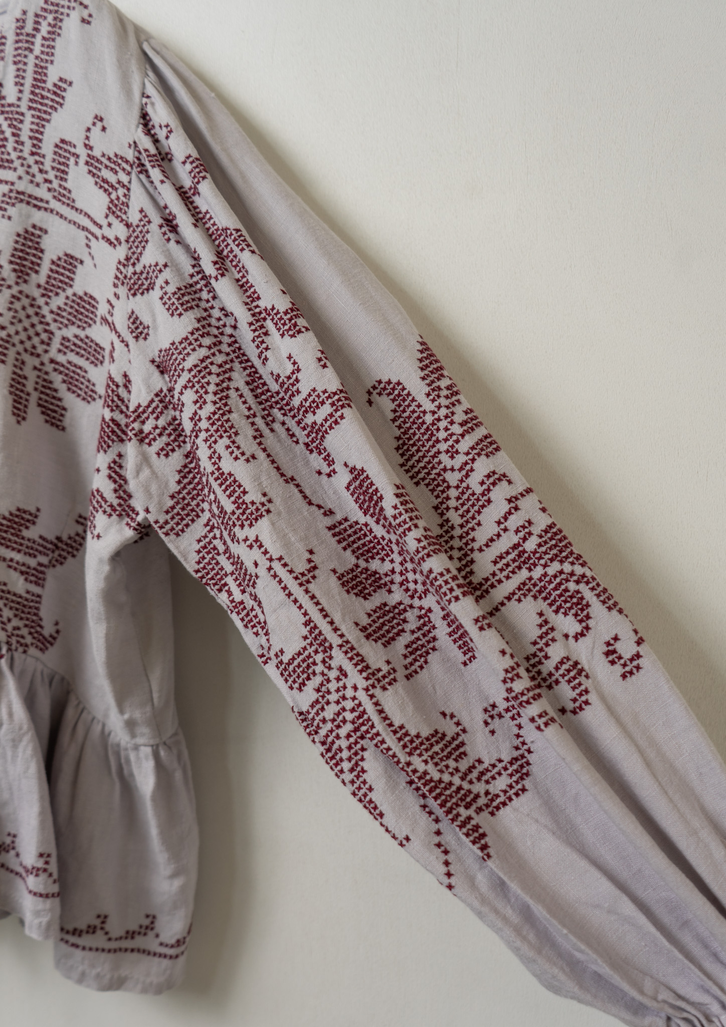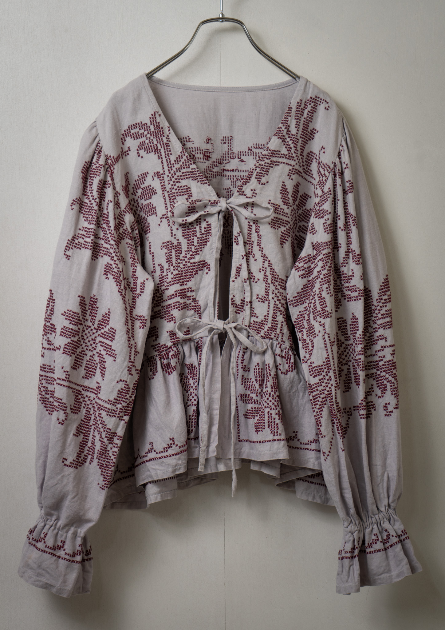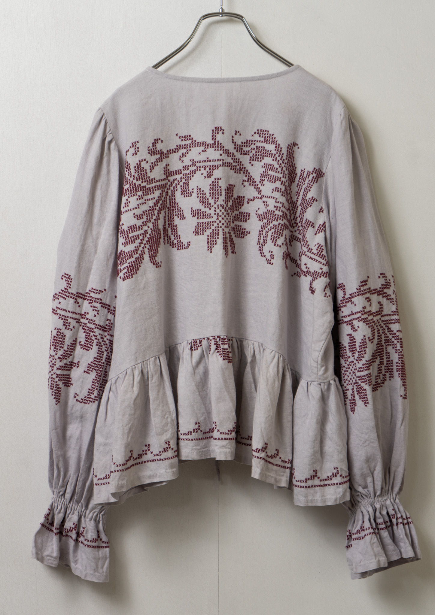 Upcycle Botanical Embroidery Lavender Gray Blouse