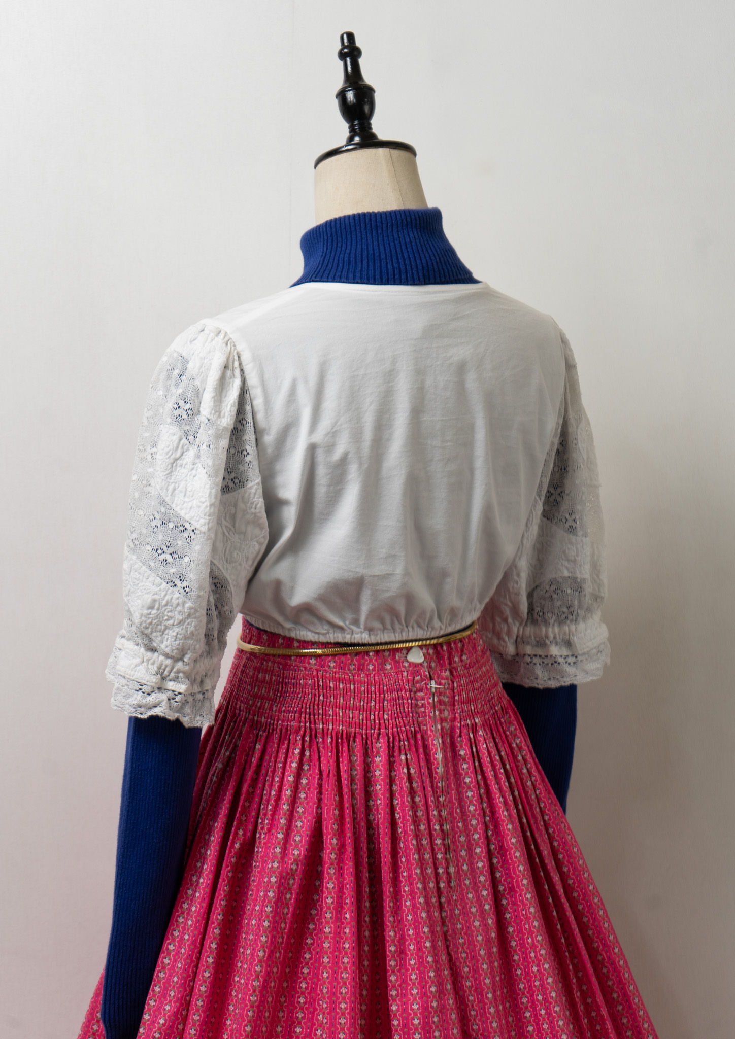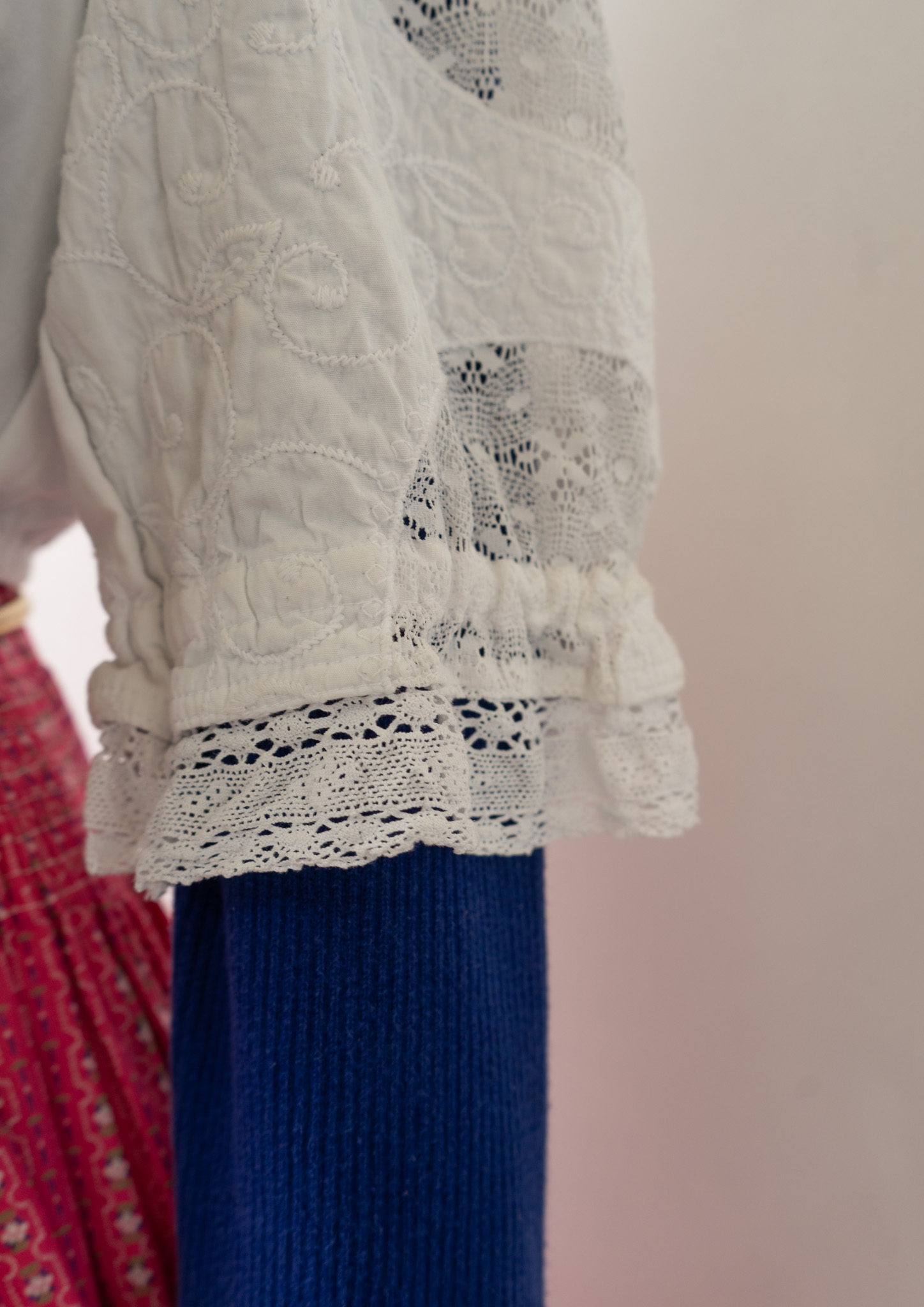 90's Lace Design White Cropped Tyrol Tops
