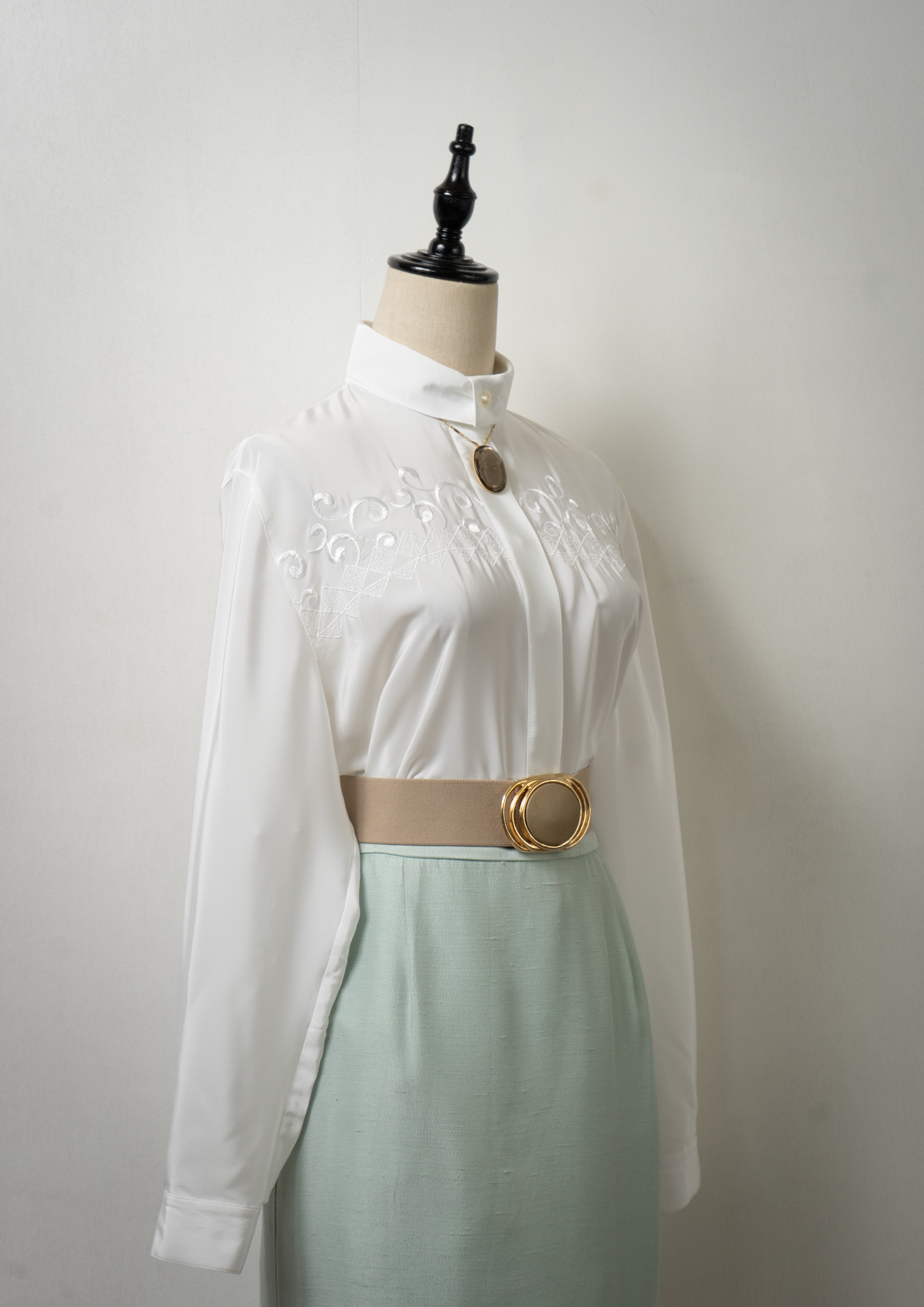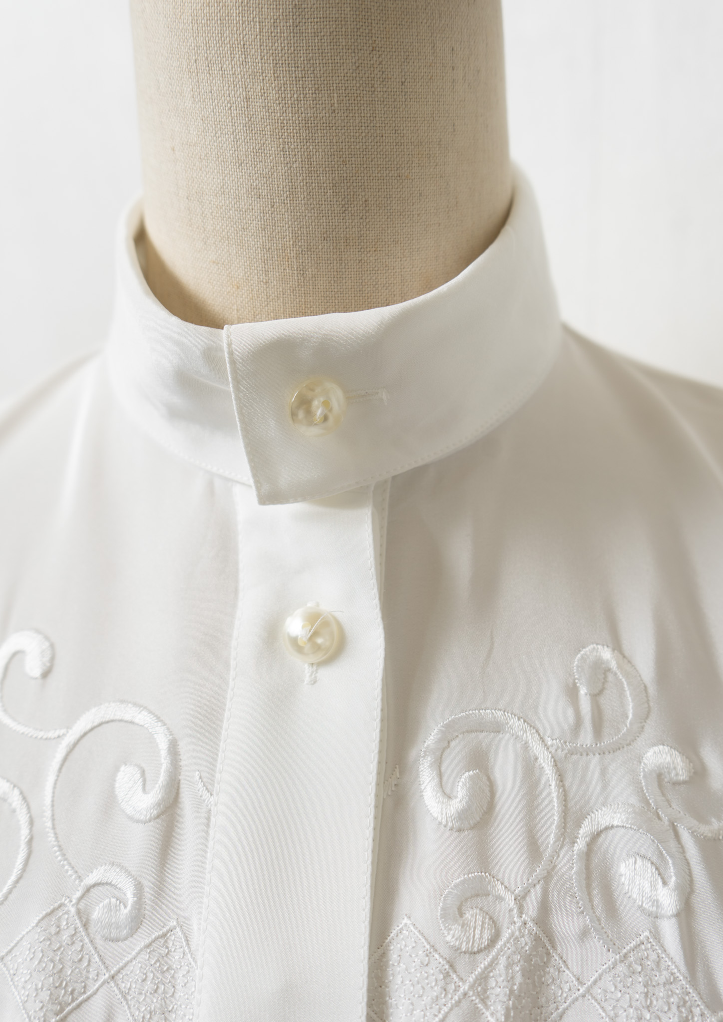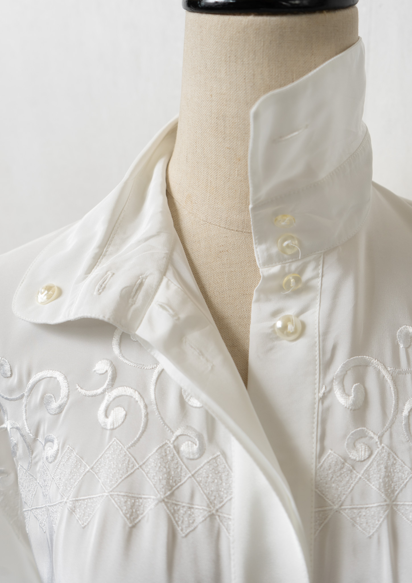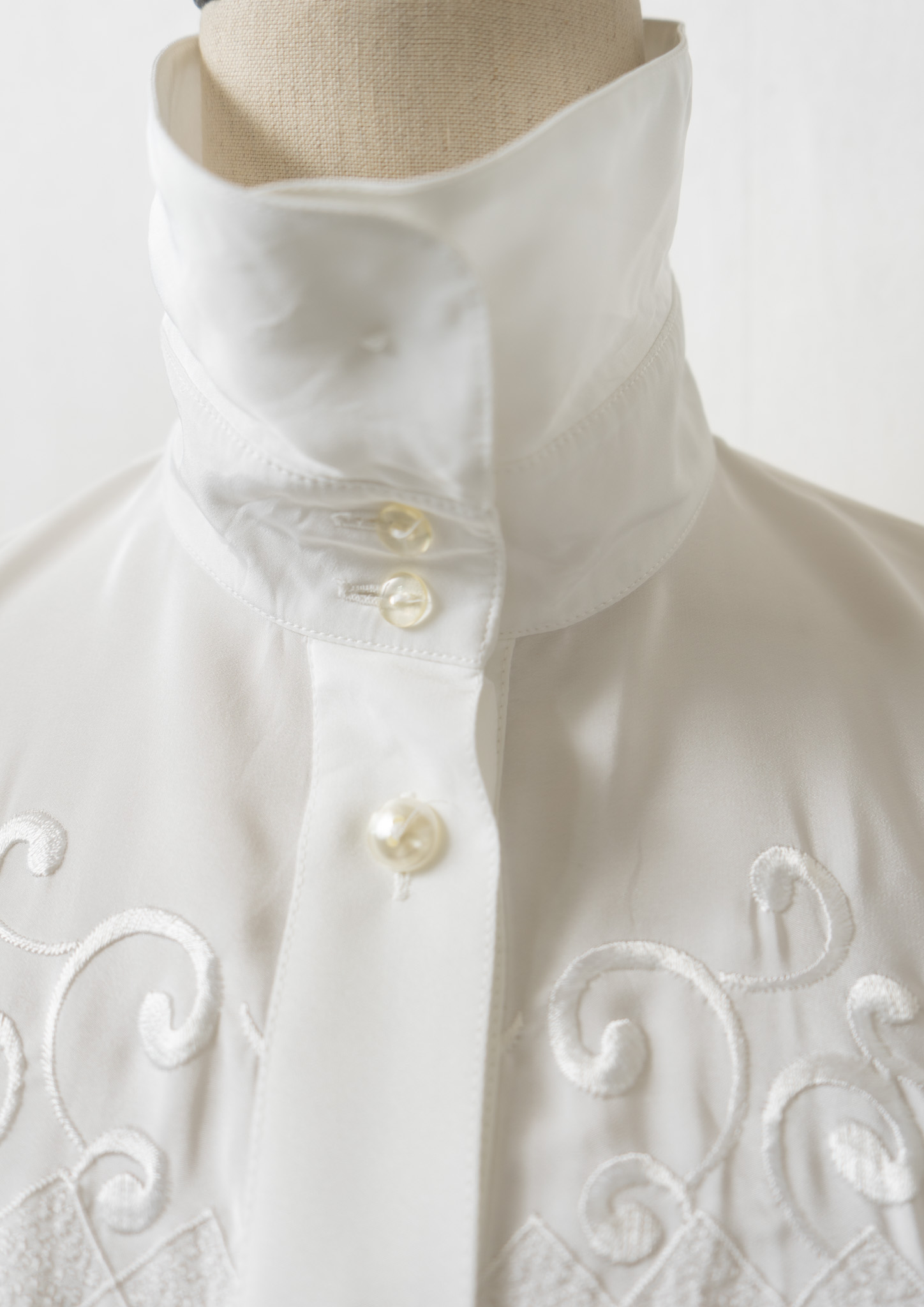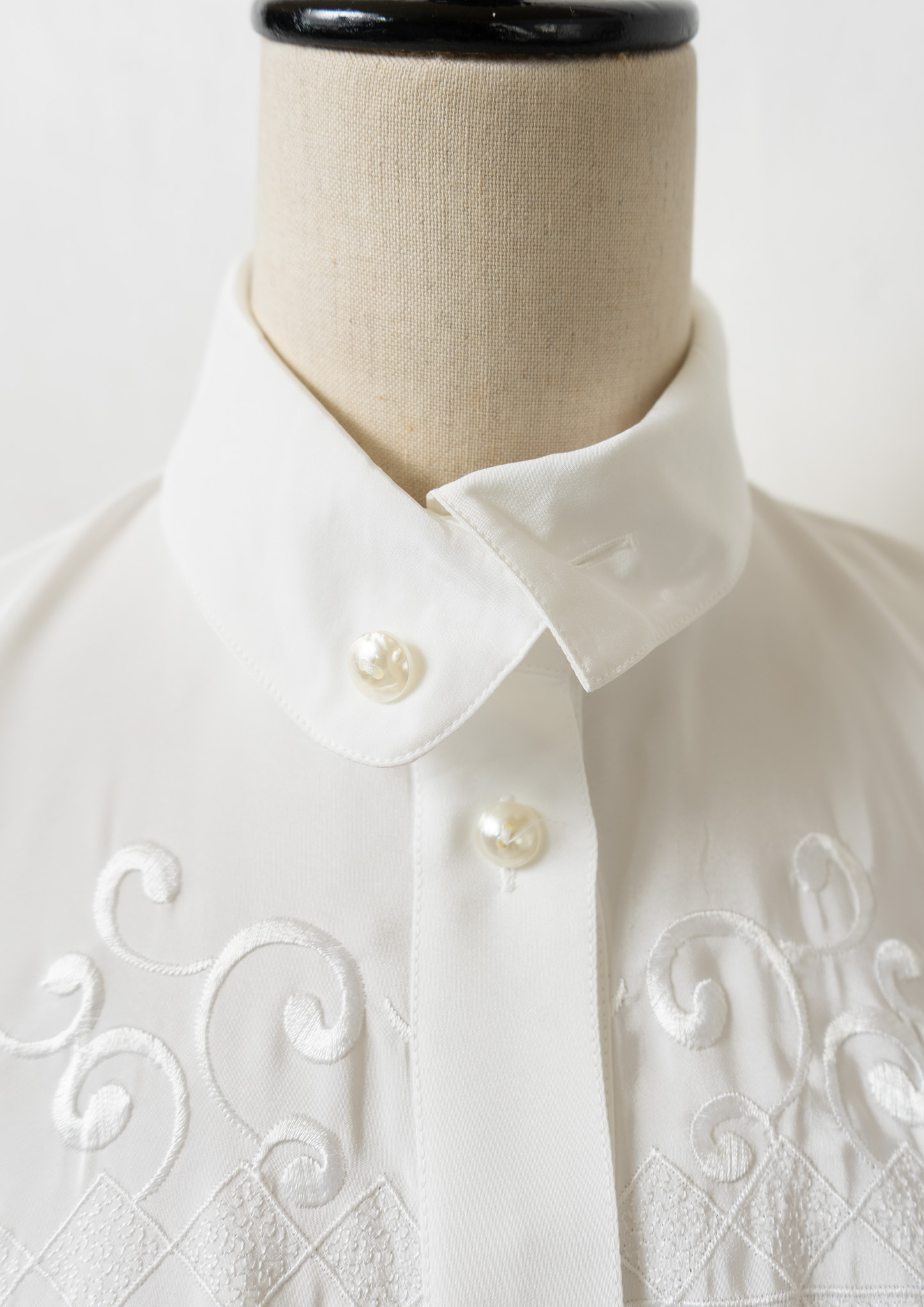 80's Diamond × Vine Motif Embroidery White Blouse