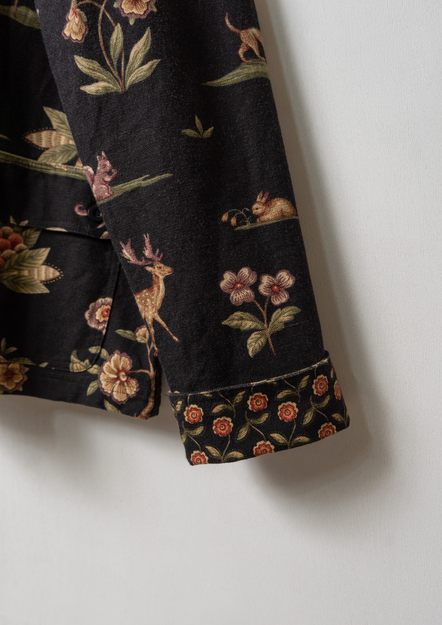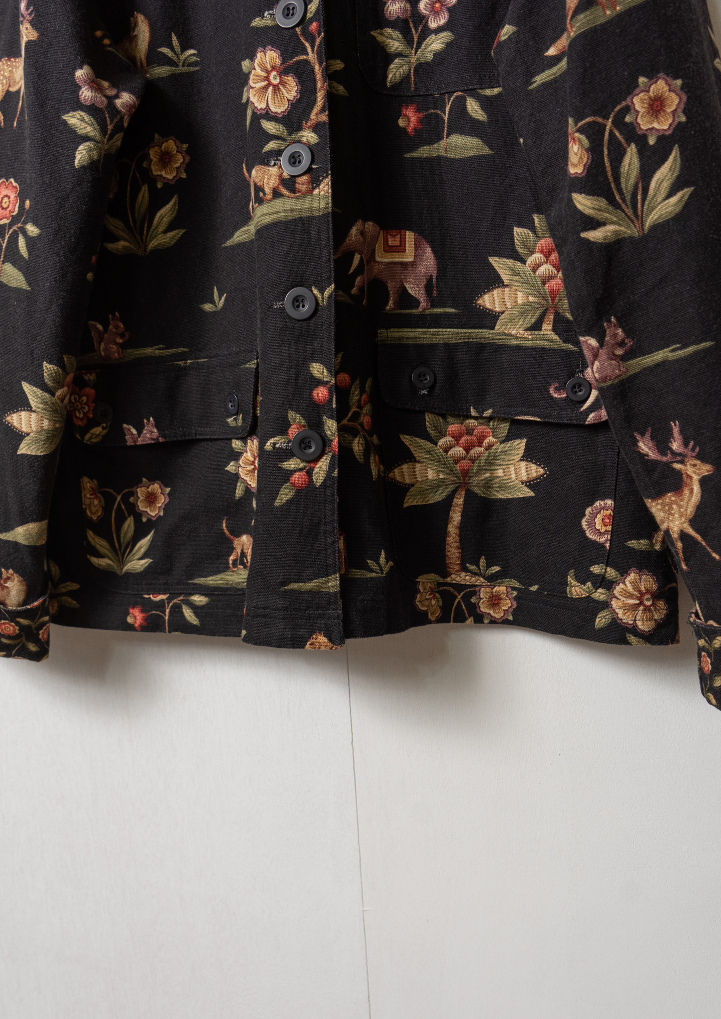80's Rooster Embroidery Multi Button Design Black Tyrol Jacket