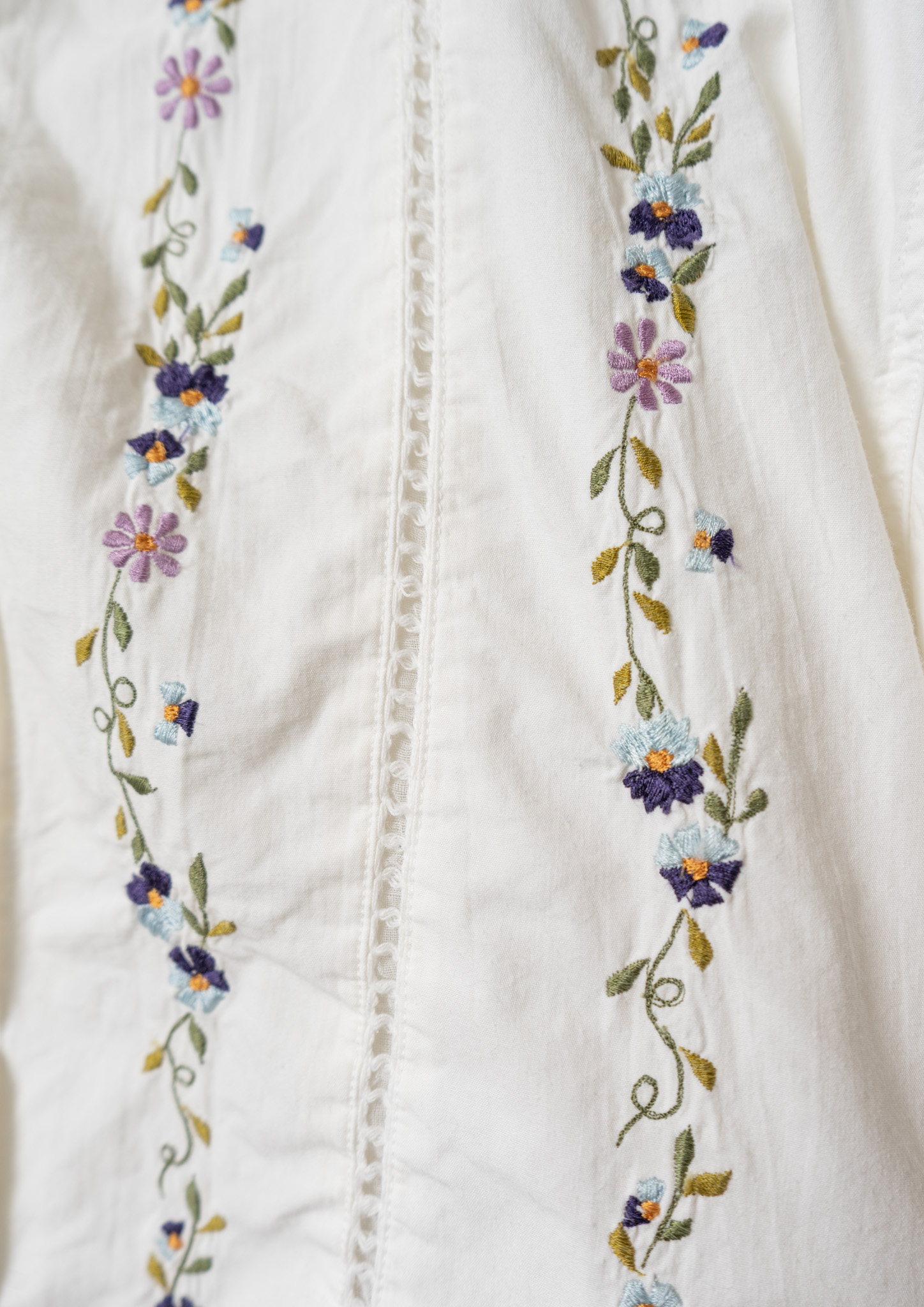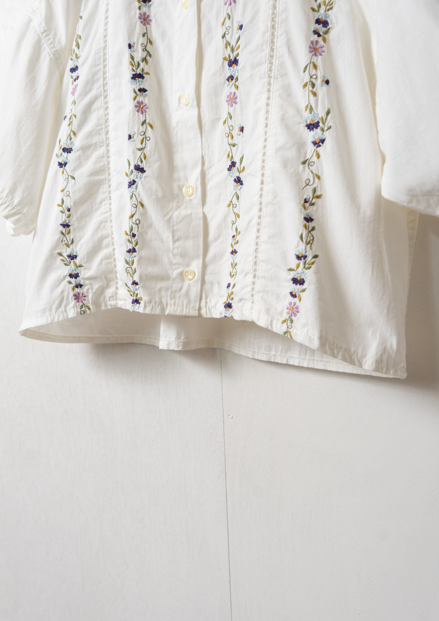 Upcycle Flower × Mountain Embroidery White Blouse