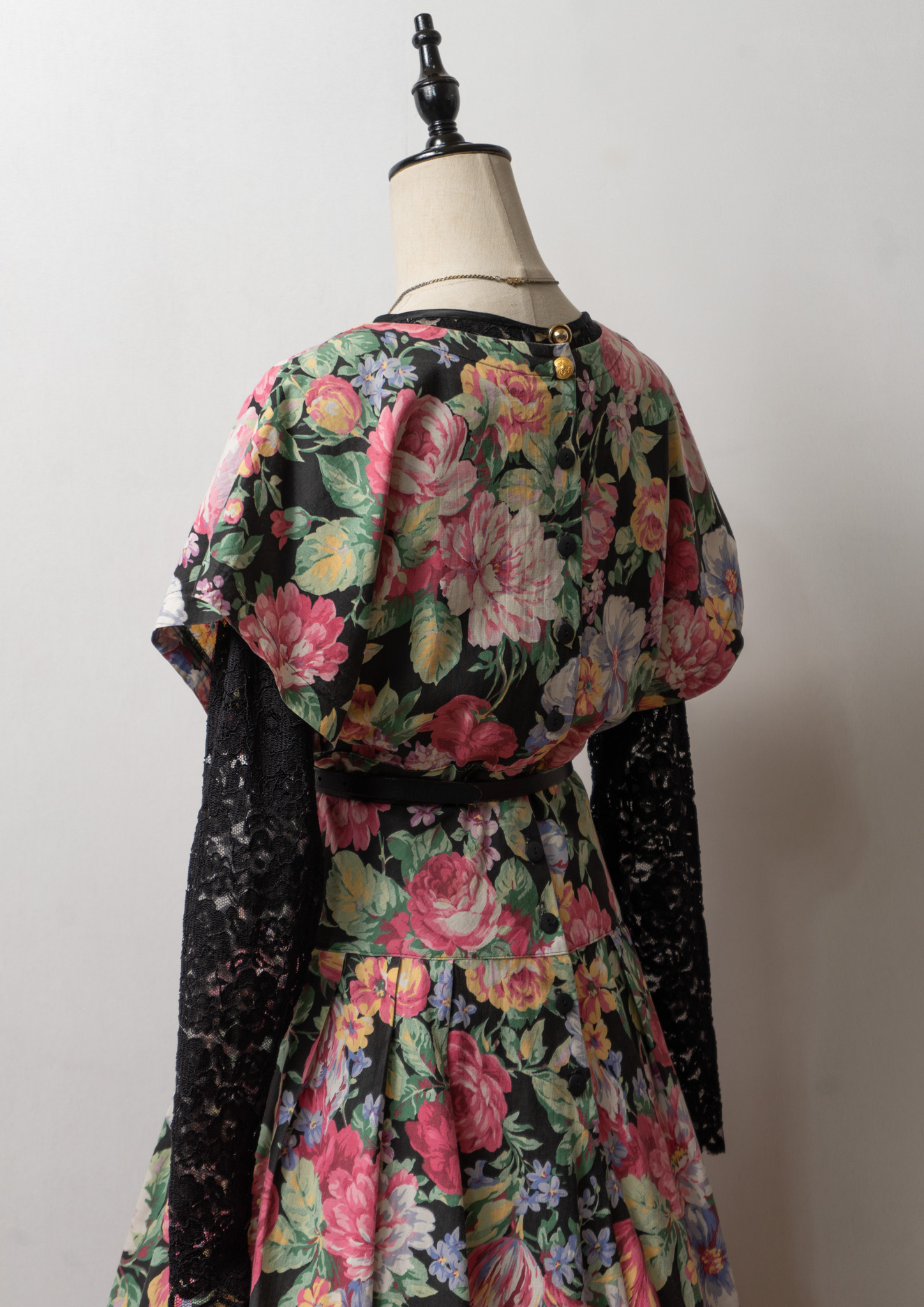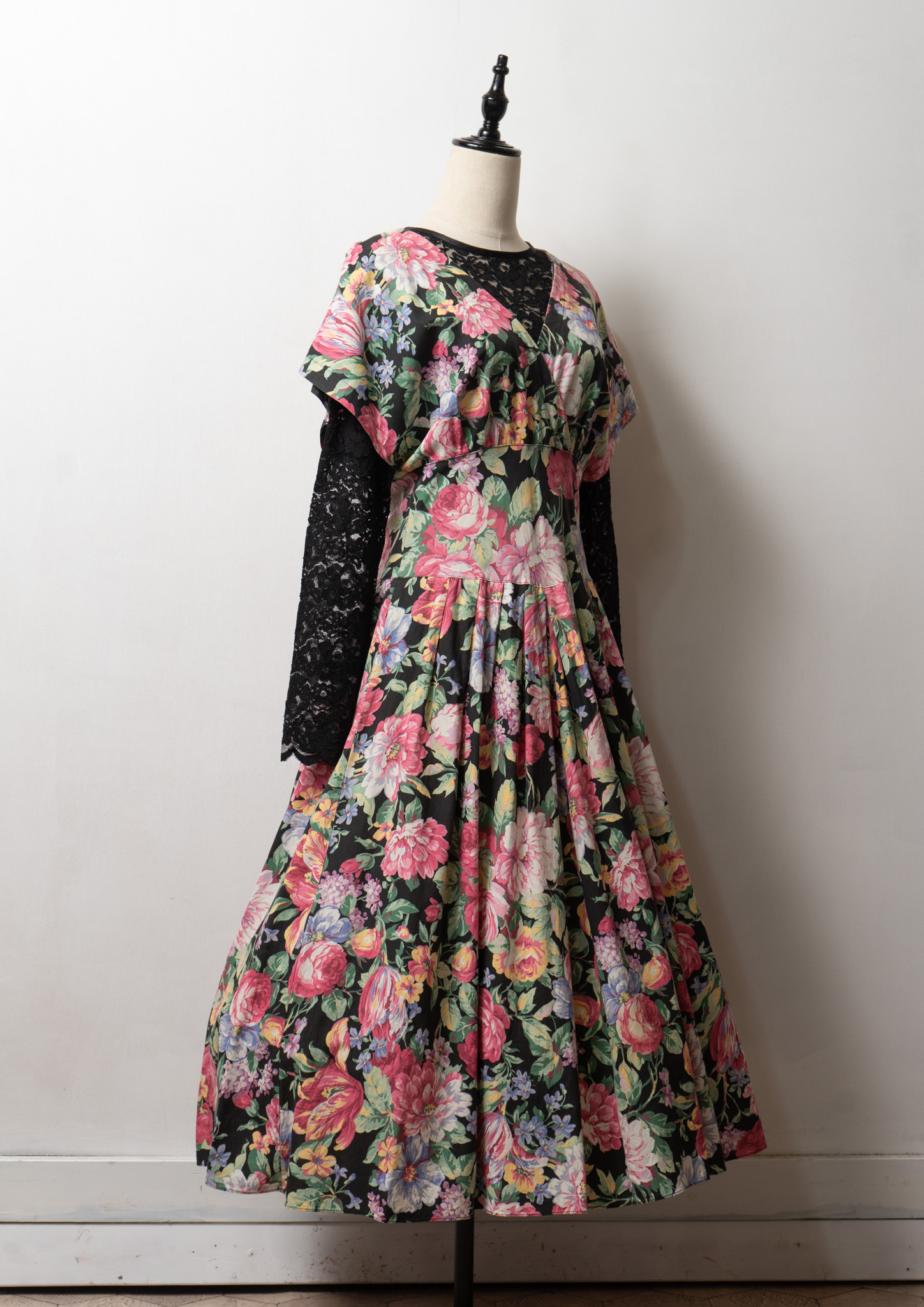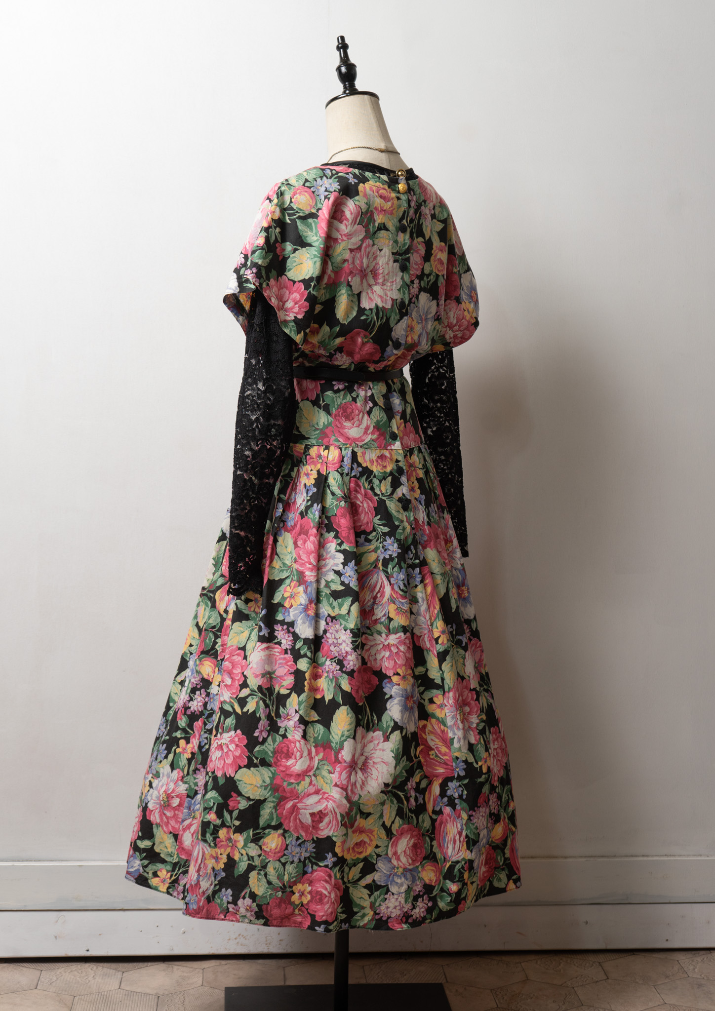 80~90's USA Botanical Pattern Big Lace Collar Dress