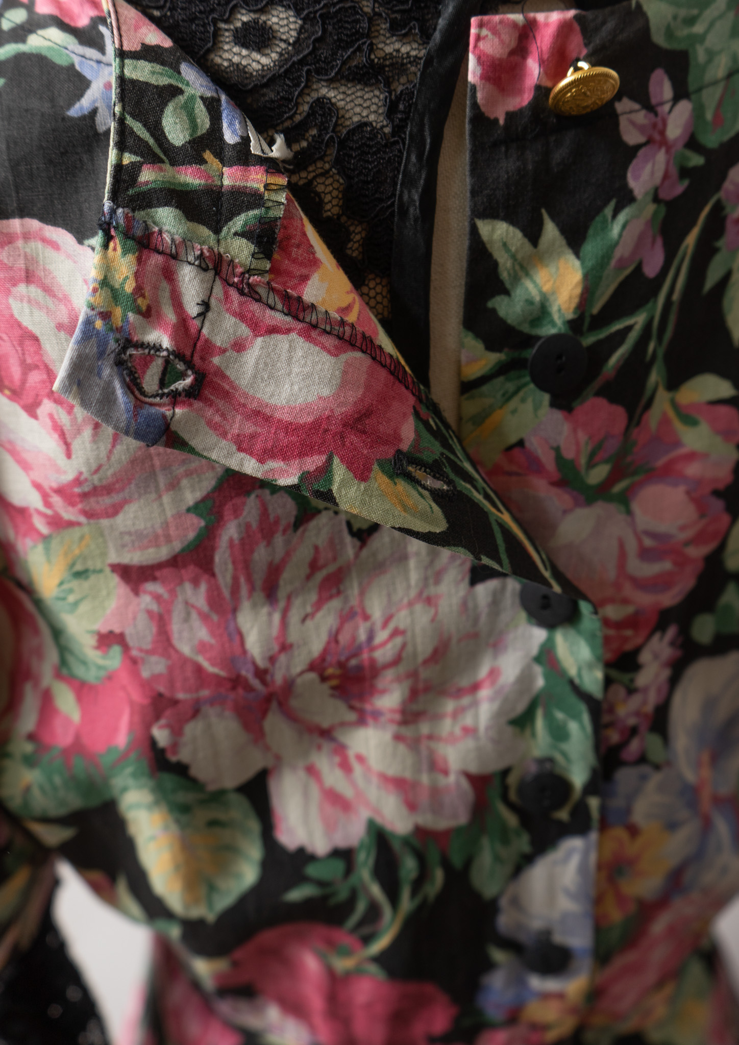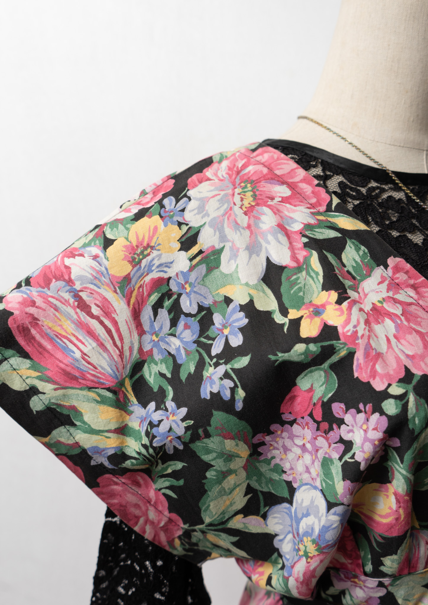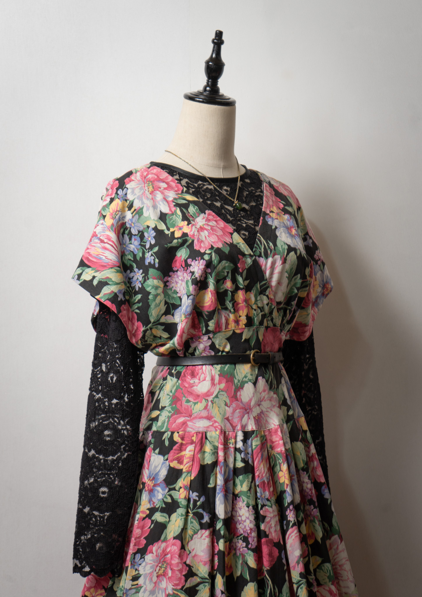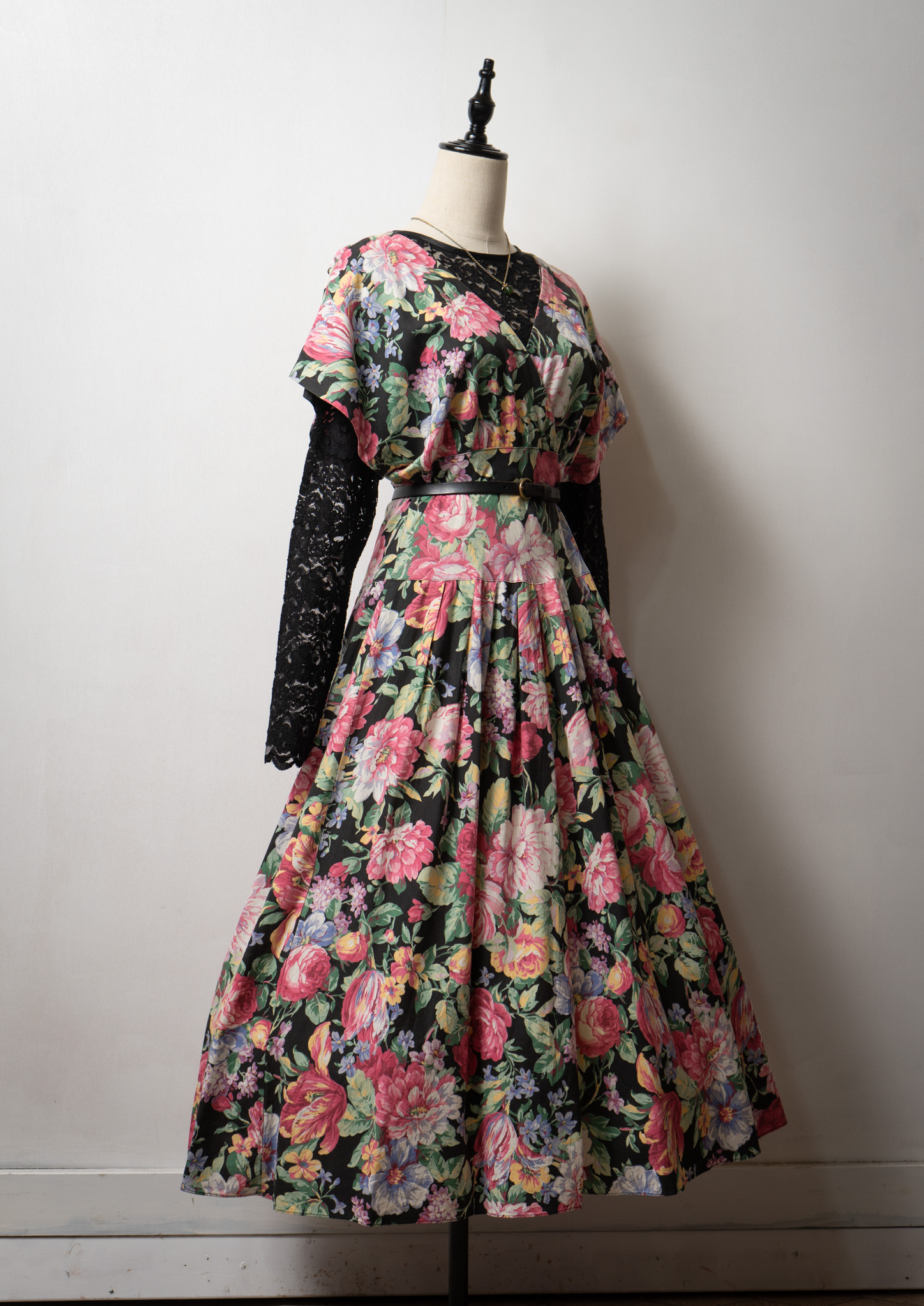 80~90's USA Botanical Pattern Big Lace Collar Dress
