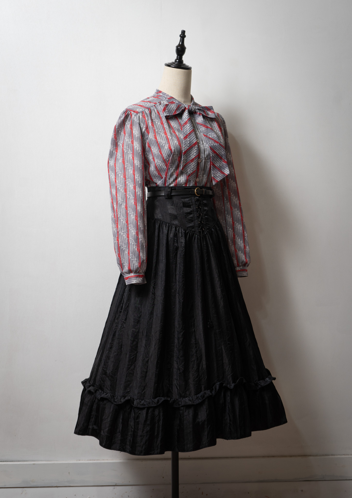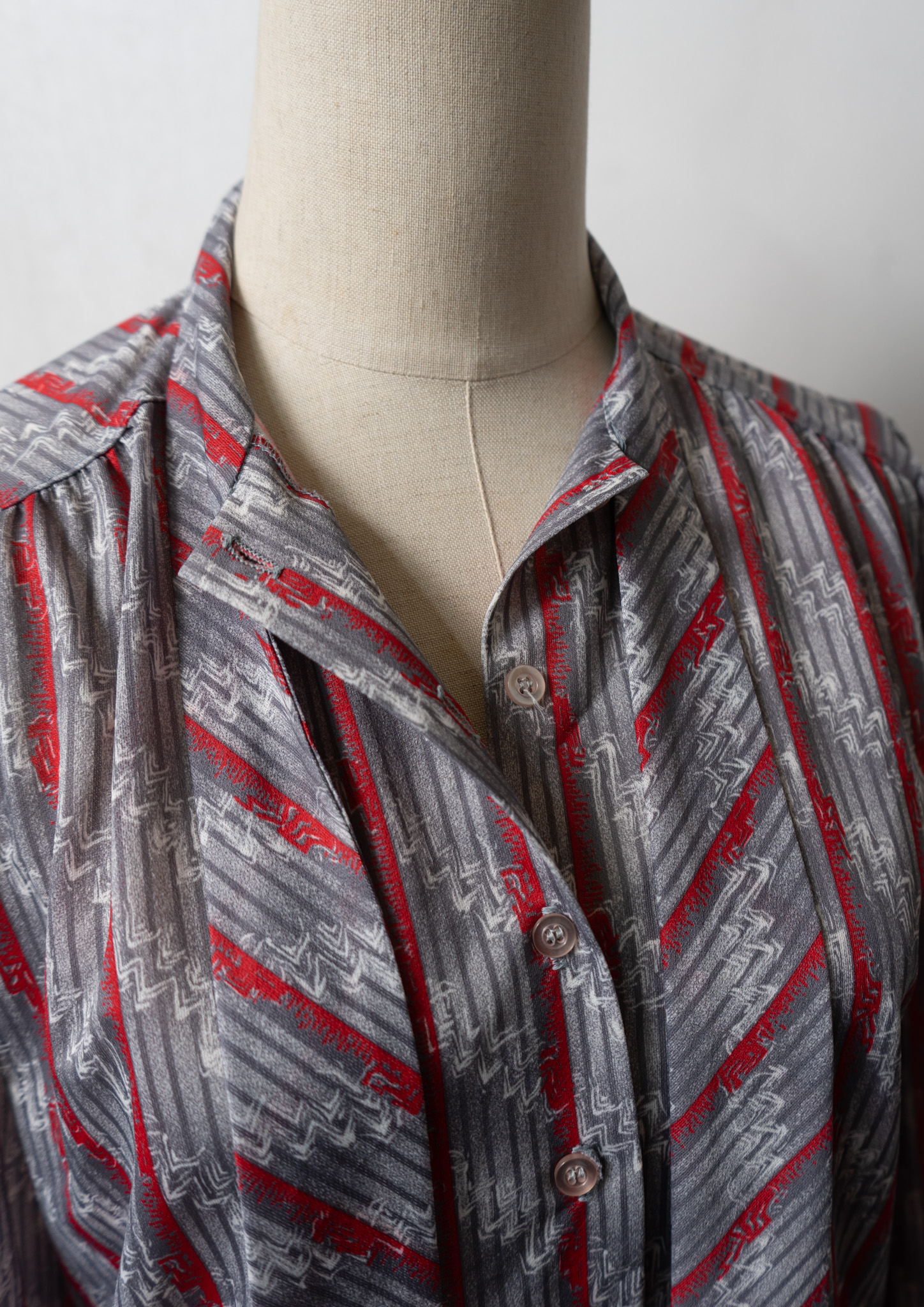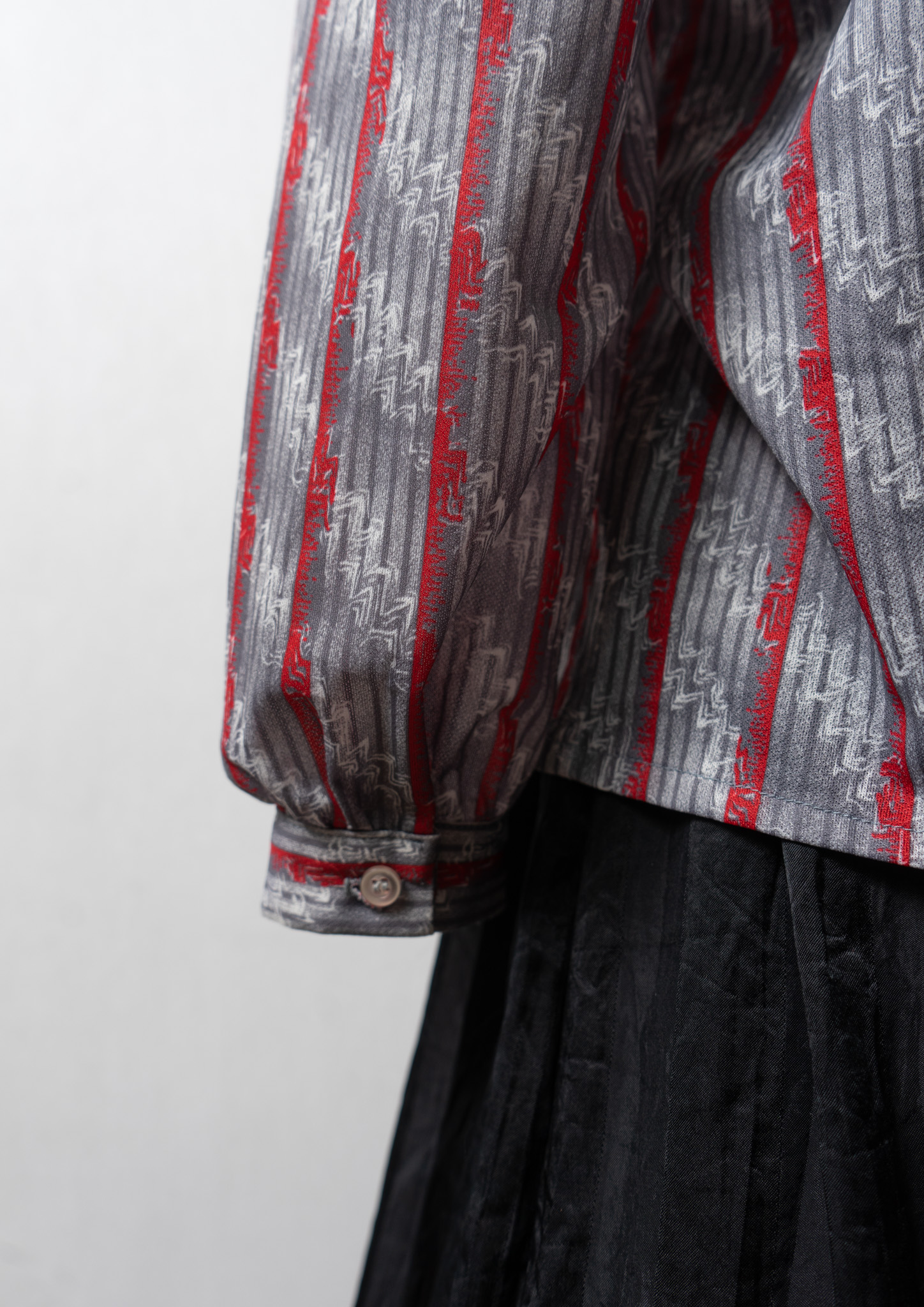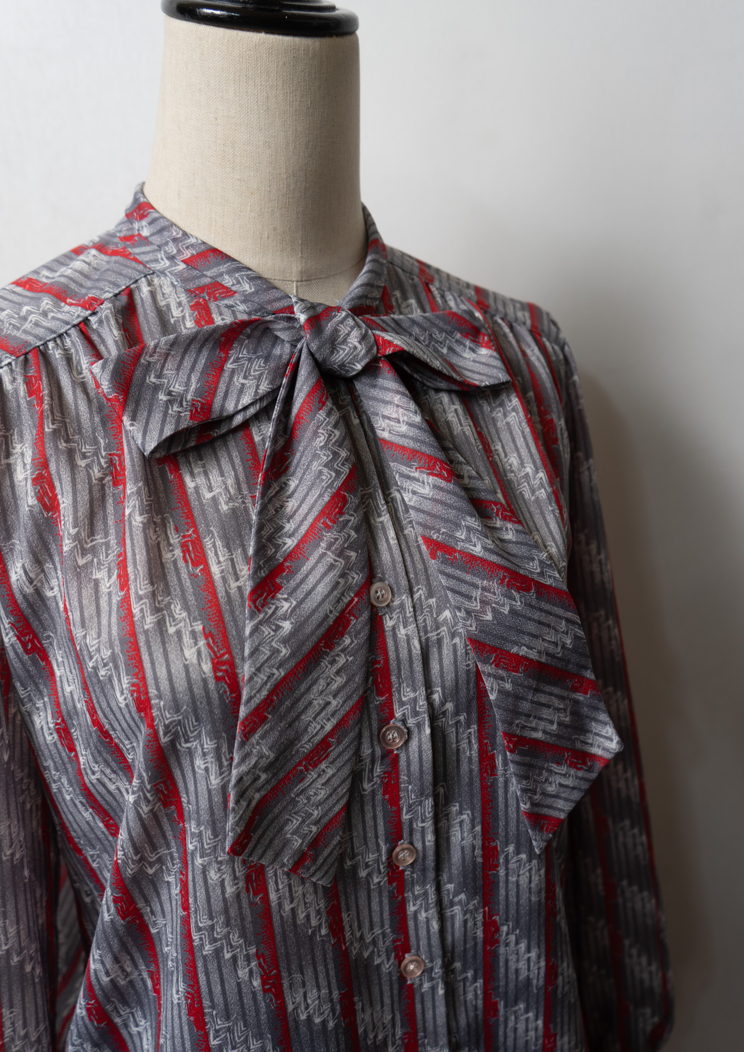 80~90's Canada Unique Stripe Pattern Bow-tie Blouse