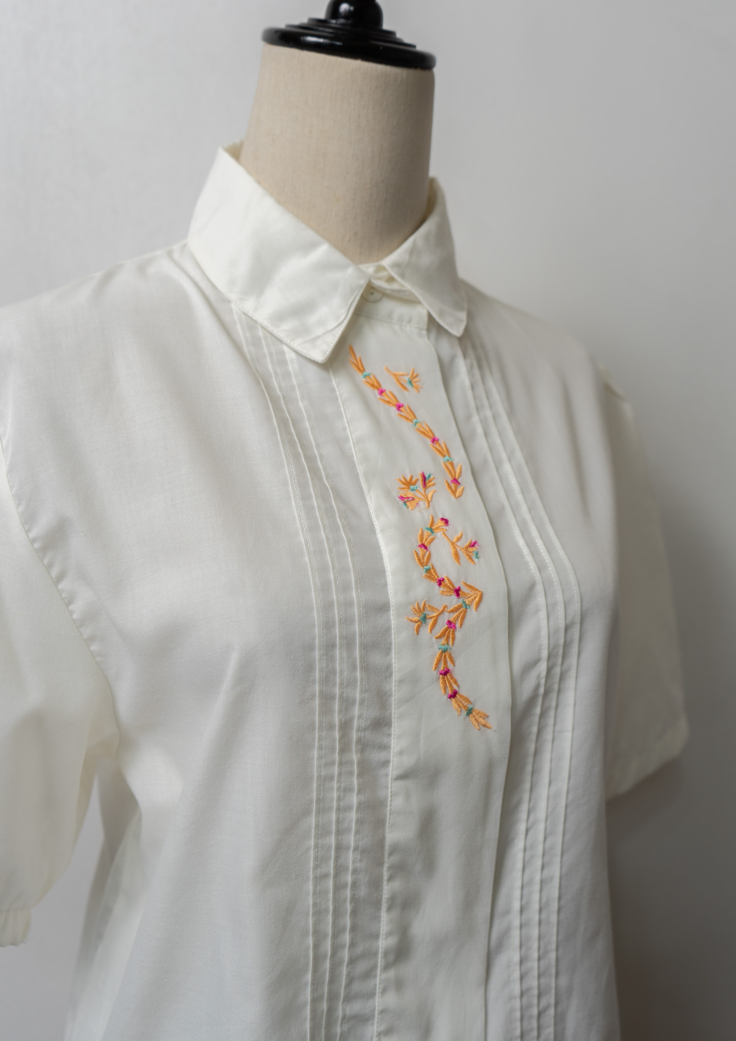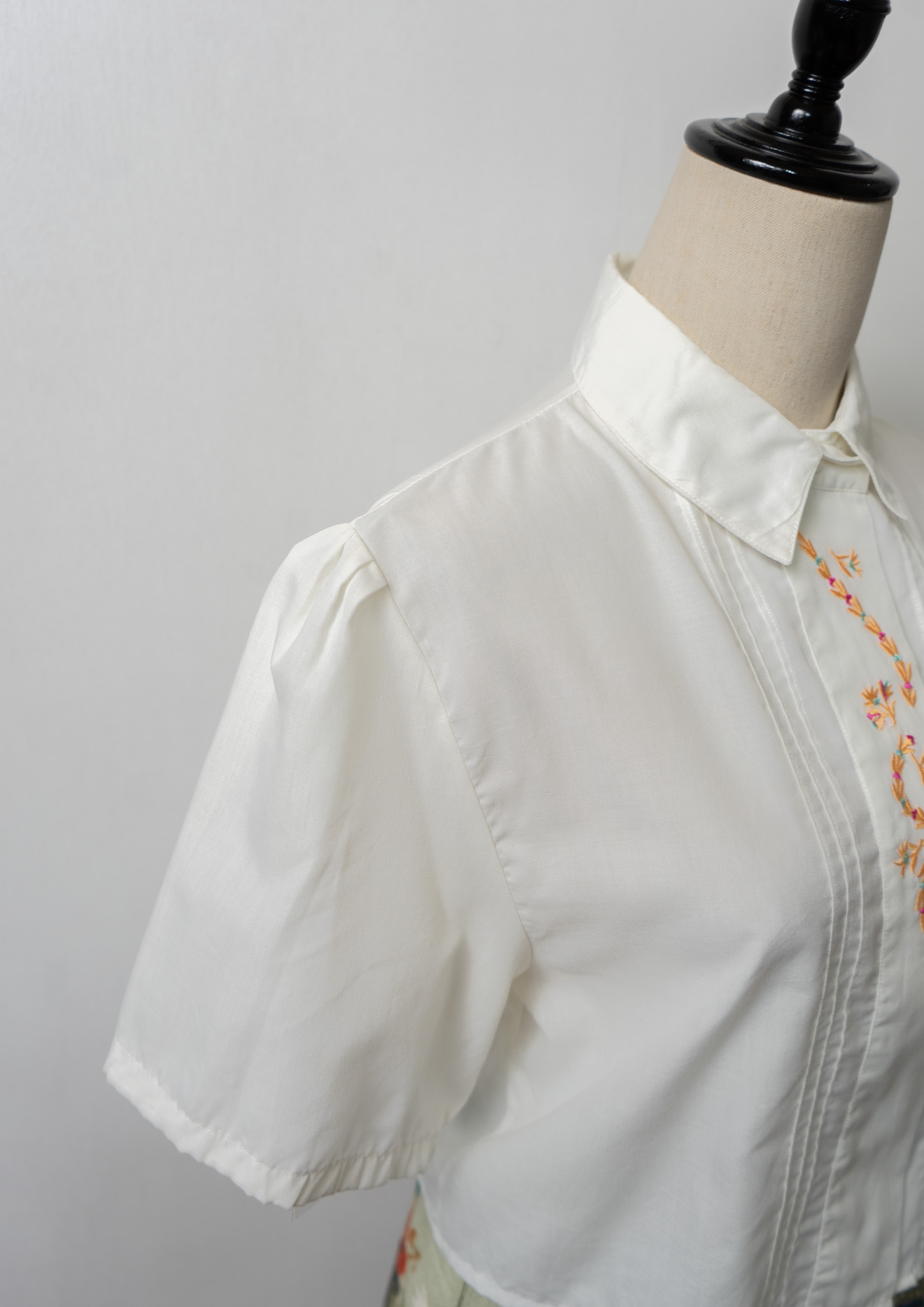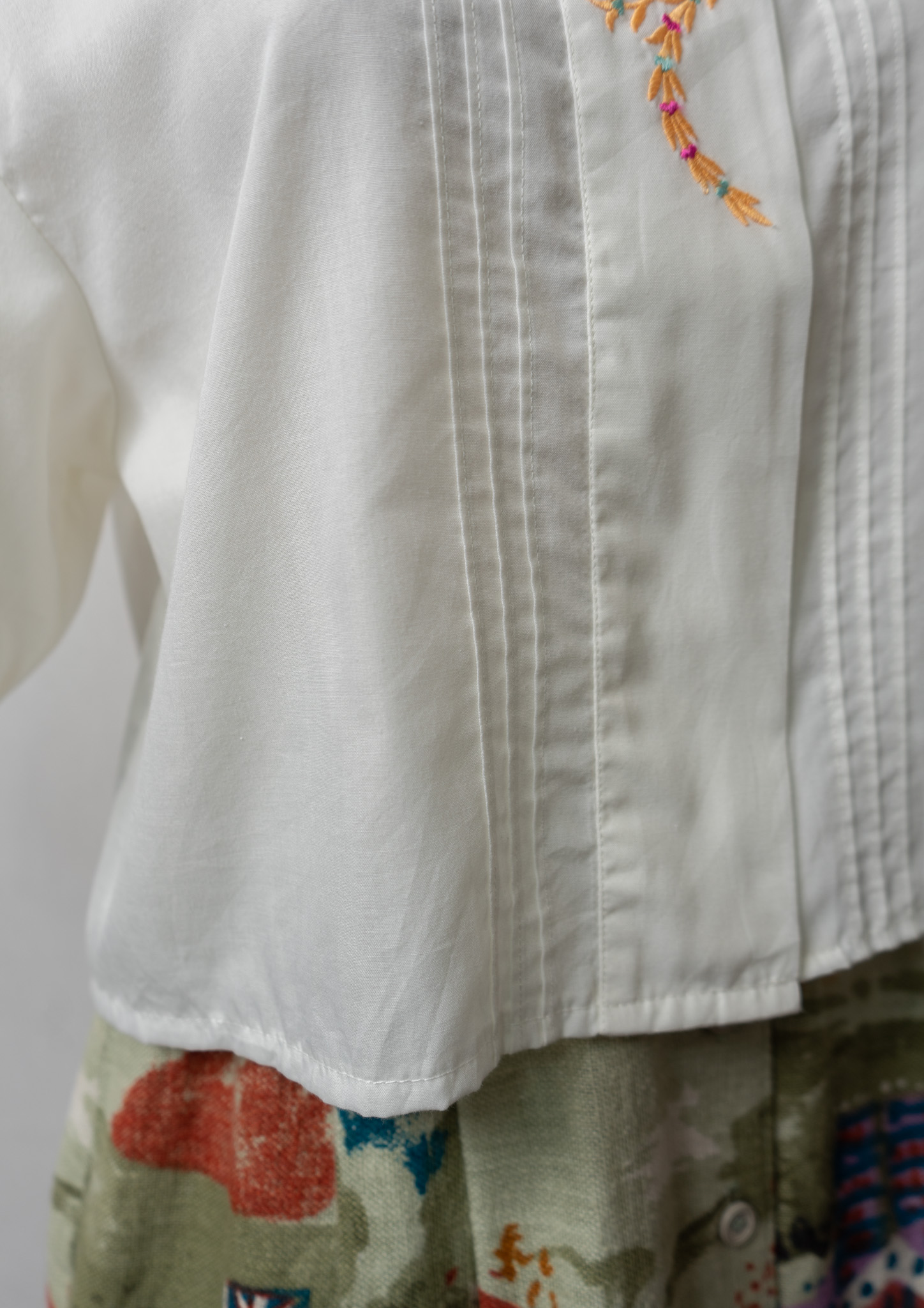 Upcycle Flower Embroidery × Pin Tuck Design Cropped Blouse