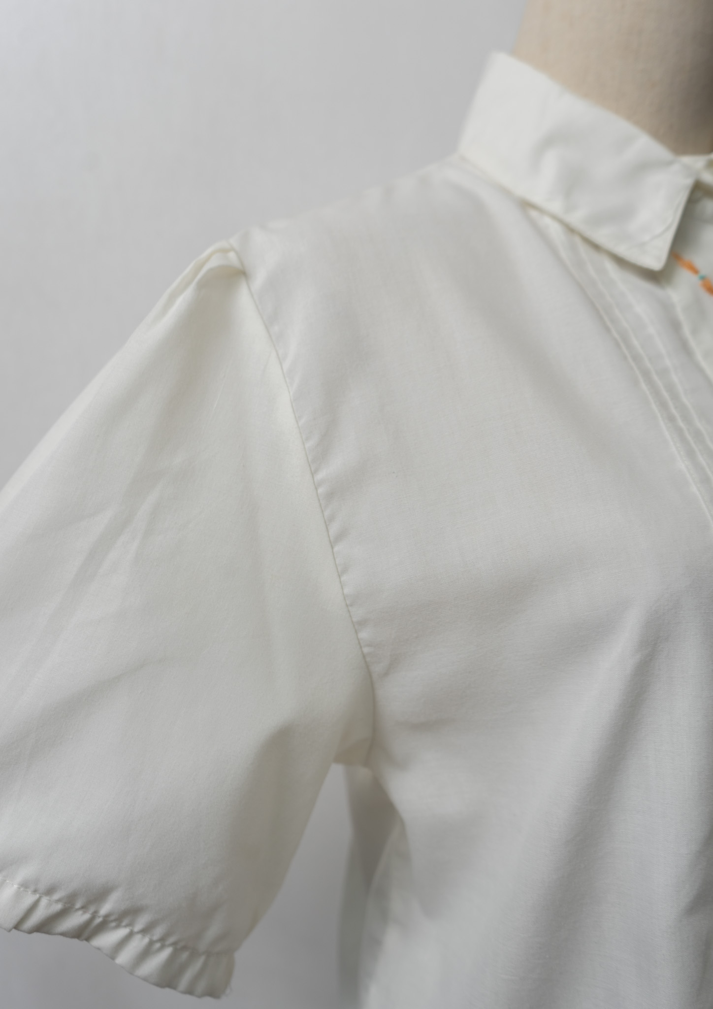 Upcycle Bird × Flower Embroidery Lace Collar White Blouse