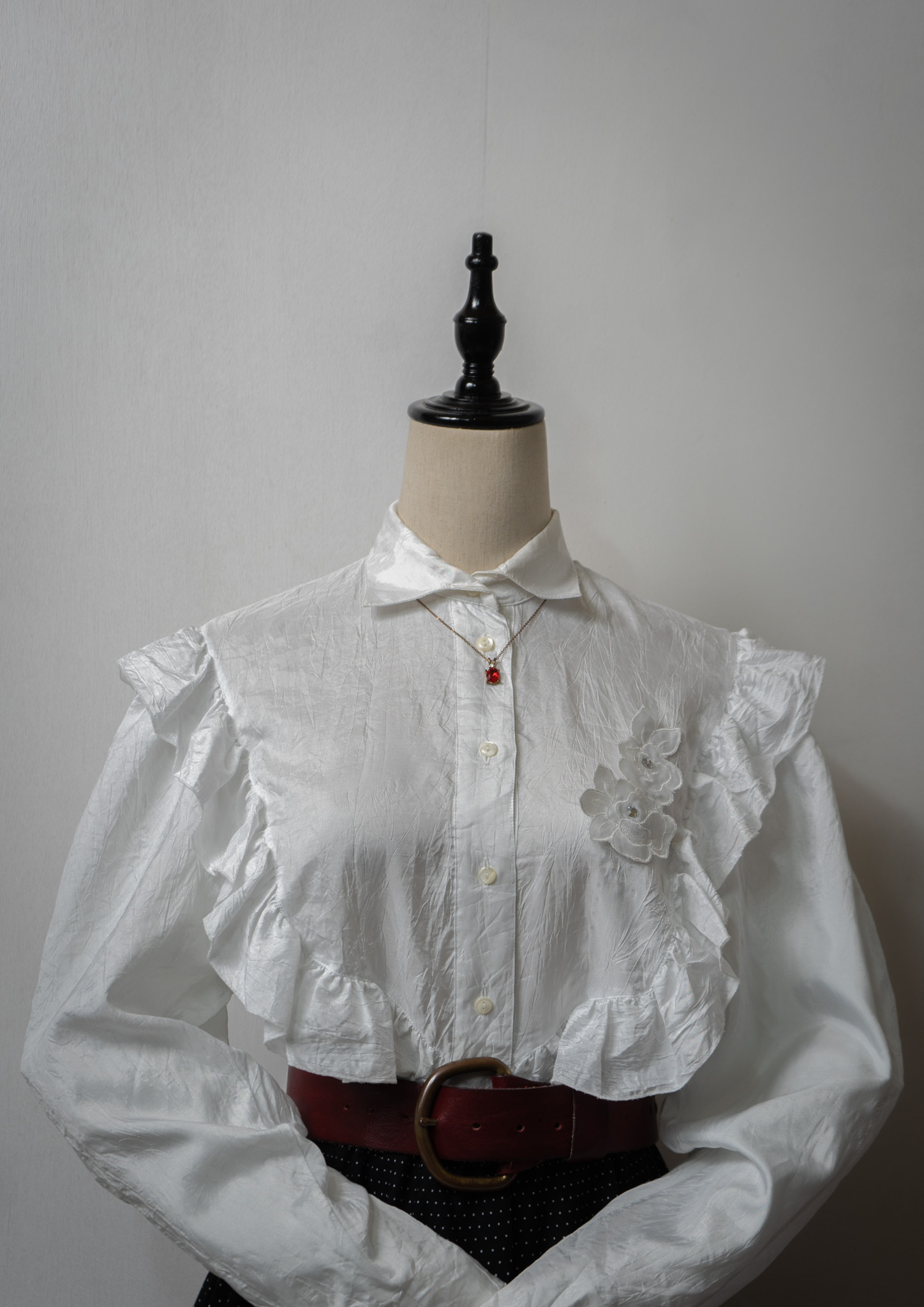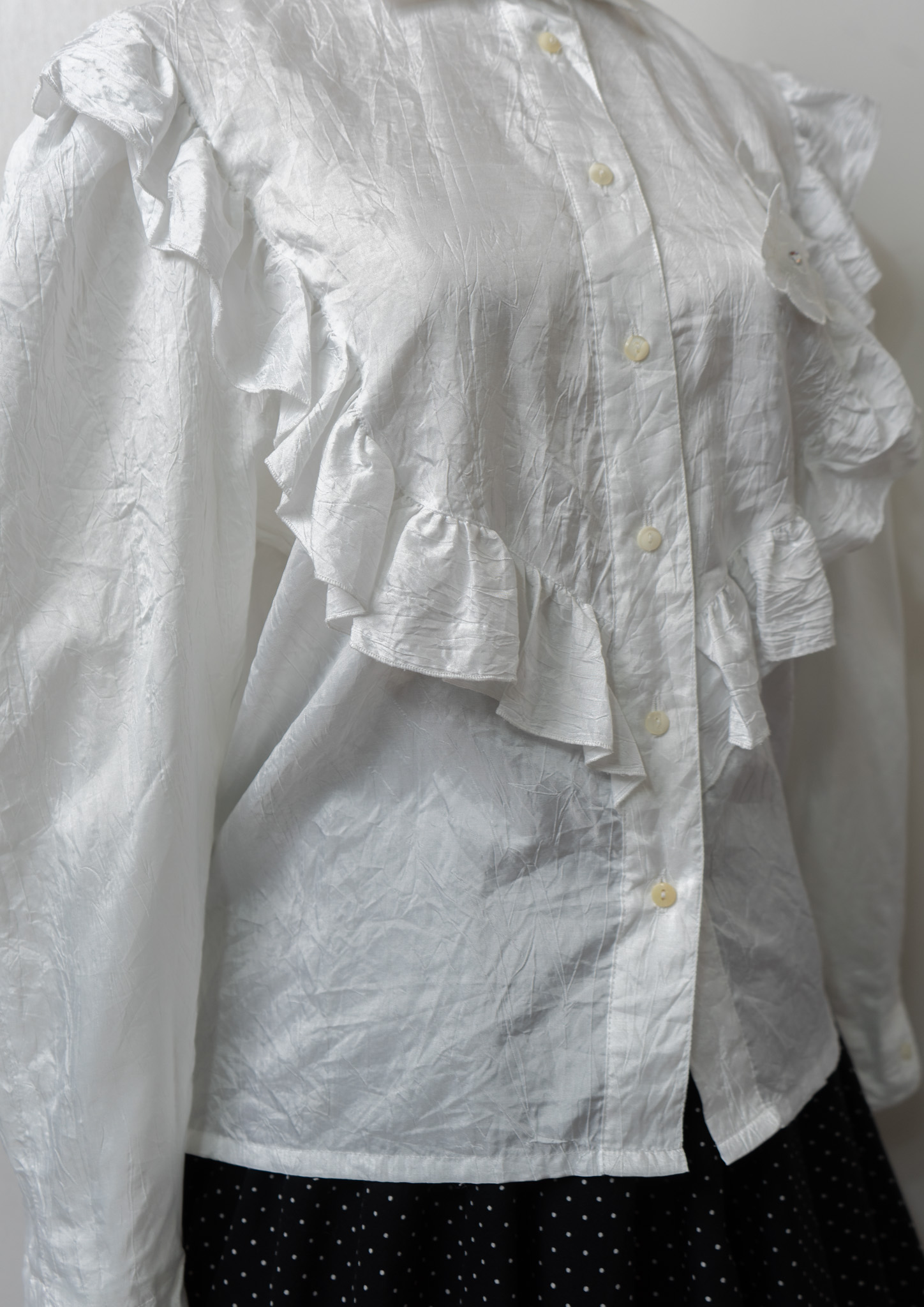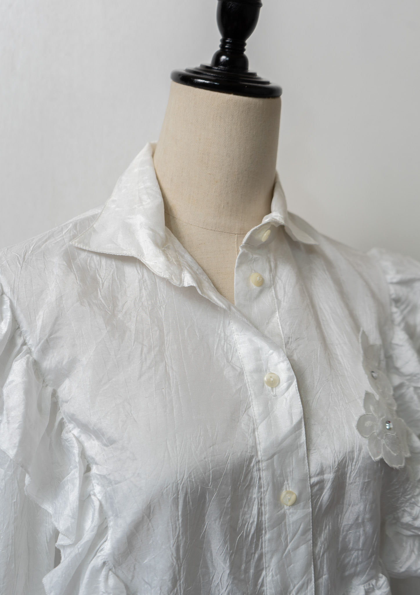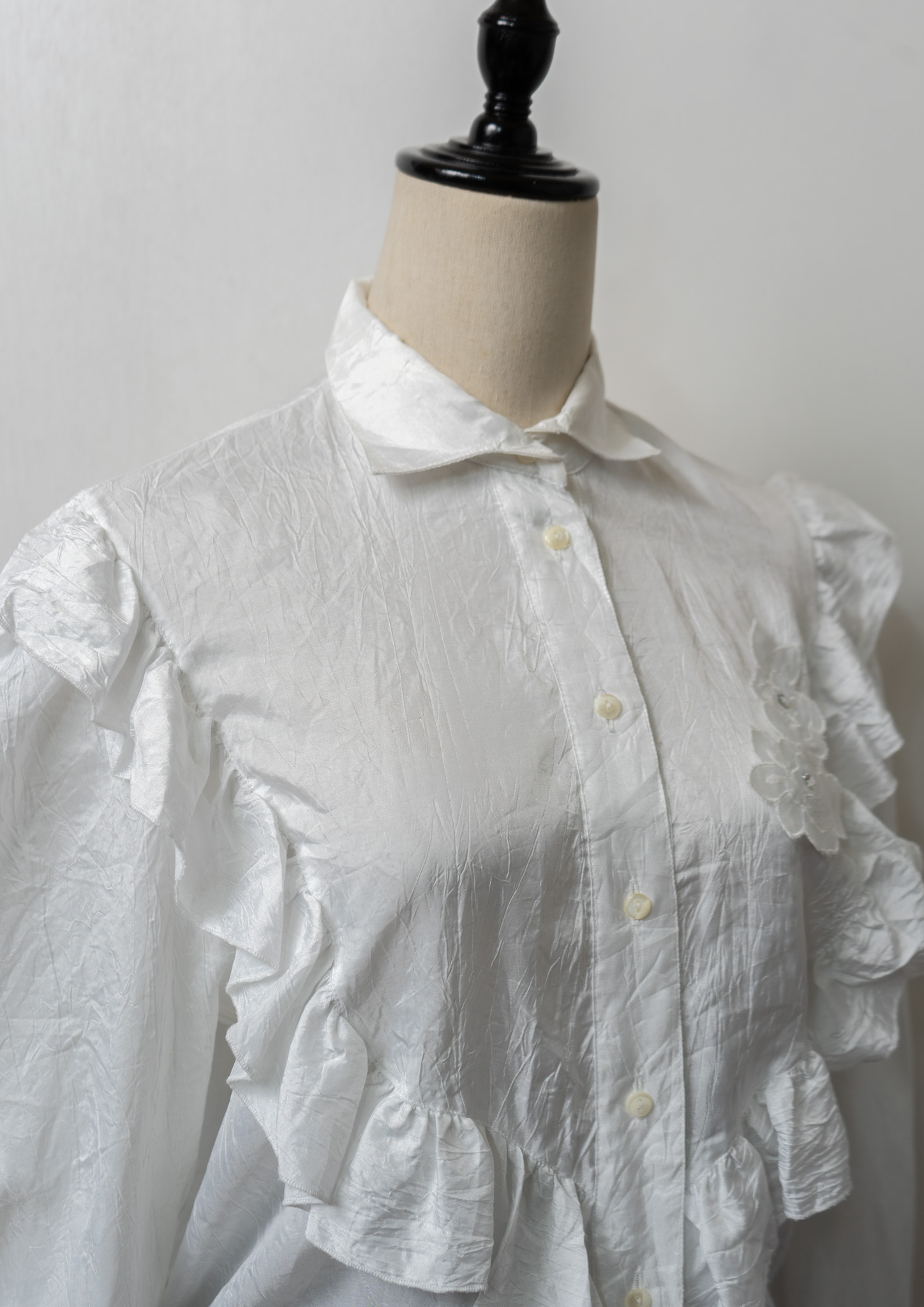 80~90's Yessica Frill × Flower Decoration Design White Blouse