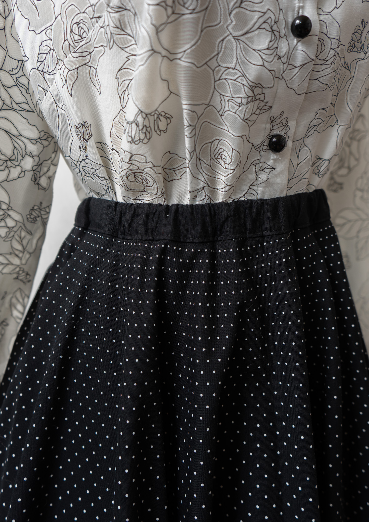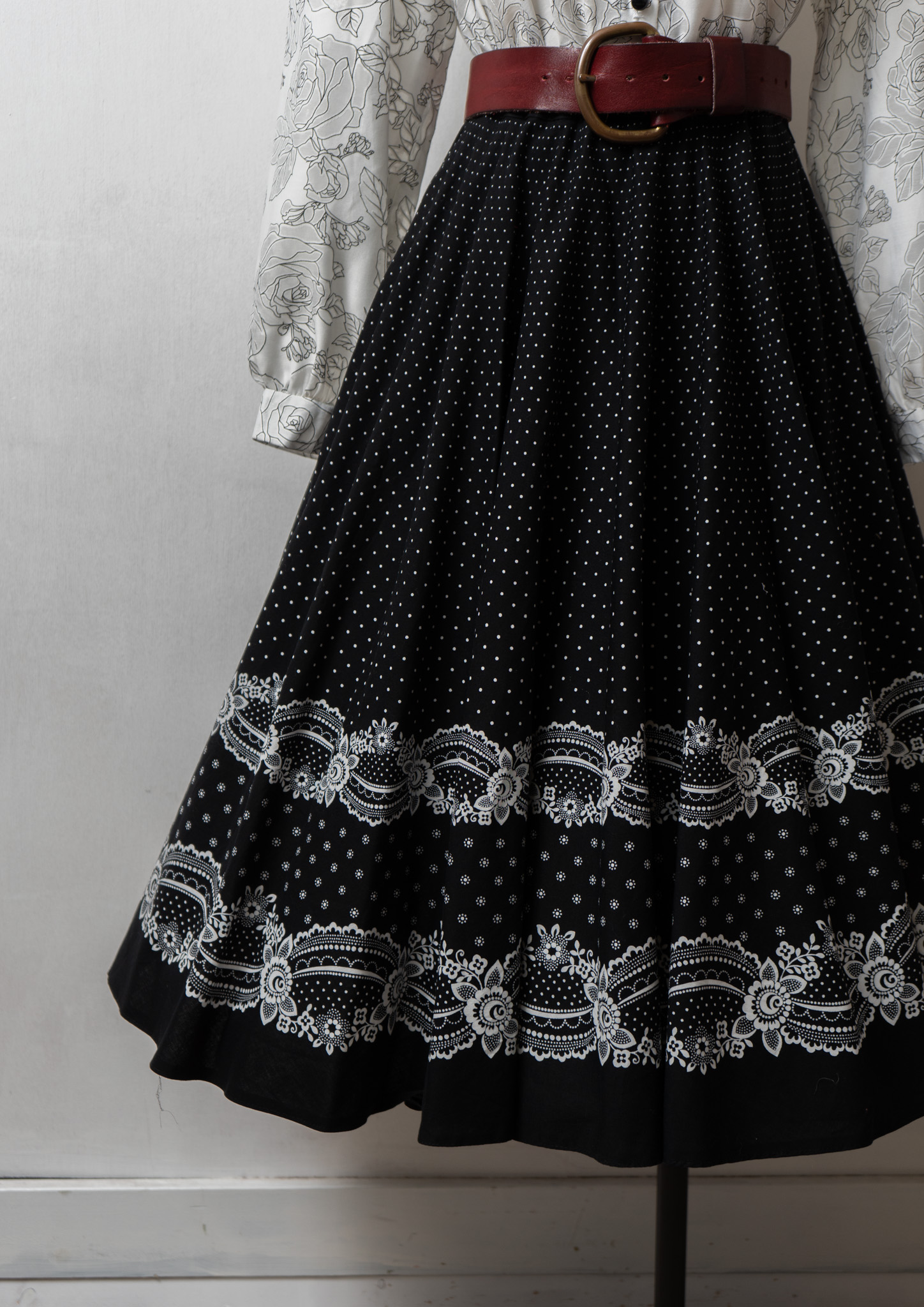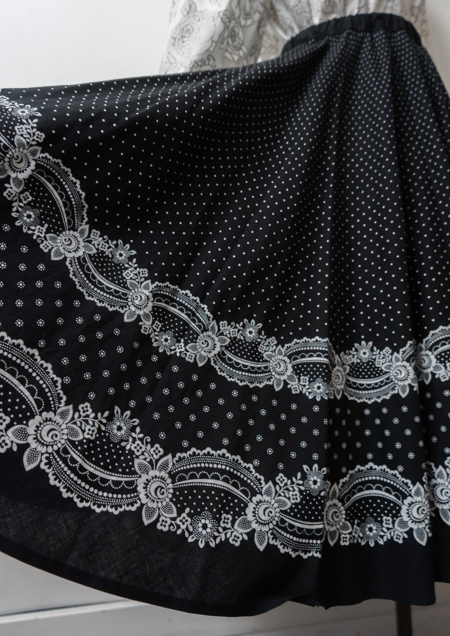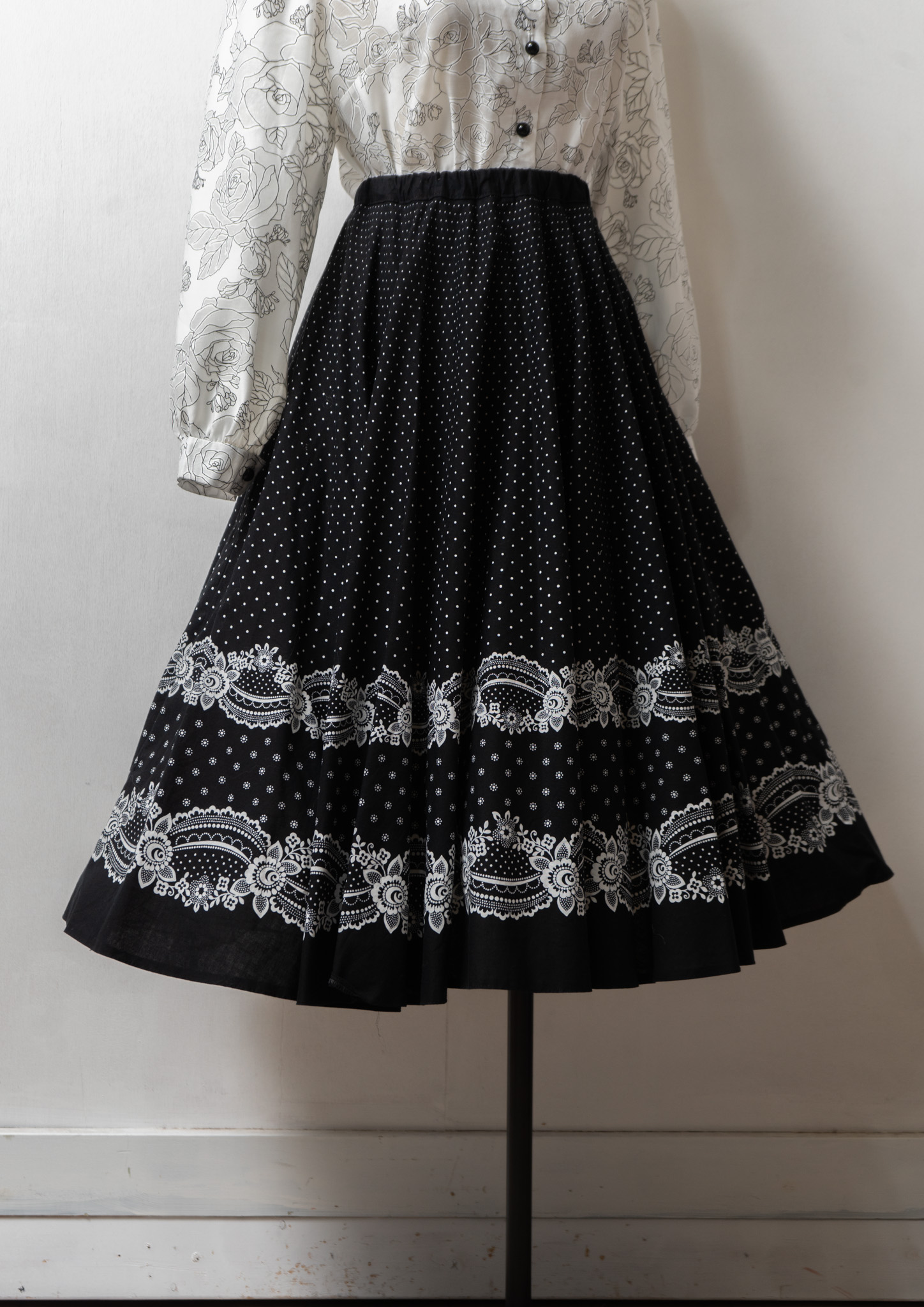 80~90's Dot × Flower Pattern Black Tyrol Skirt