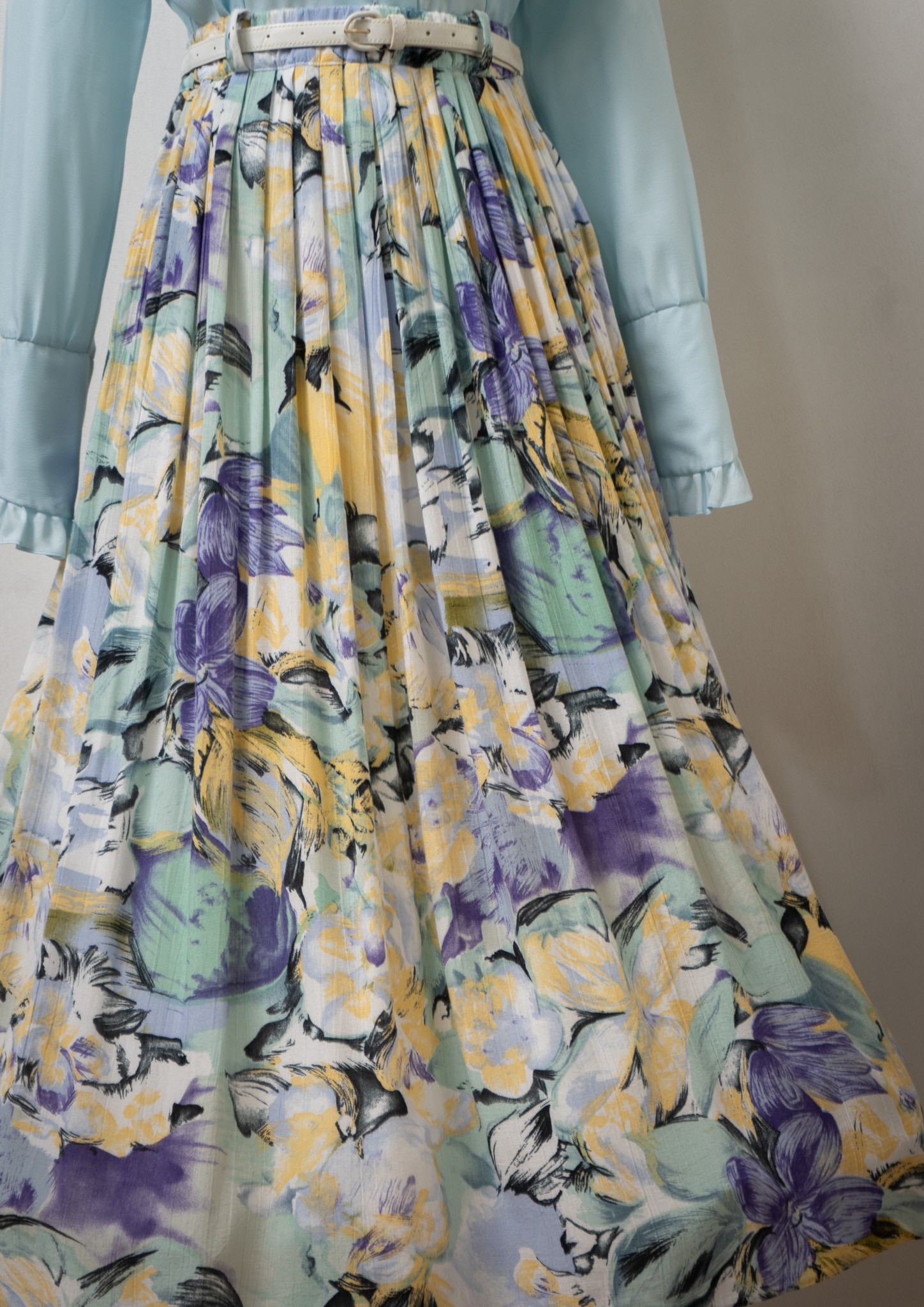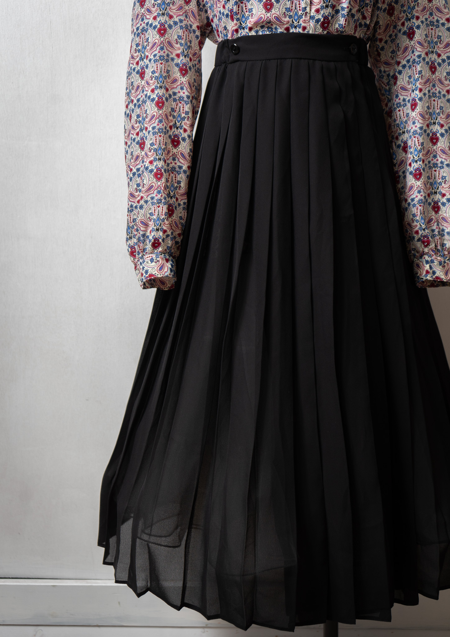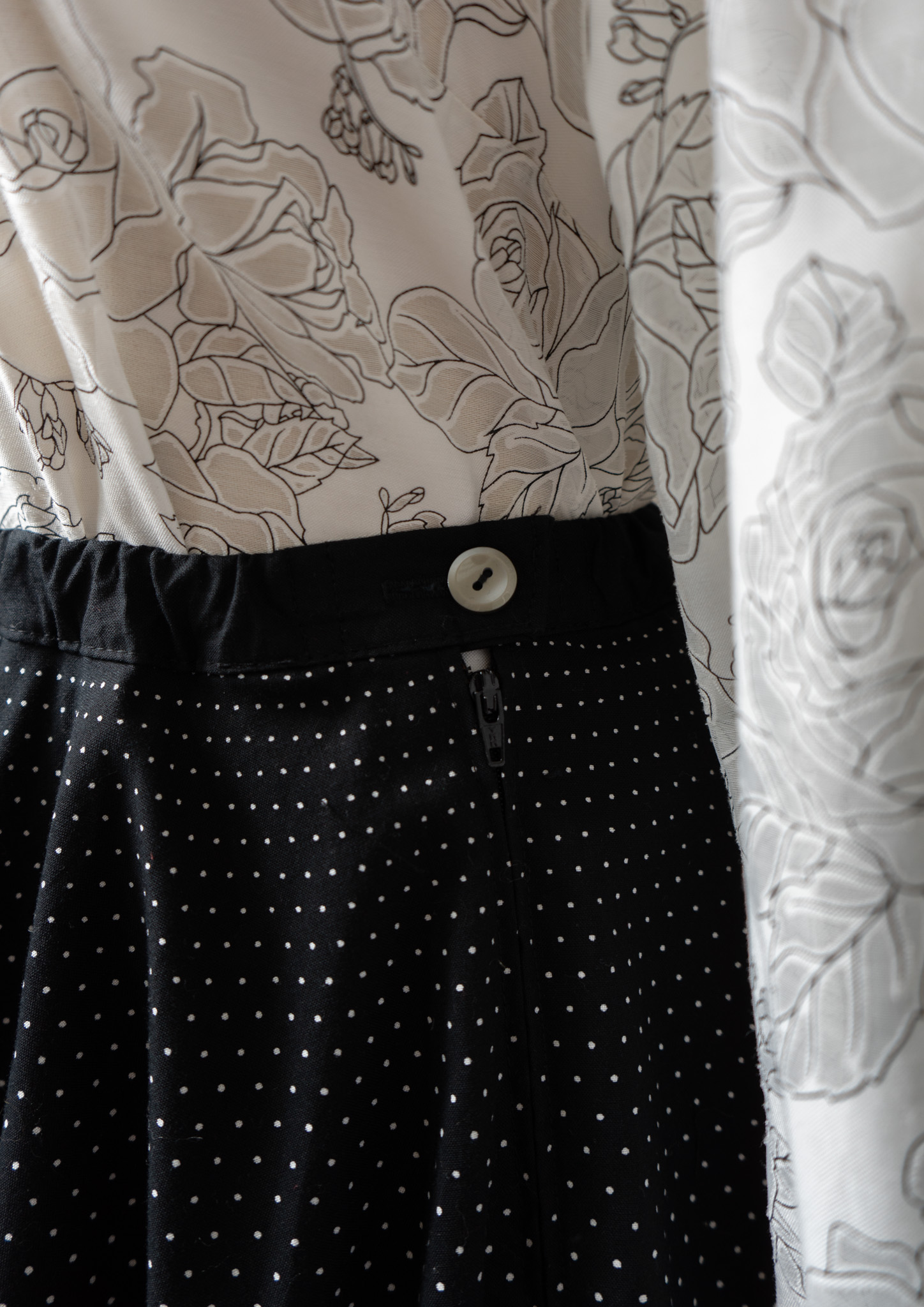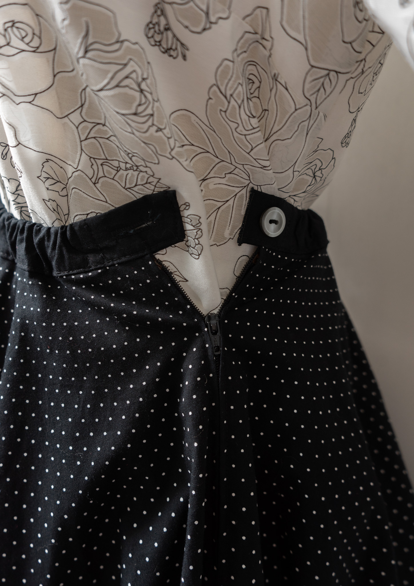 80~90's Dot × Flower Pattern Black Tyrol Skirt