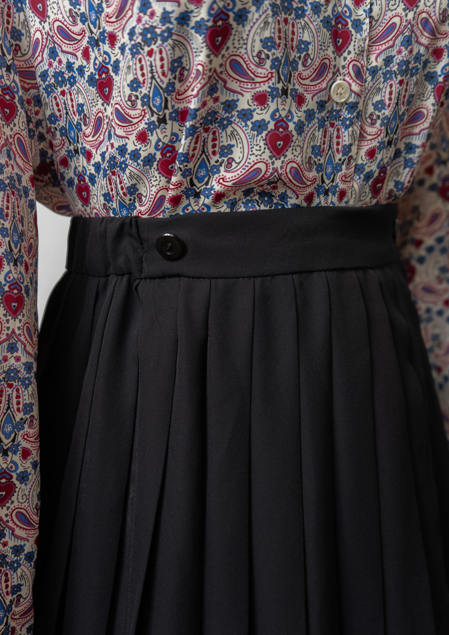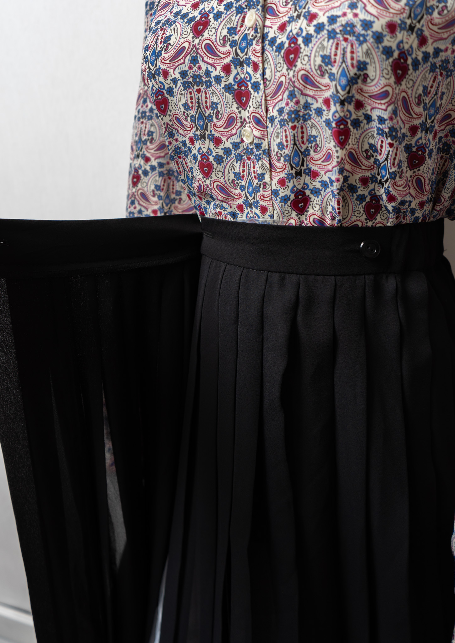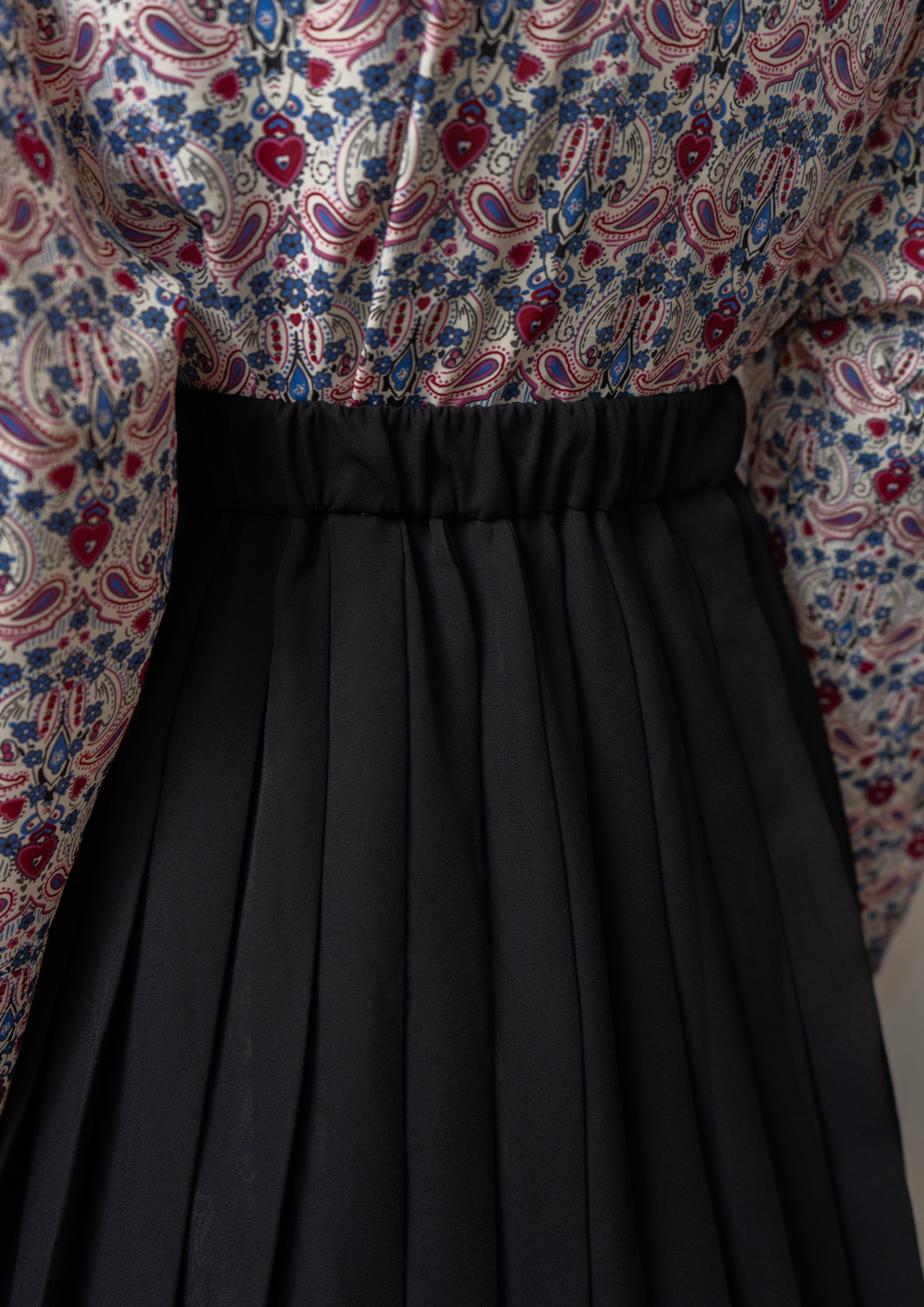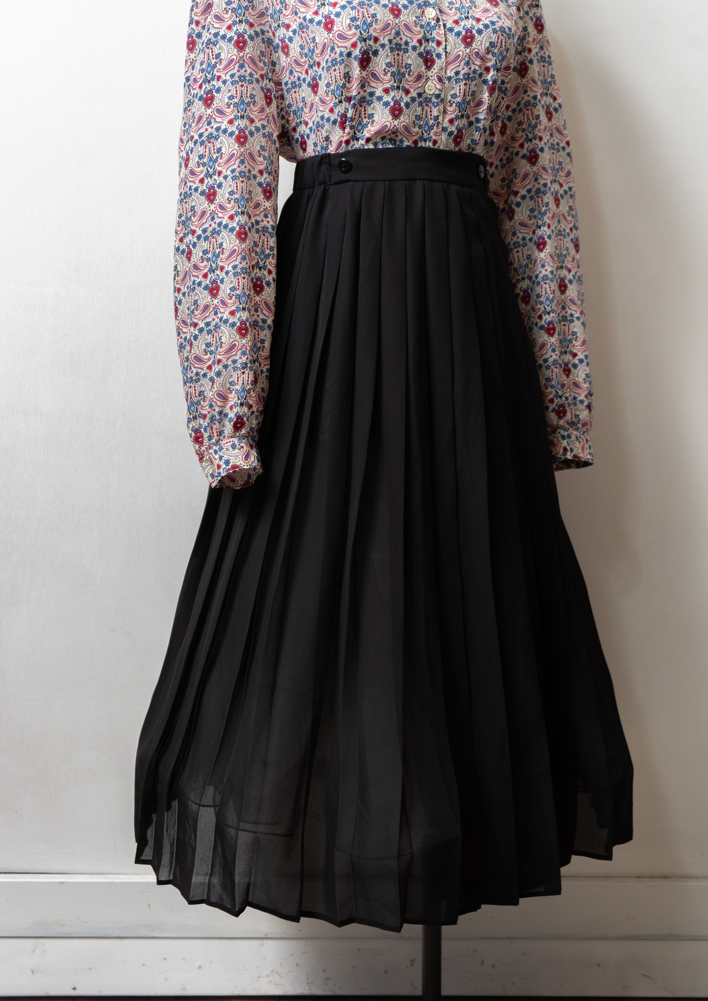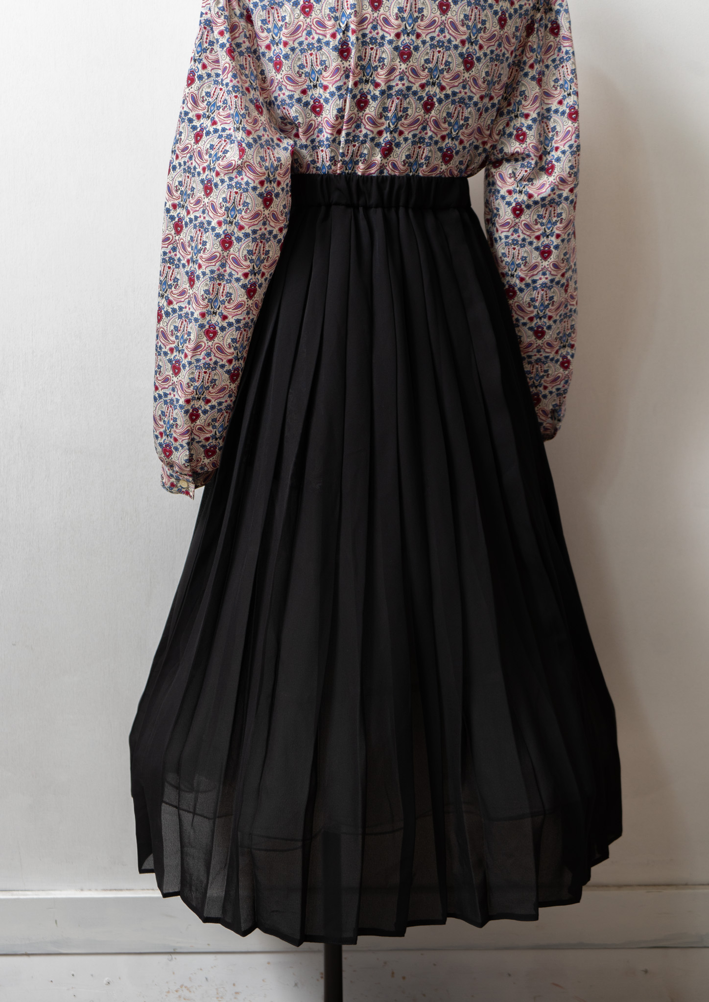 80's Small Flower × Dot Pattern Black Skirt
