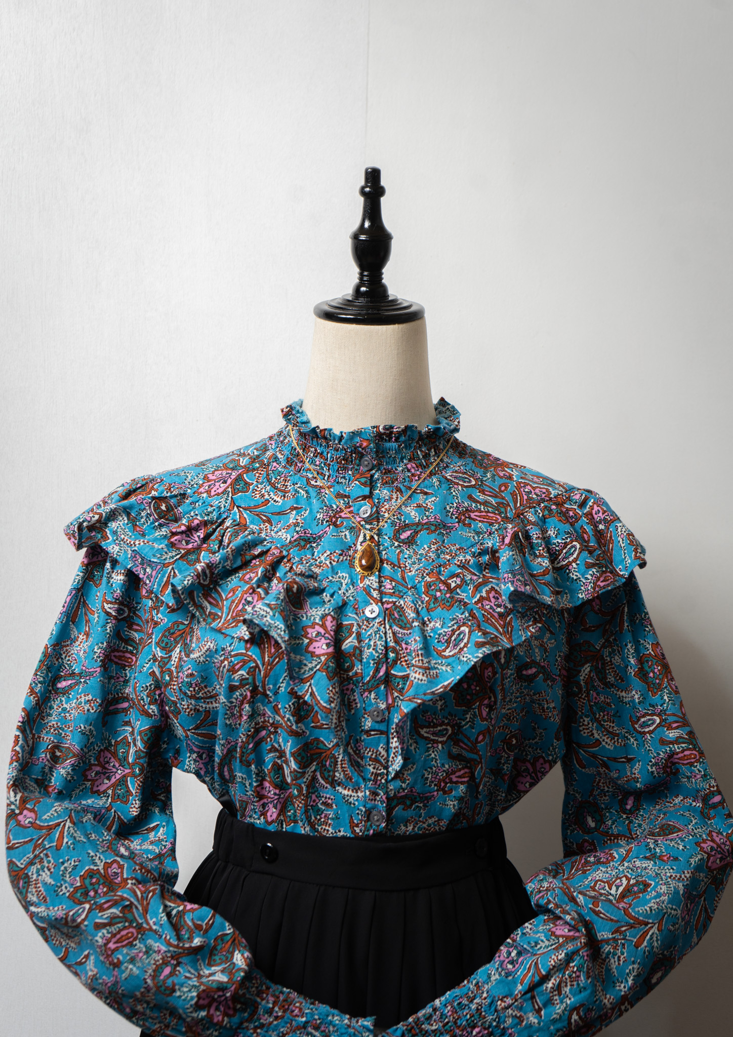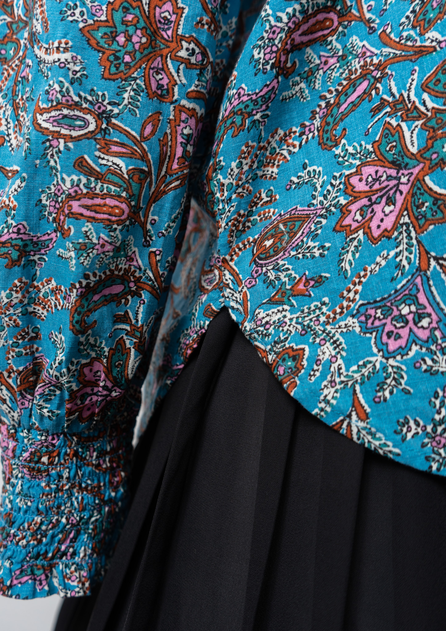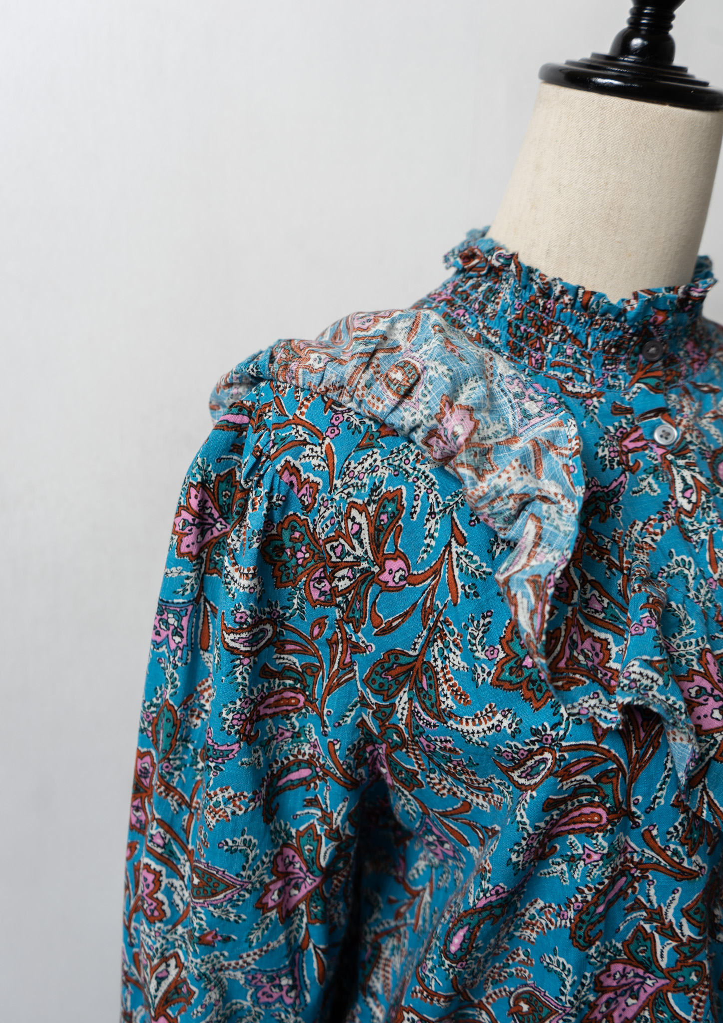 Frill × Point Shirring Design Paisley Pattern Blouse