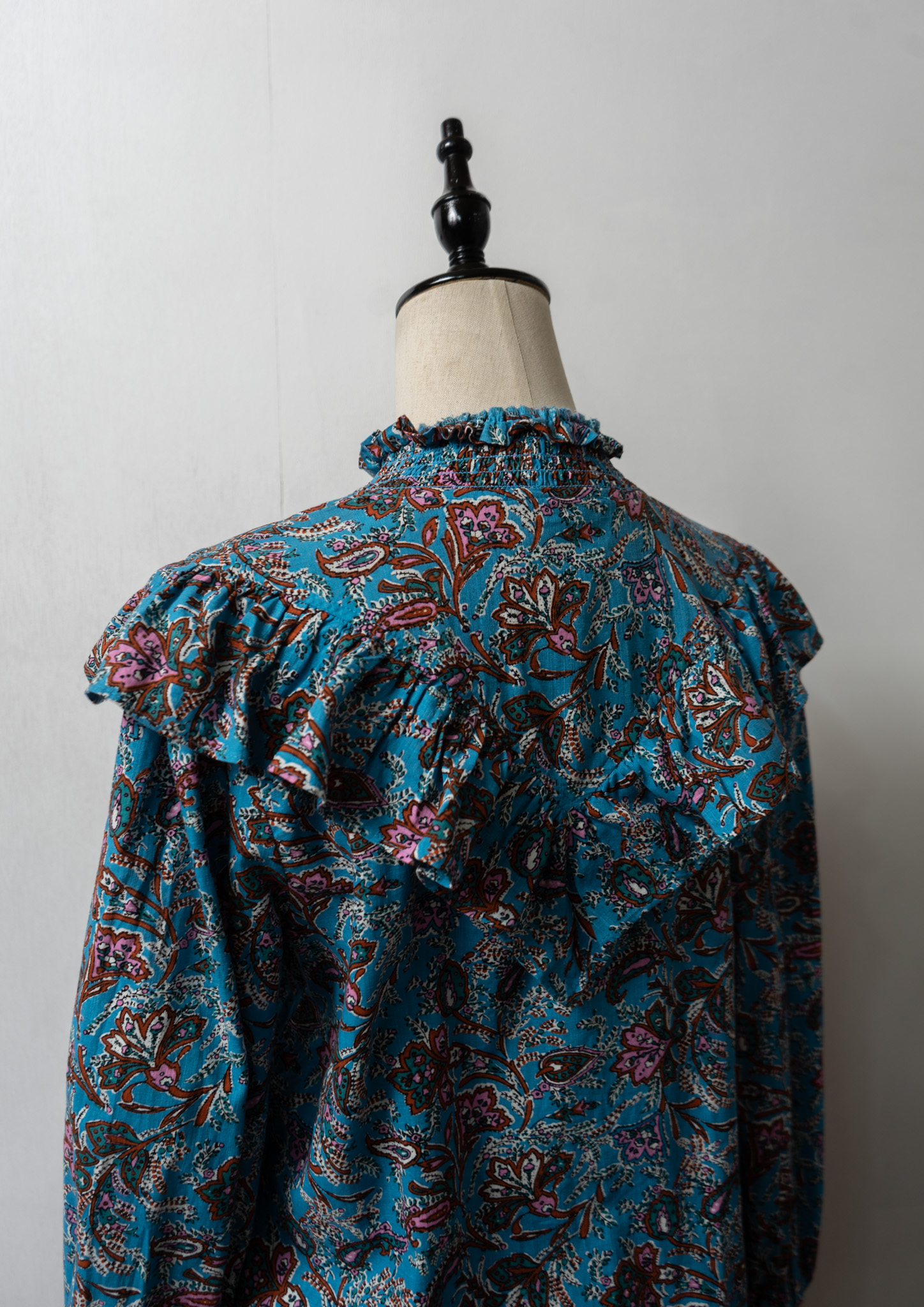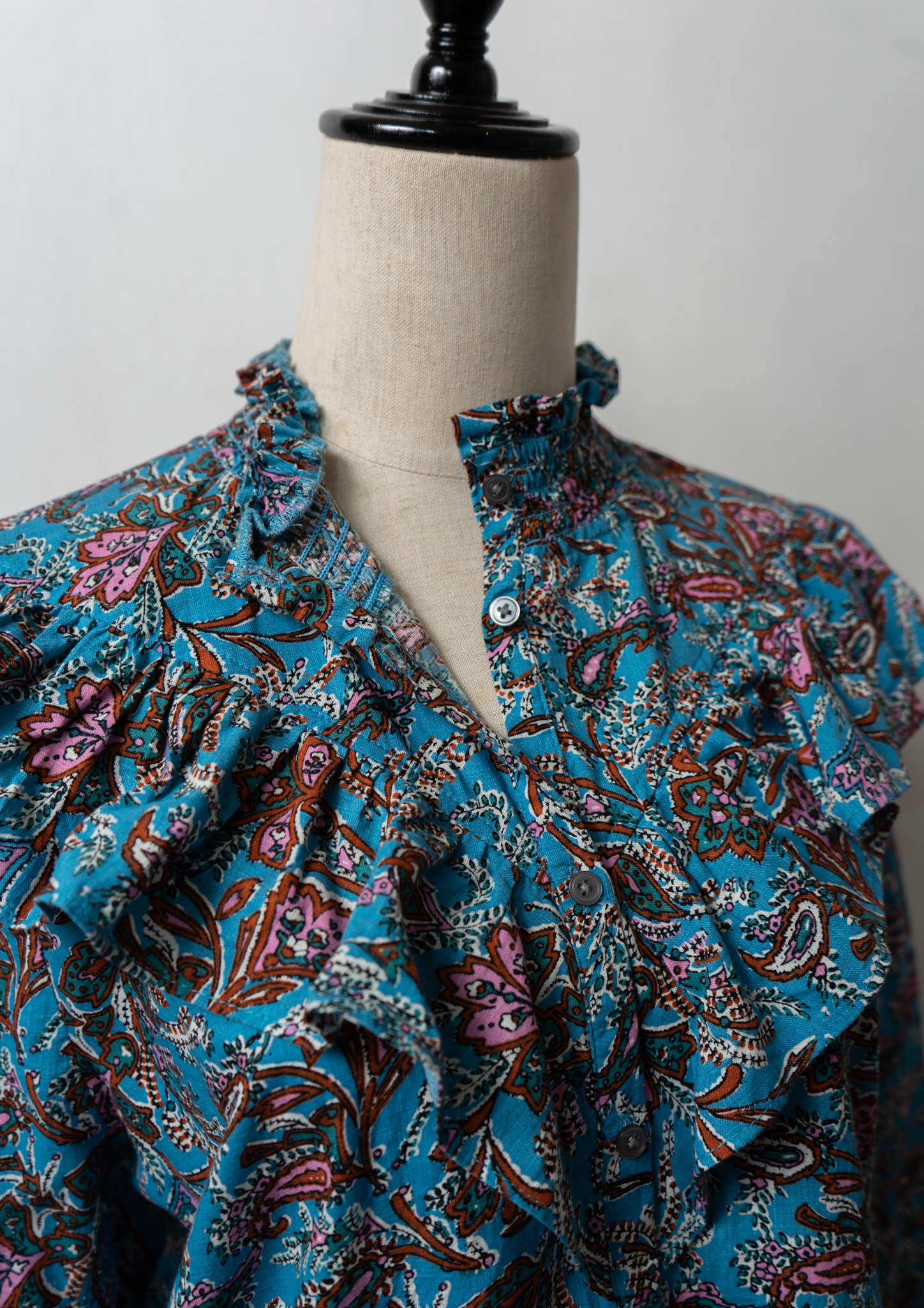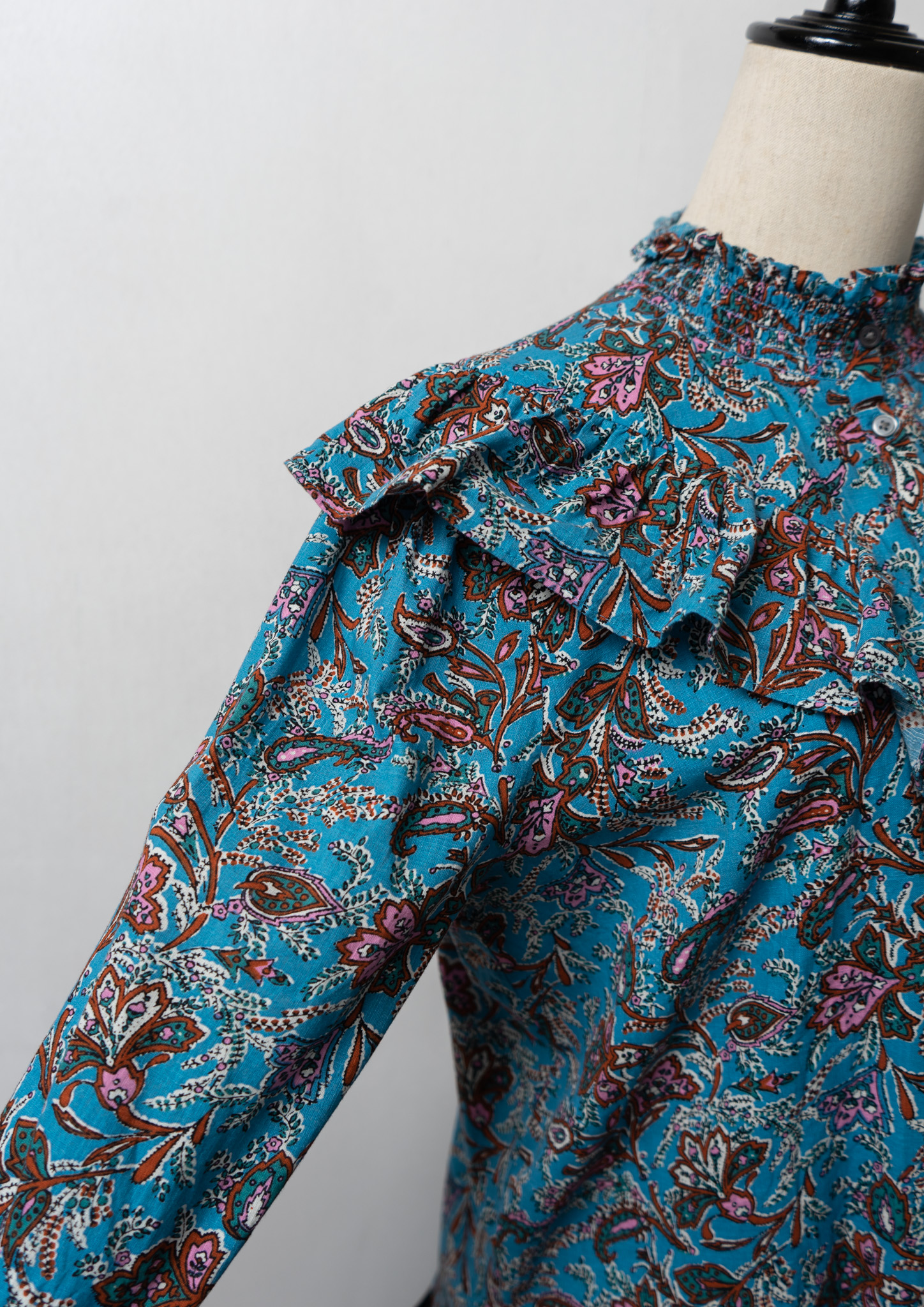 Frill × Point Shirring Design Paisley Pattern Blouse