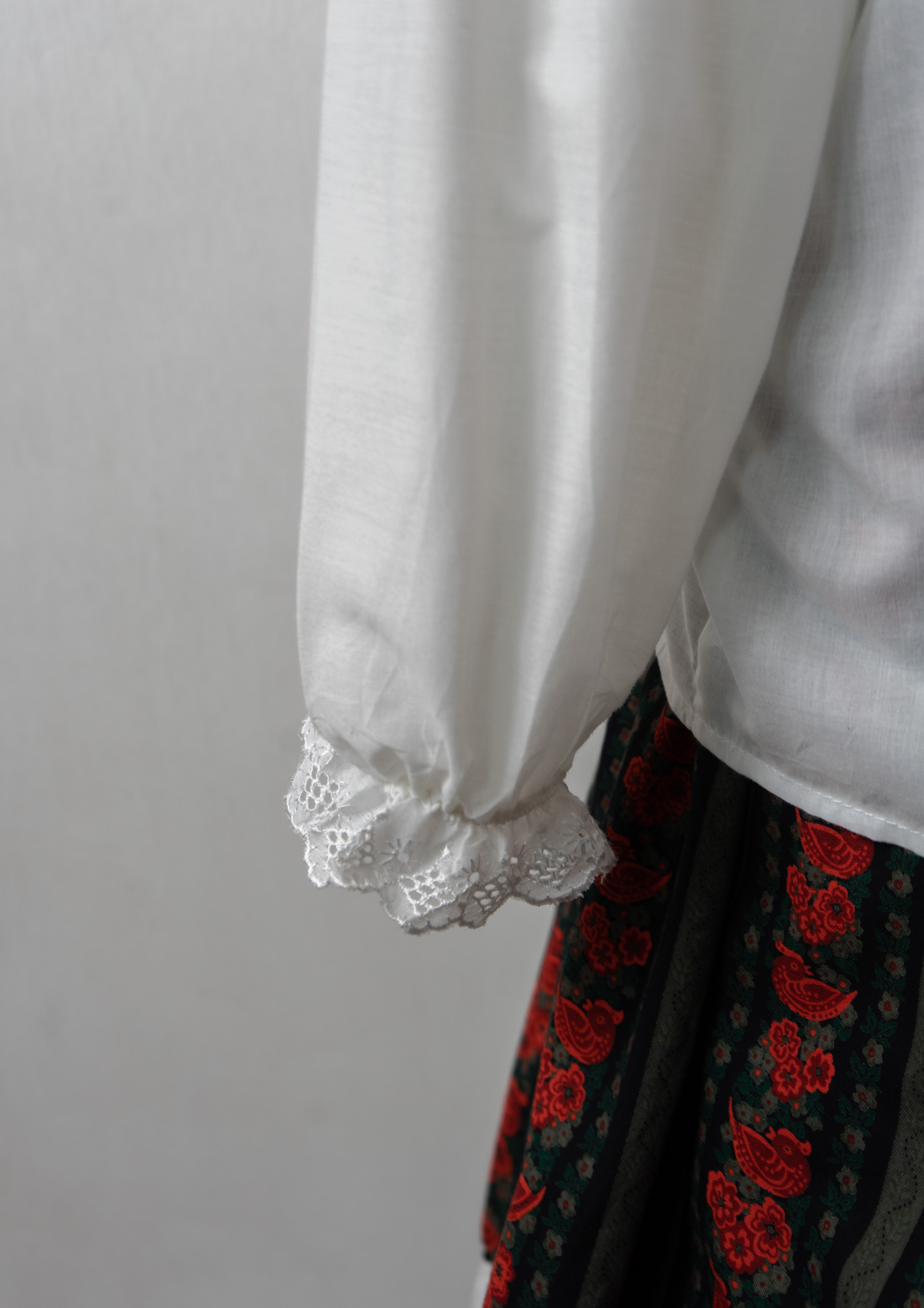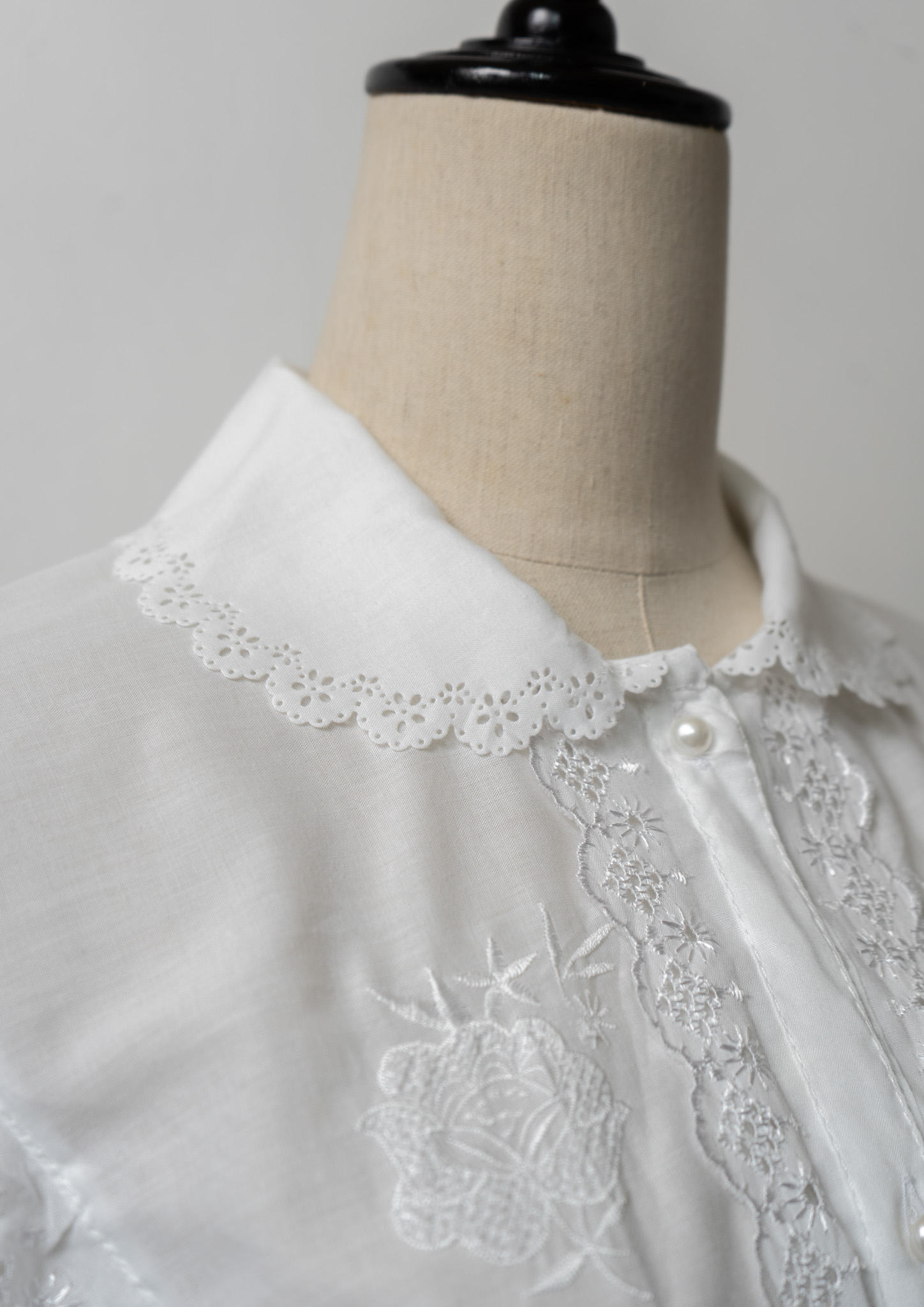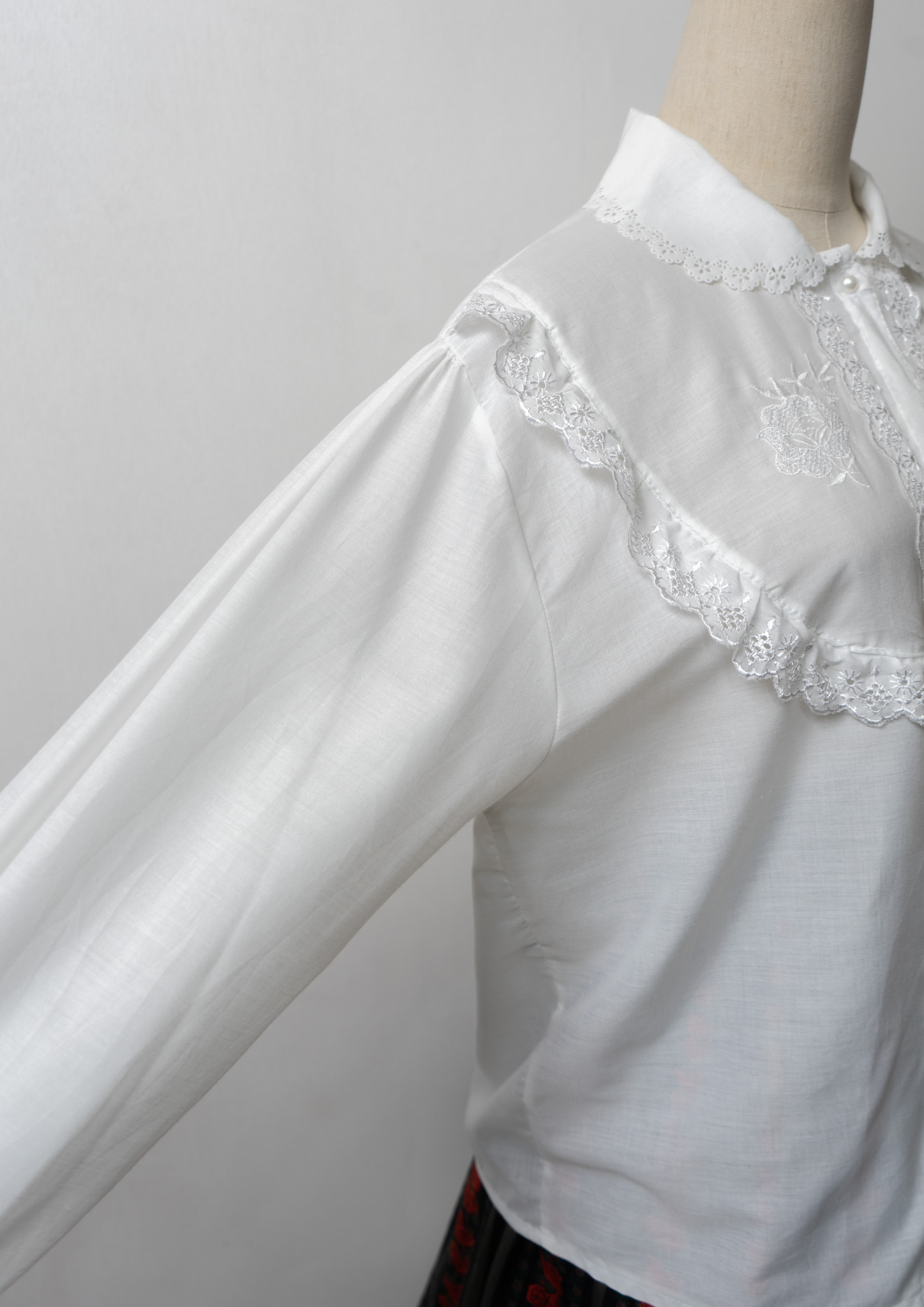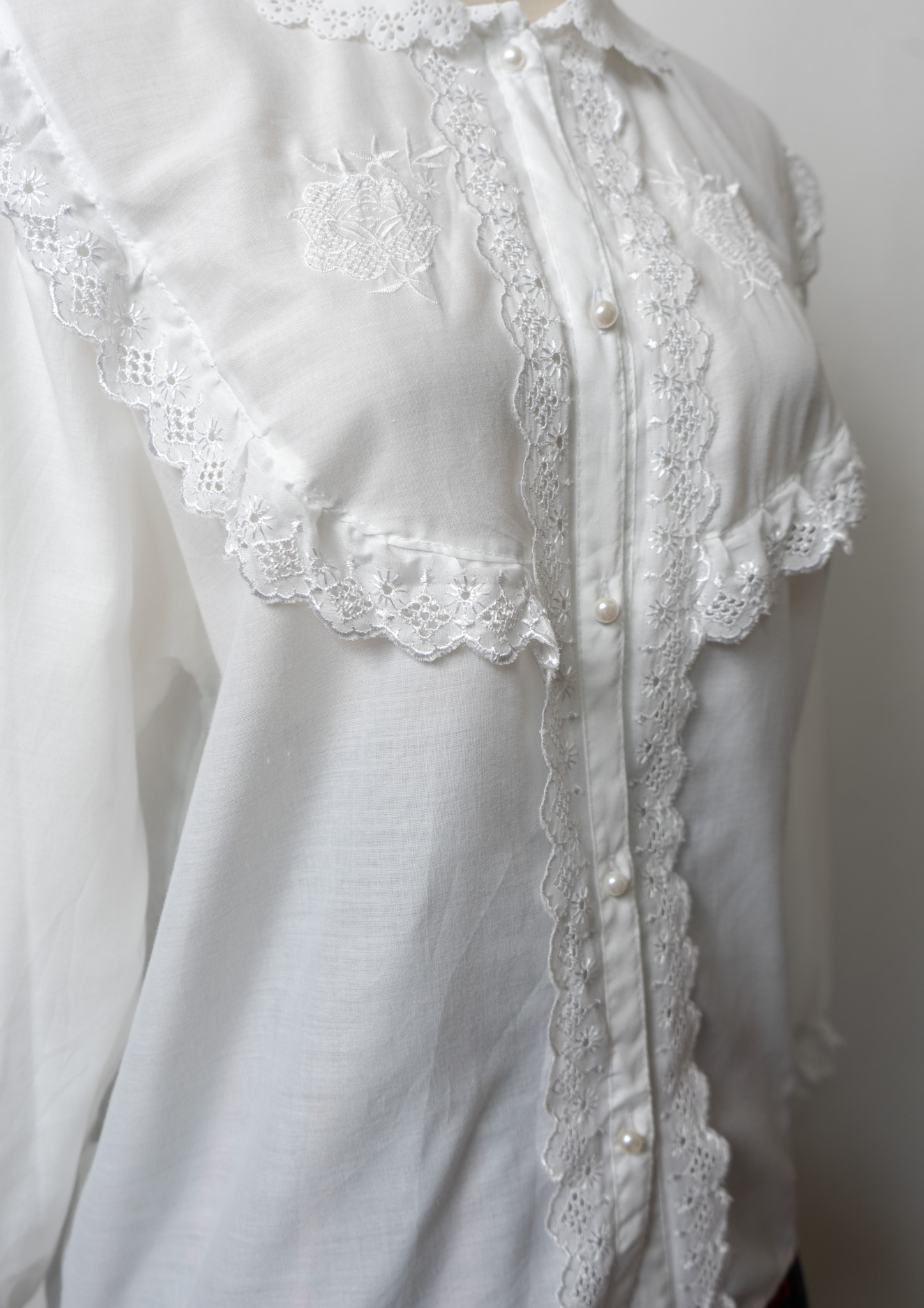 Lace Design Flower Embroidery Pattern White Blouse