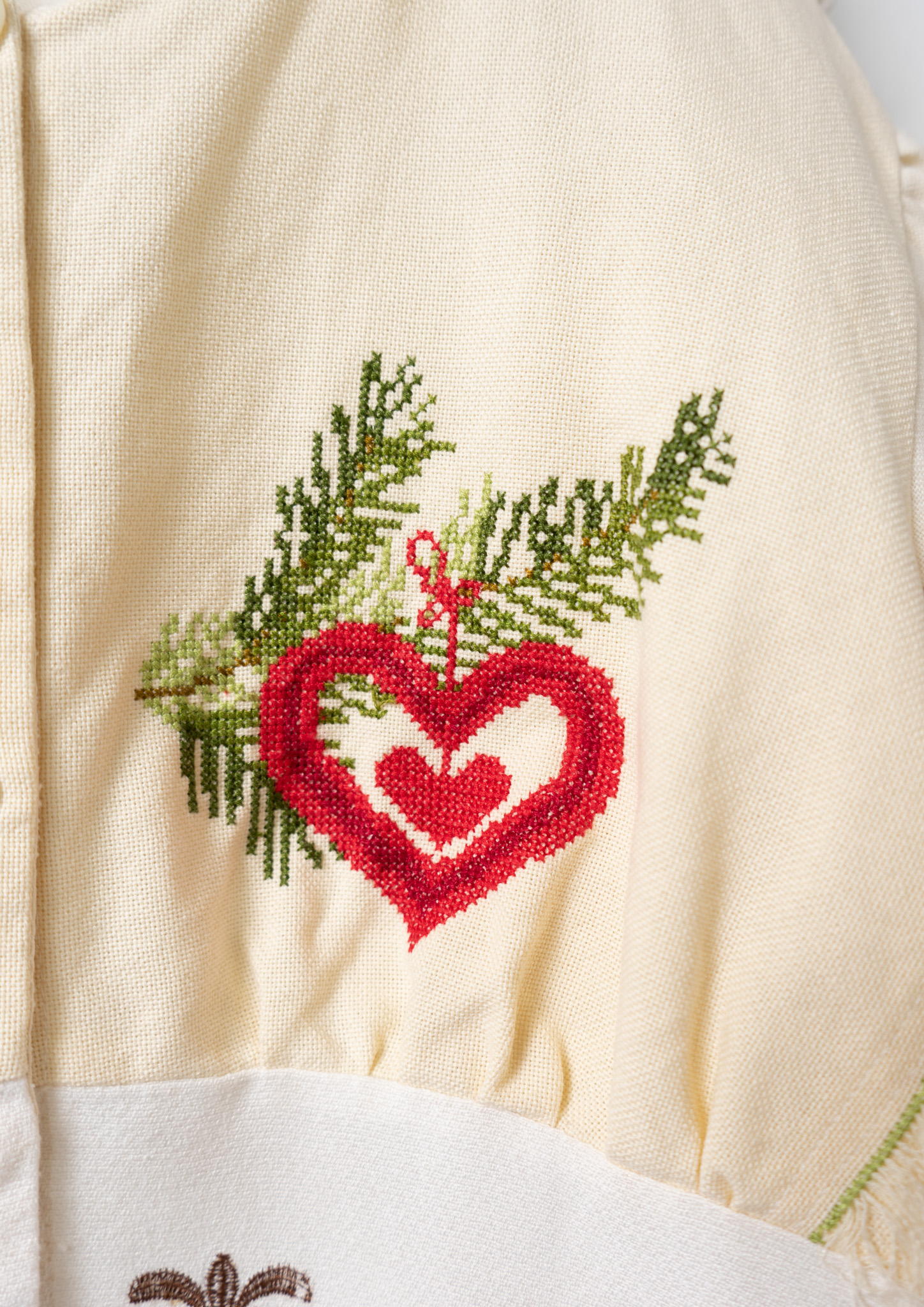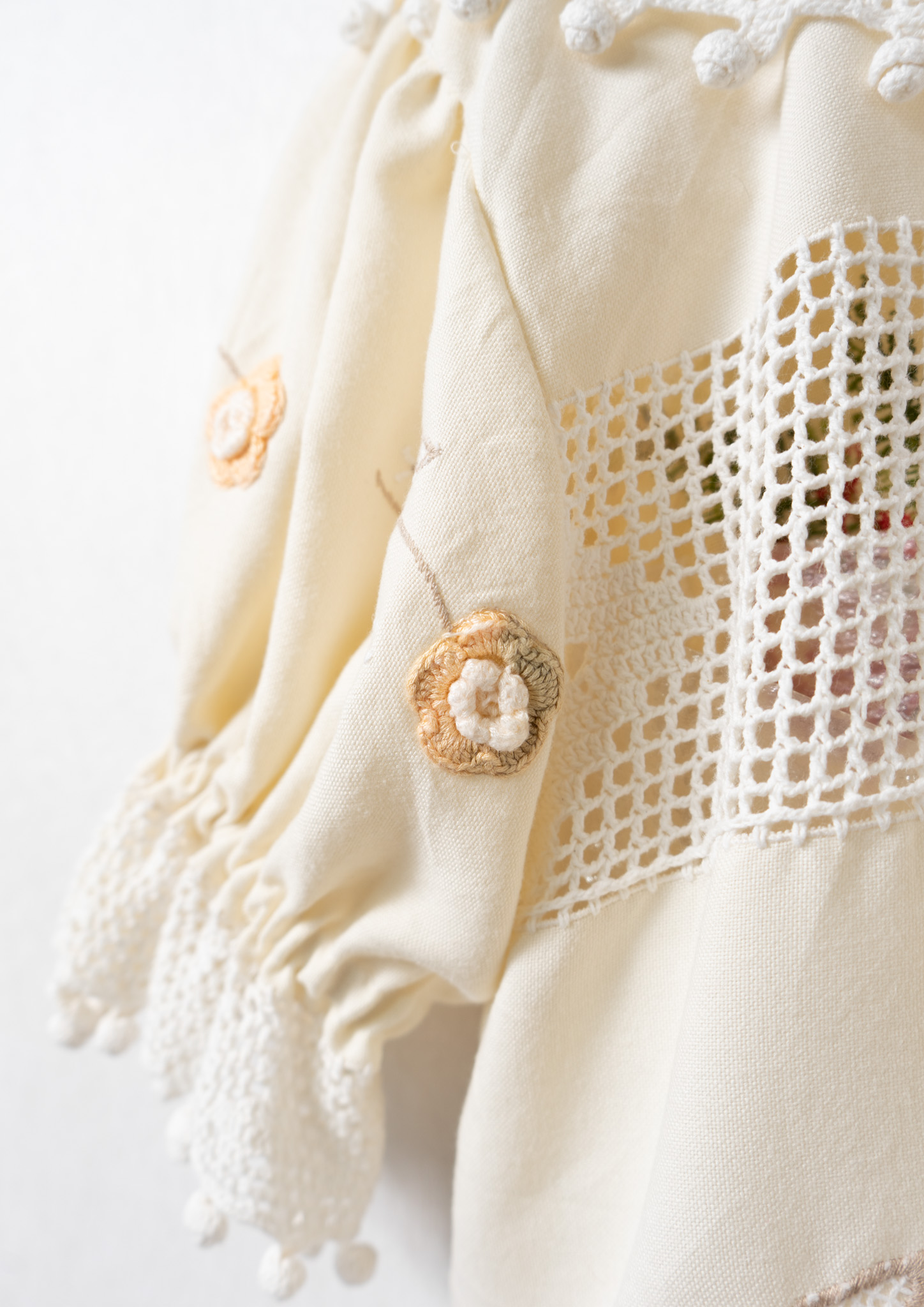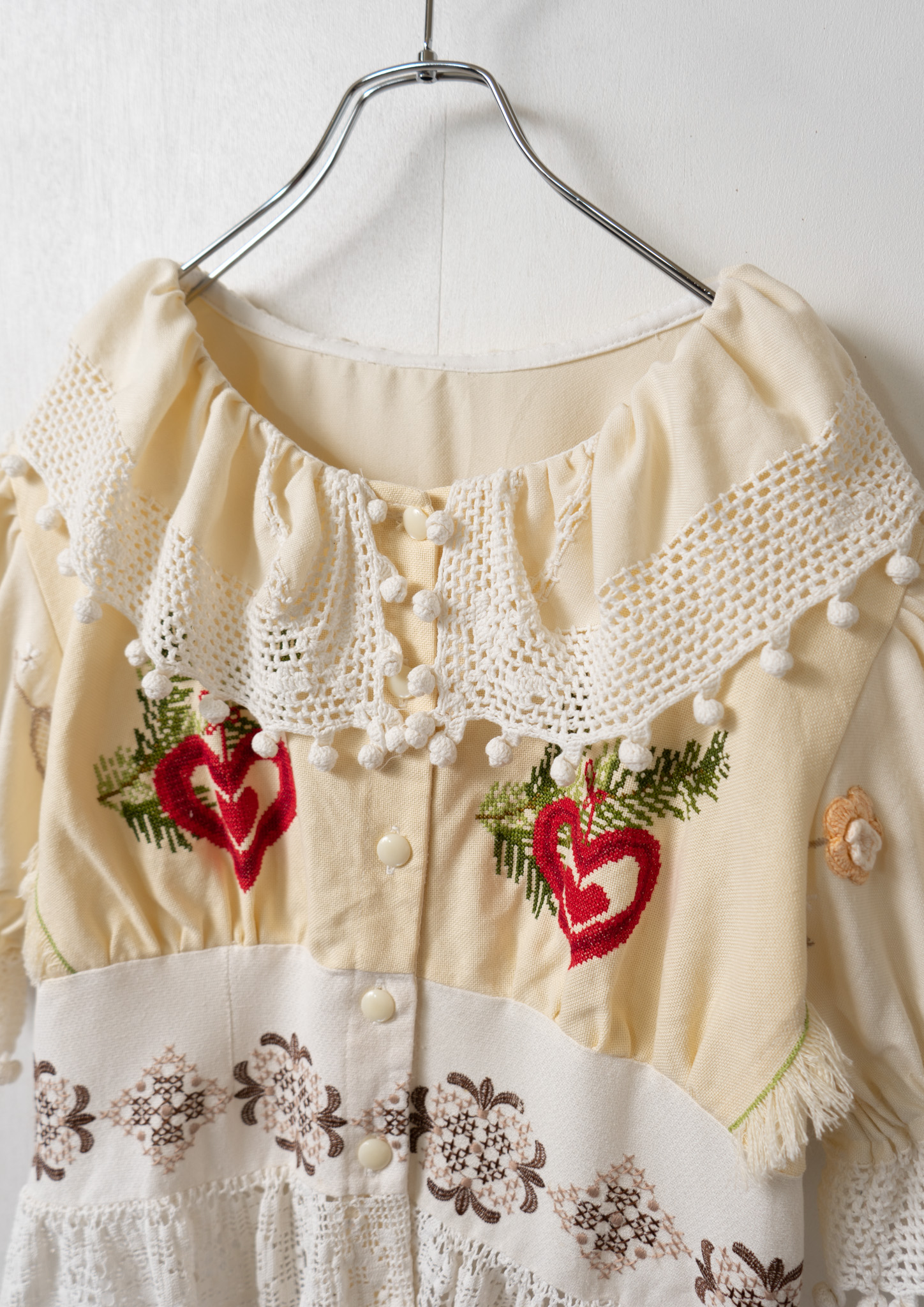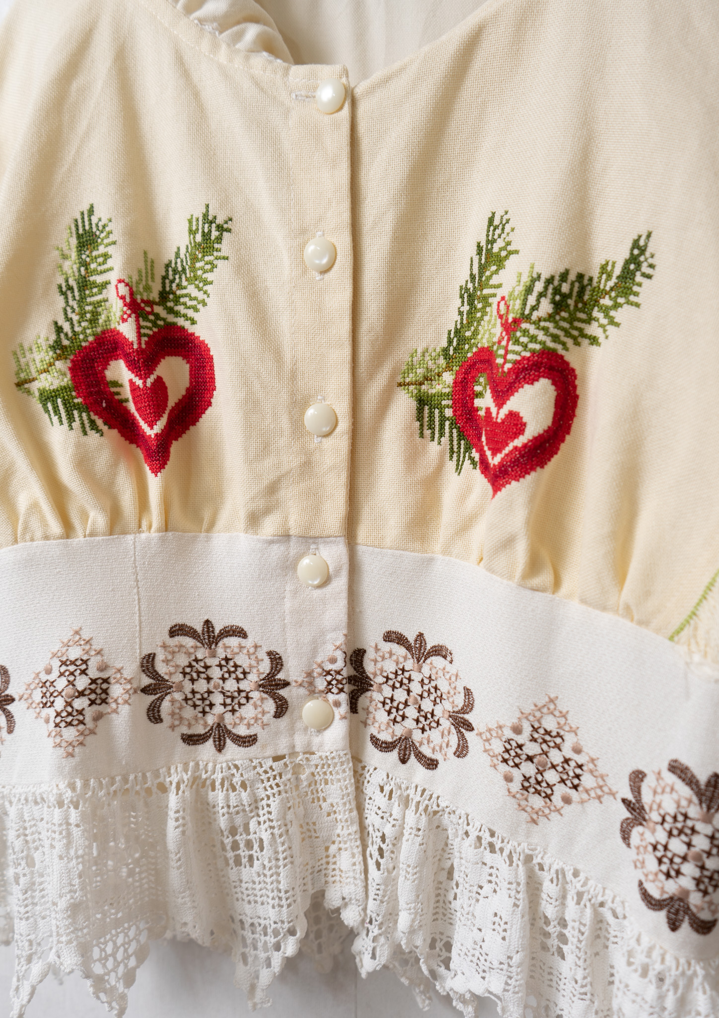 Upcycle Heart Embroidery Pom-pom Design Blouse