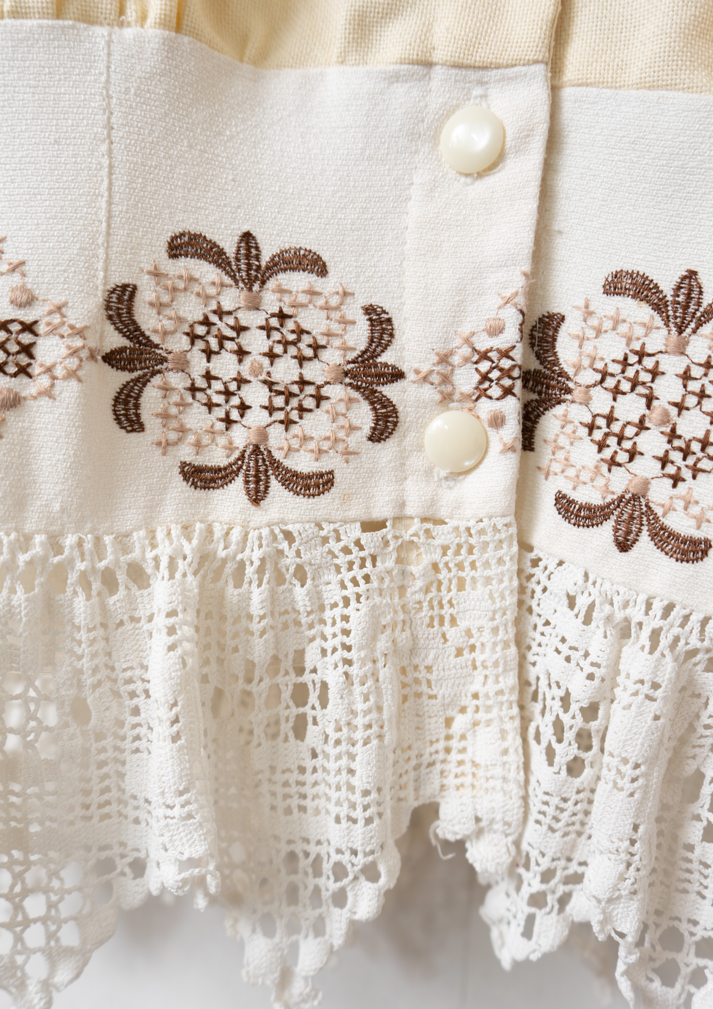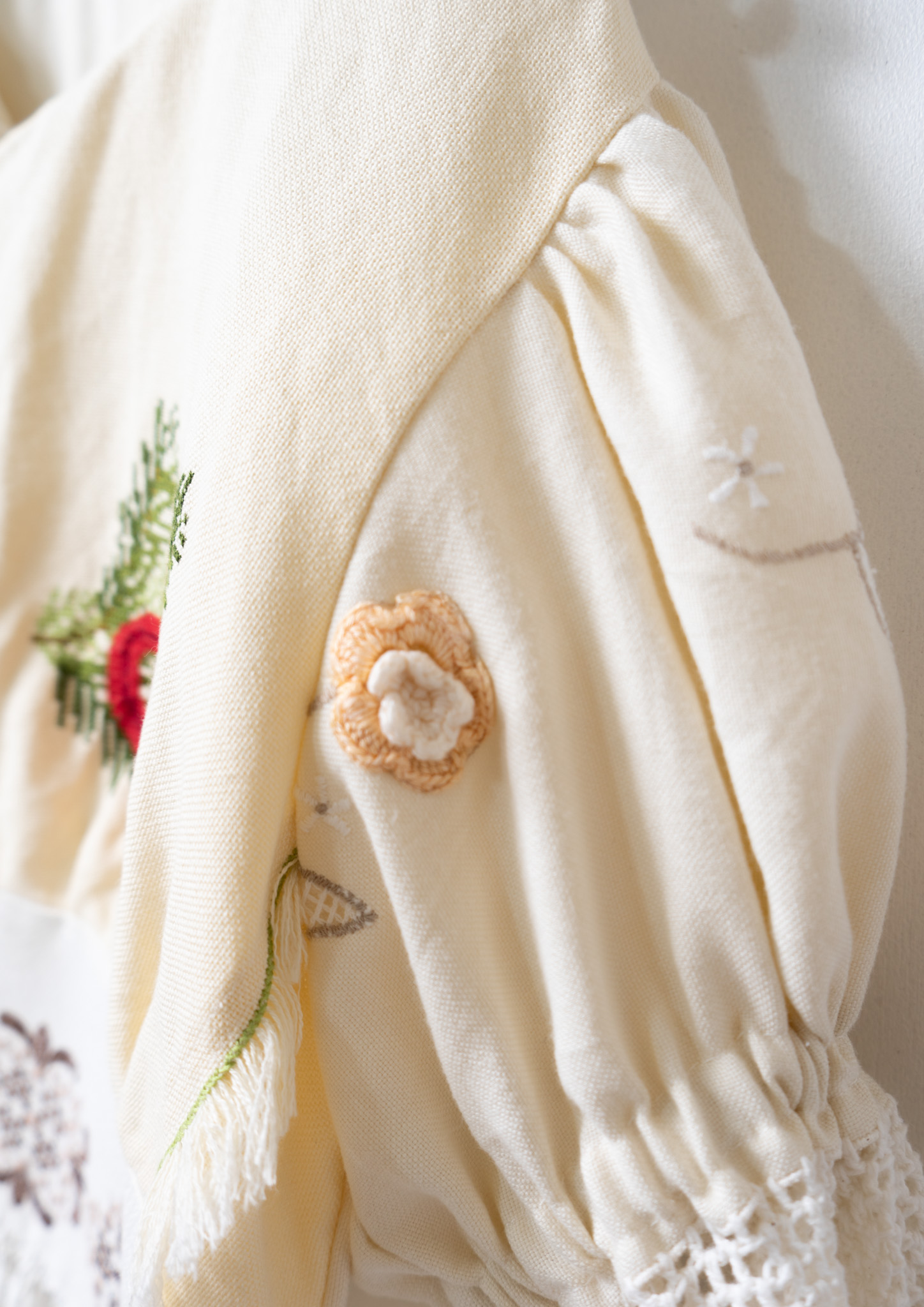 Upcycle Flower Embroidery × Pin Tuck Design Cropped Blouse