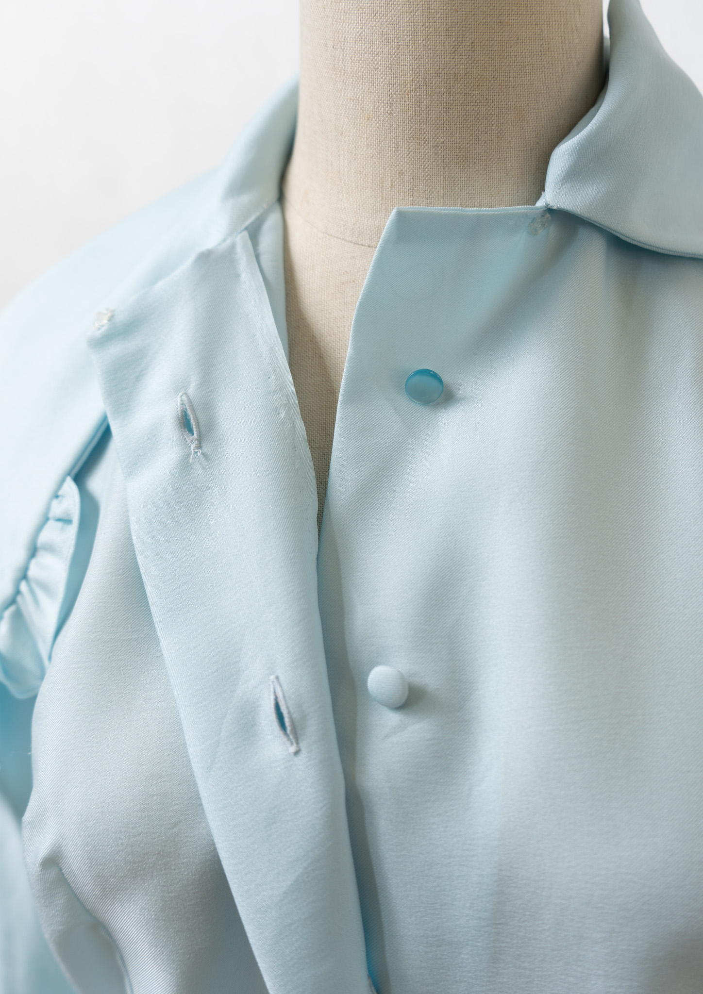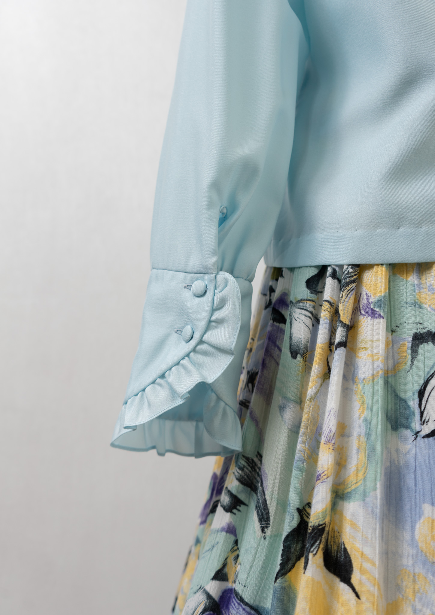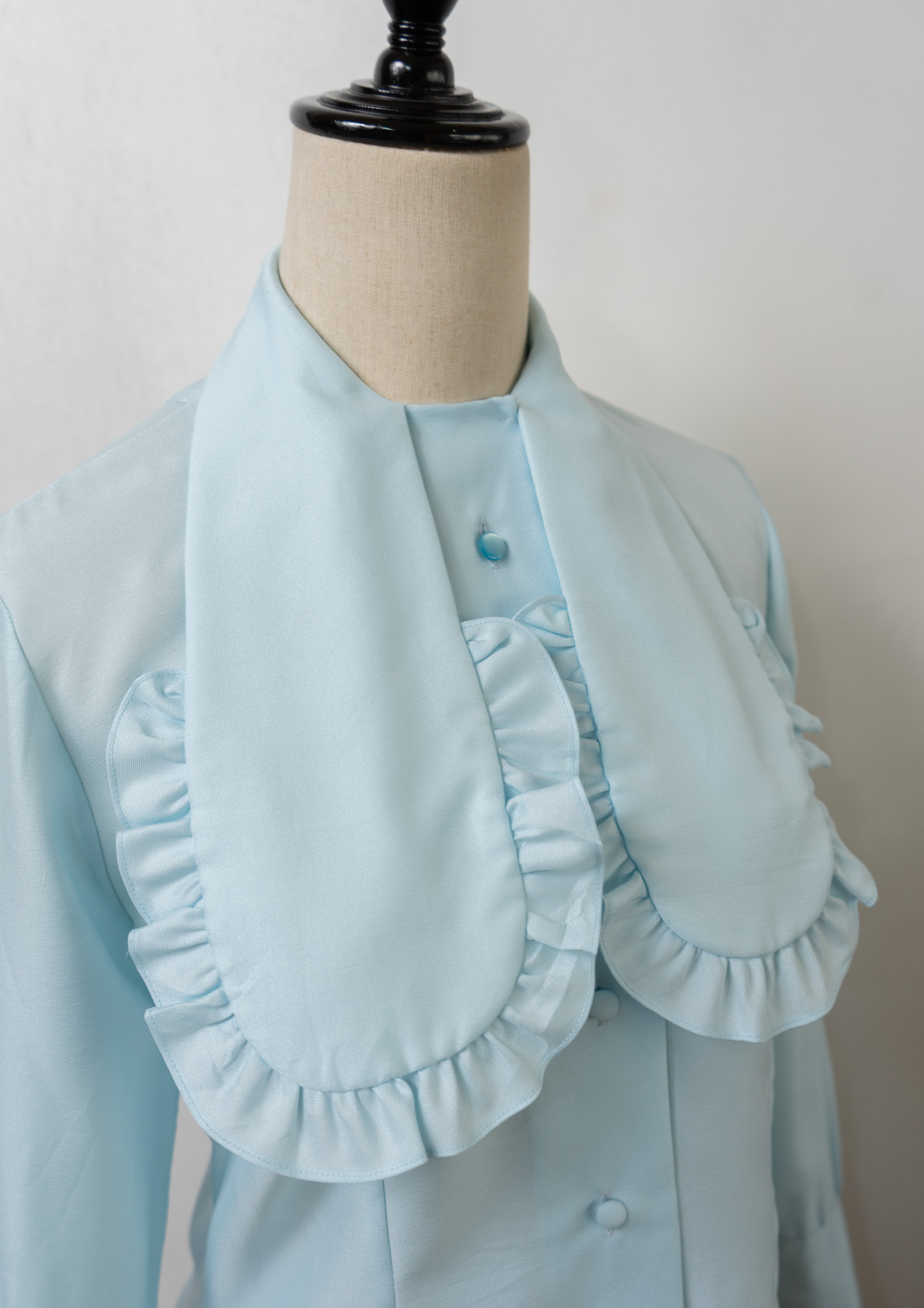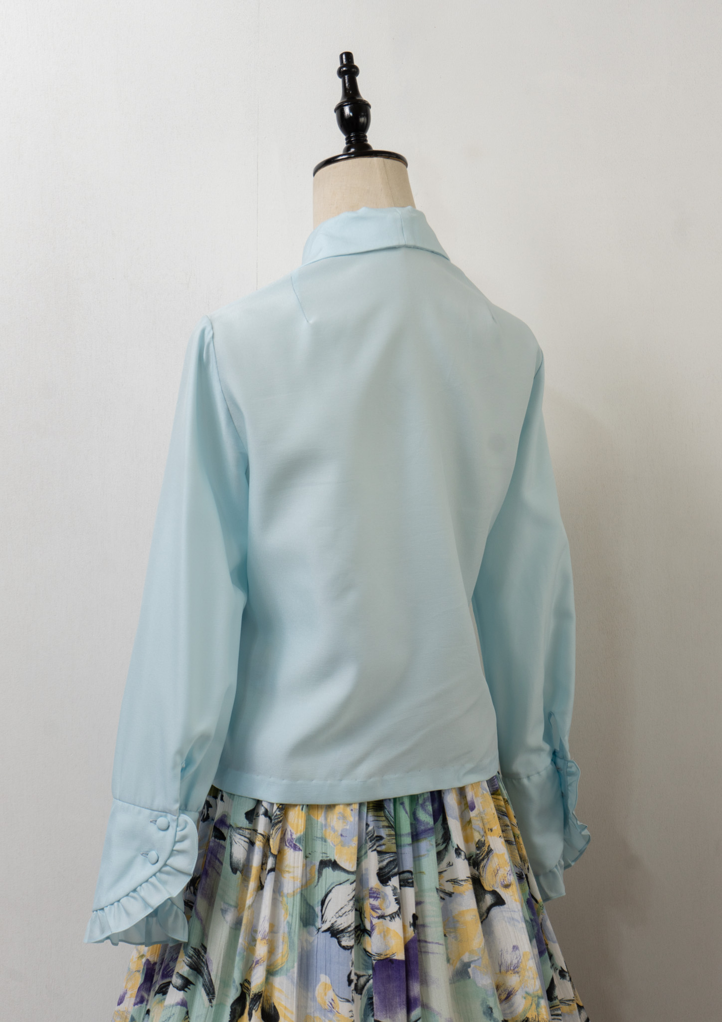 70's Frill Bow-tie Design Light Blue Blouse