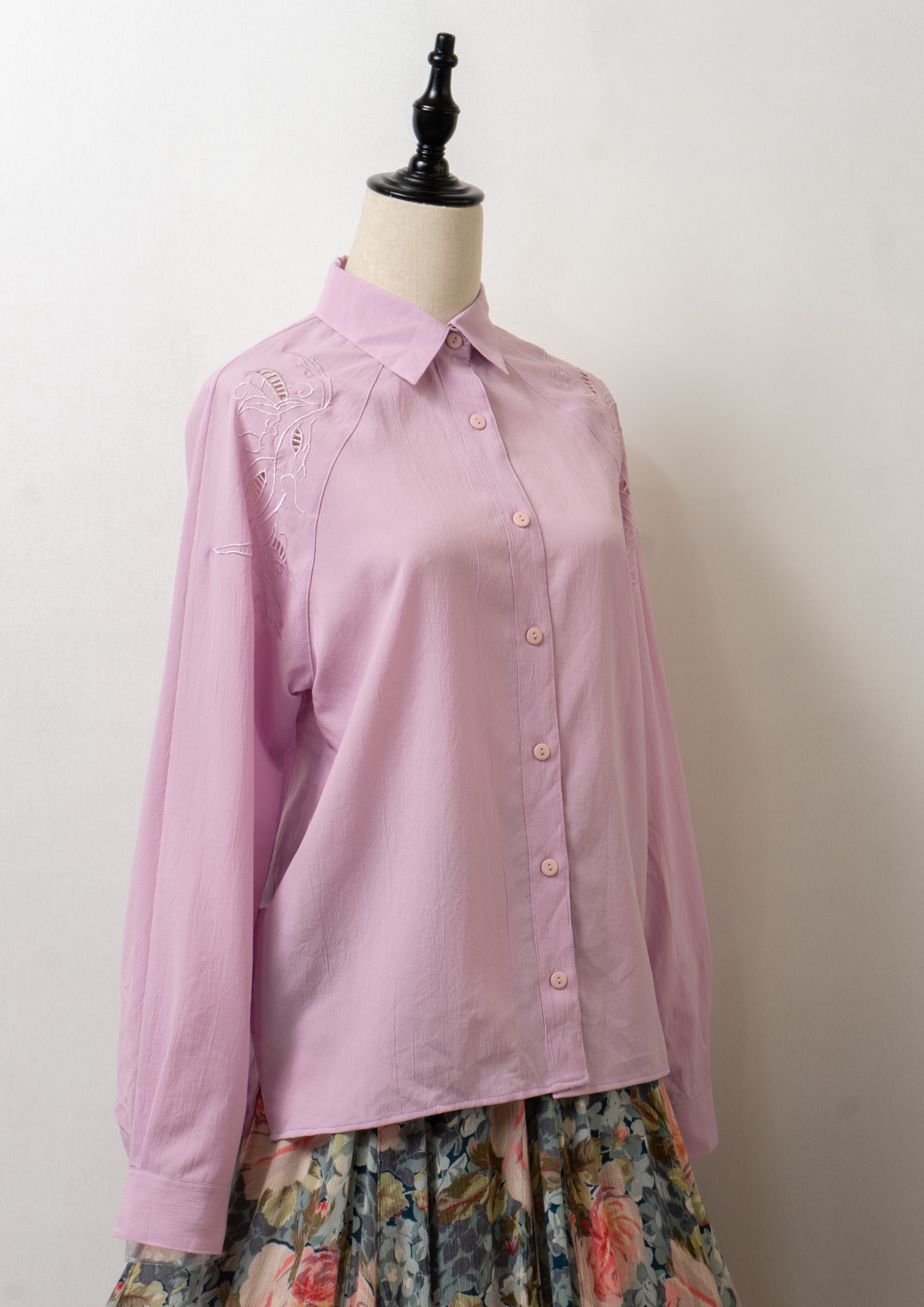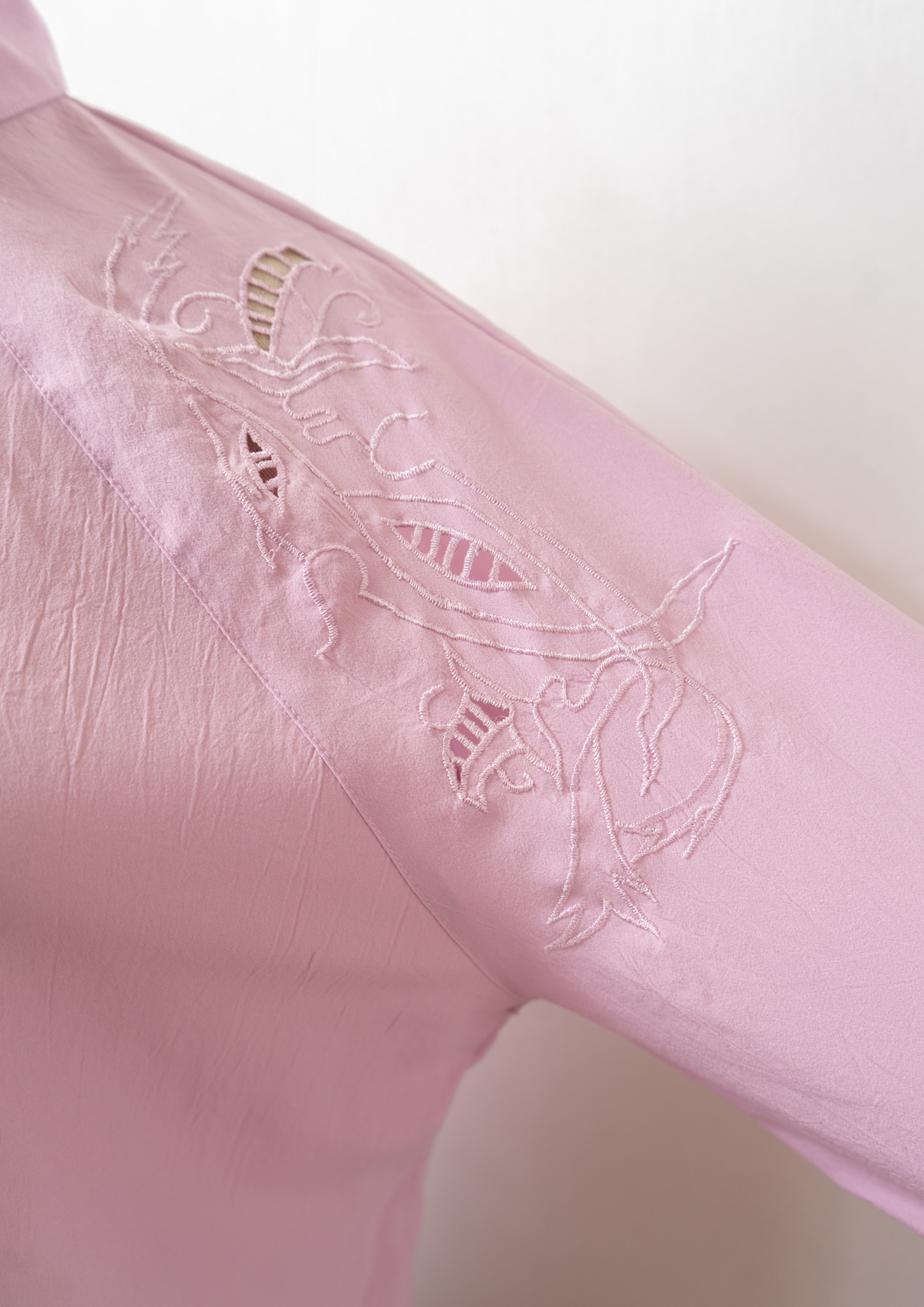 80's Botanical Cutwork Design Lavender Pink Blouse