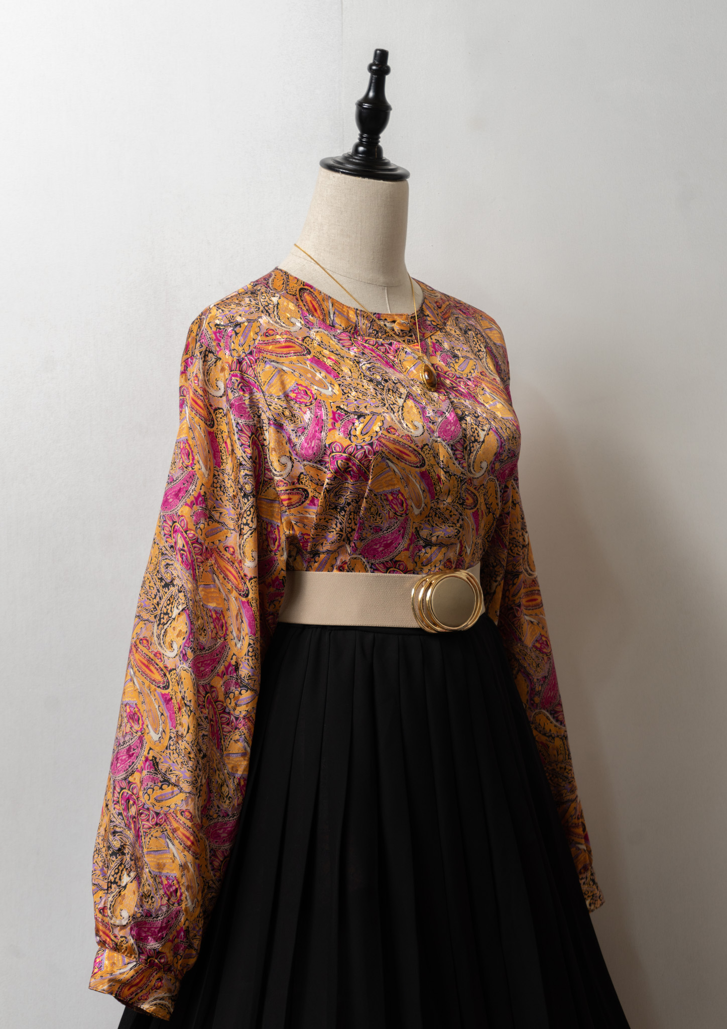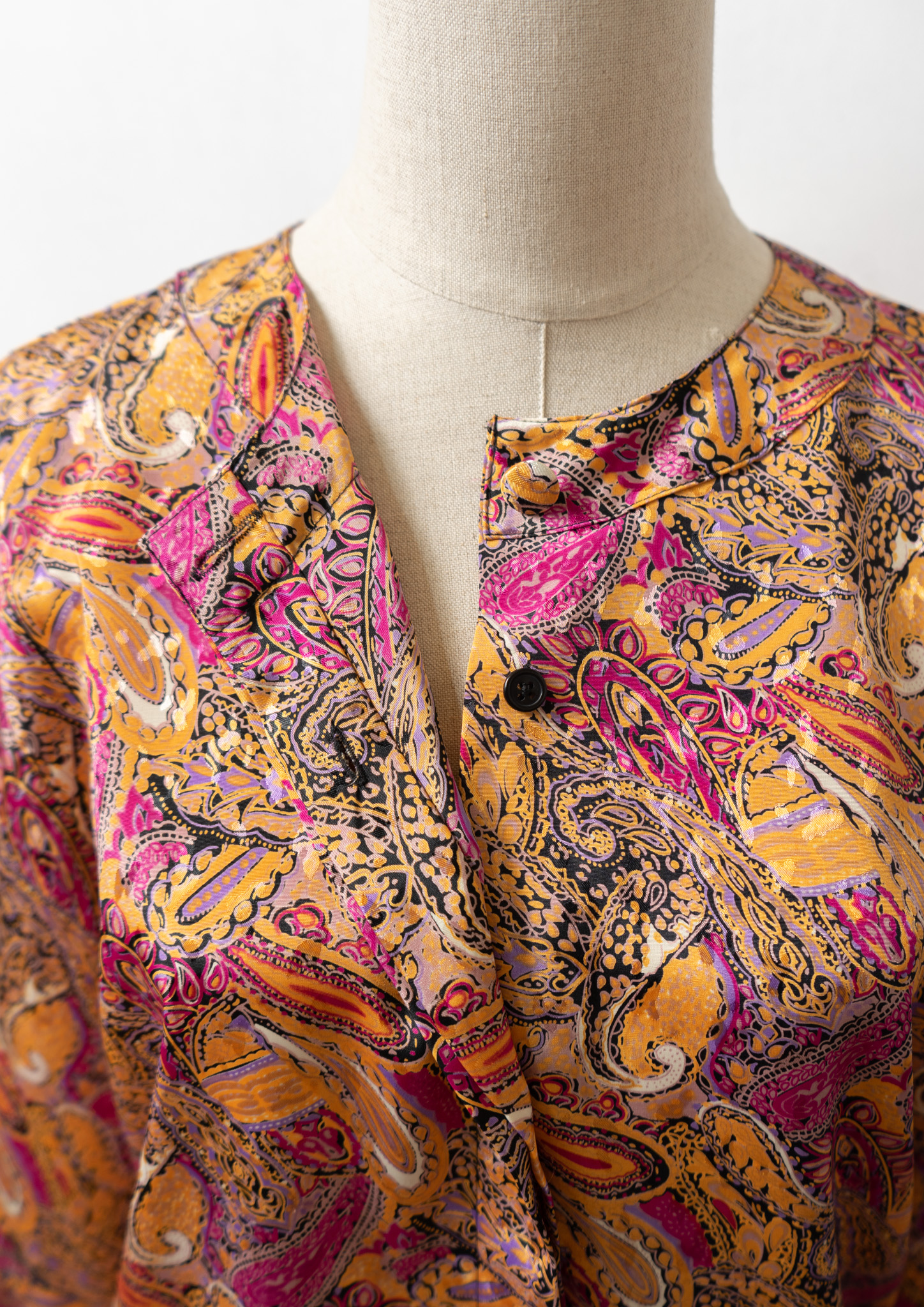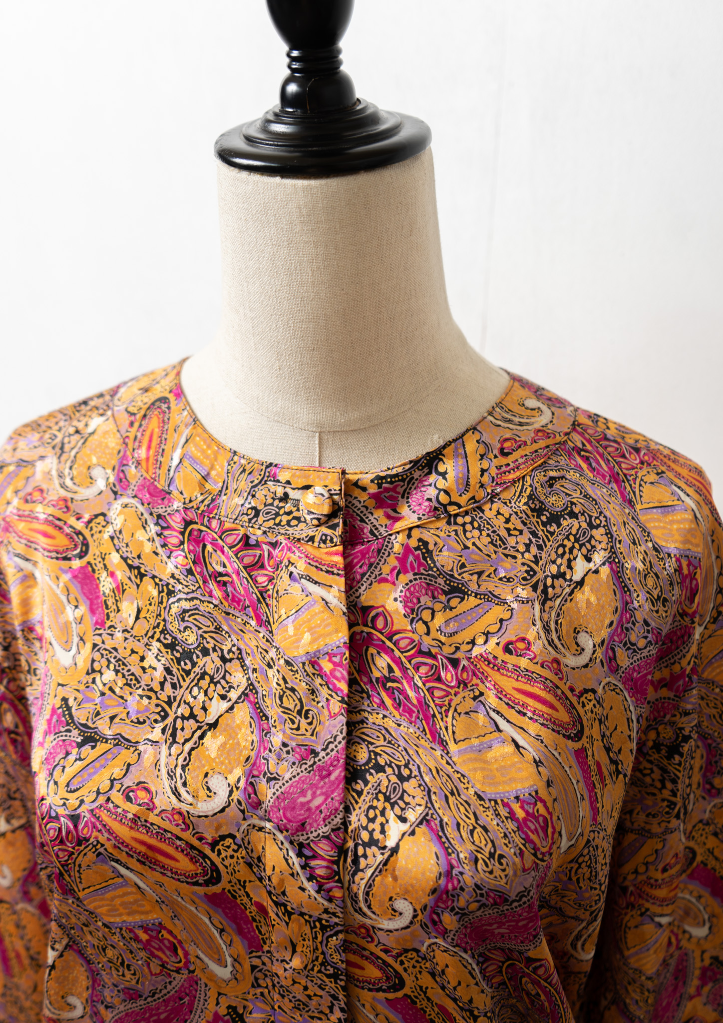 80's Botanical Cutwork Design Lavender Pink Blouse