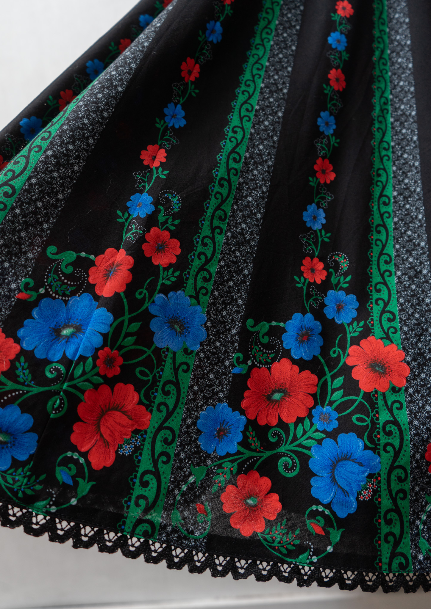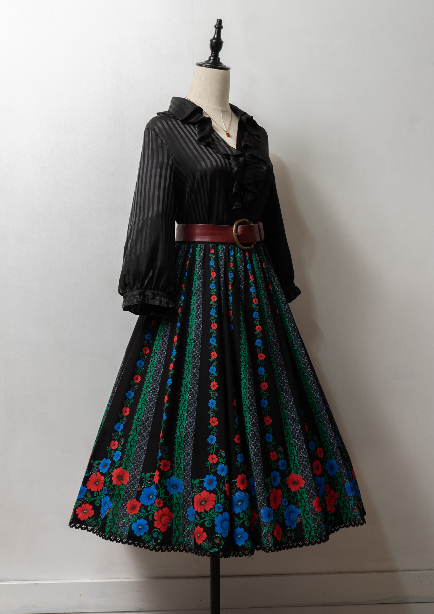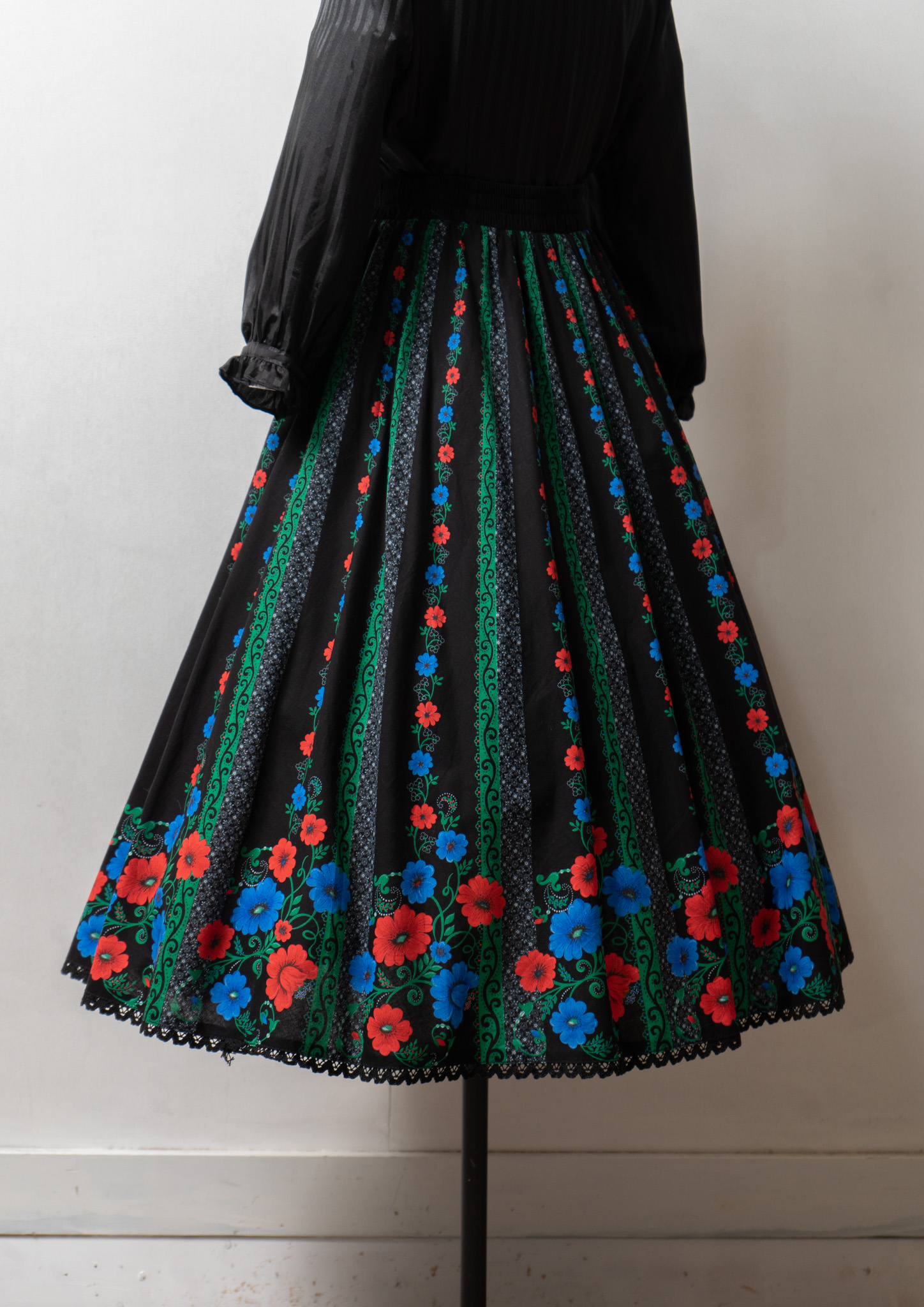90's Red × Blue Flower Pattern Black Tyrol Skirt