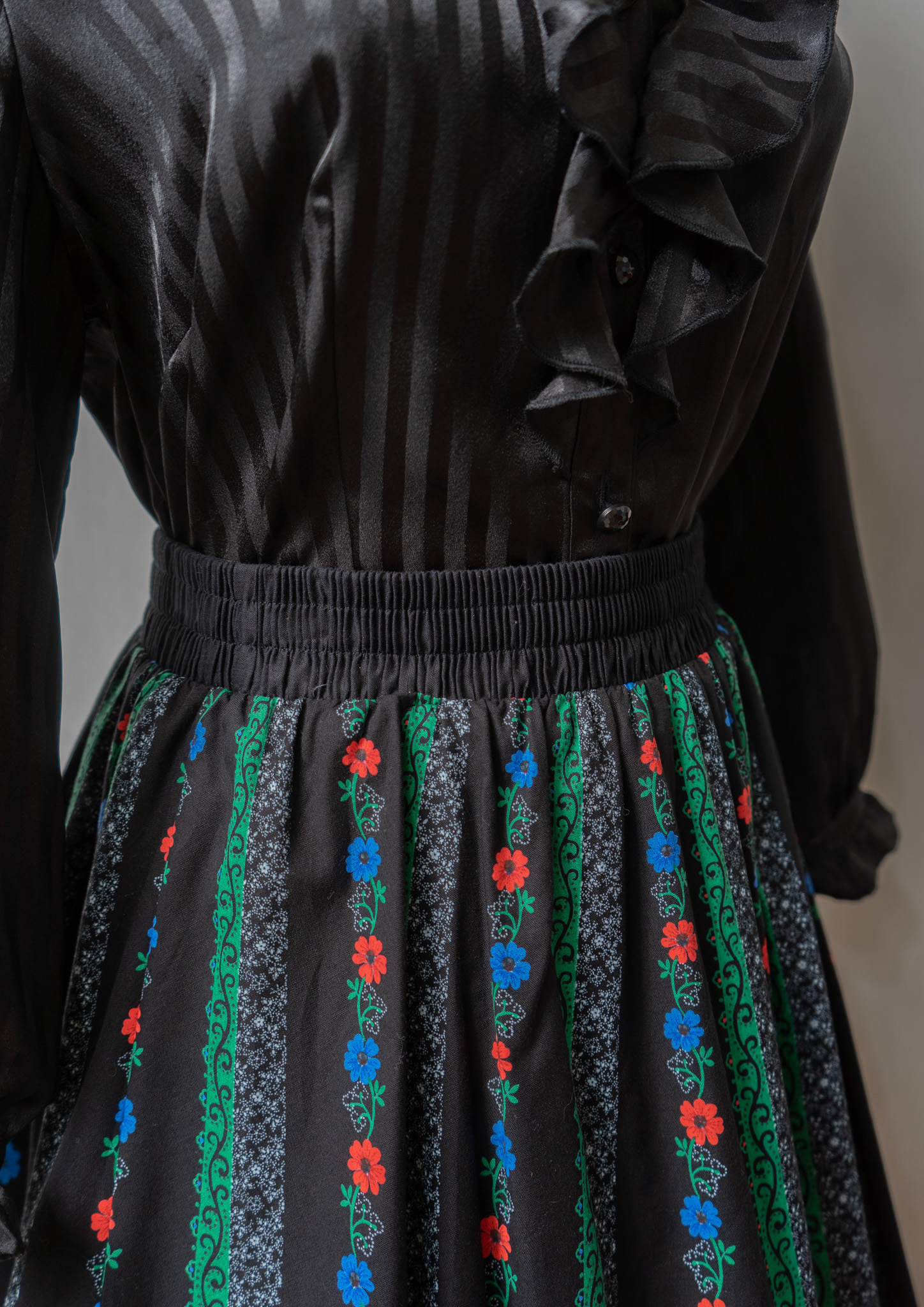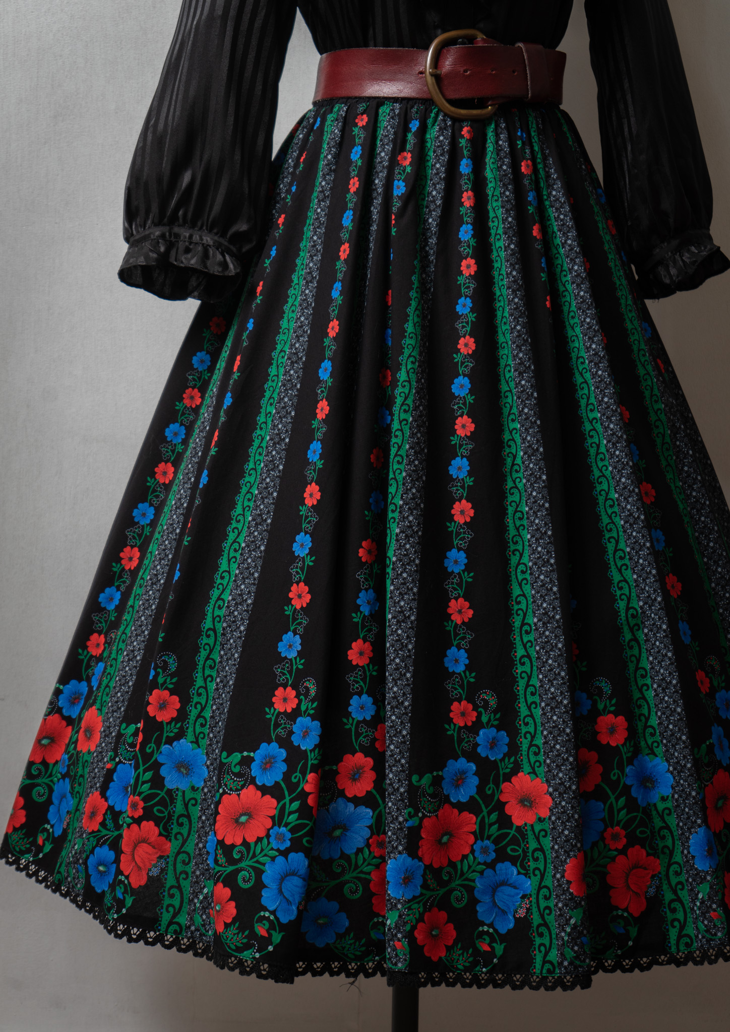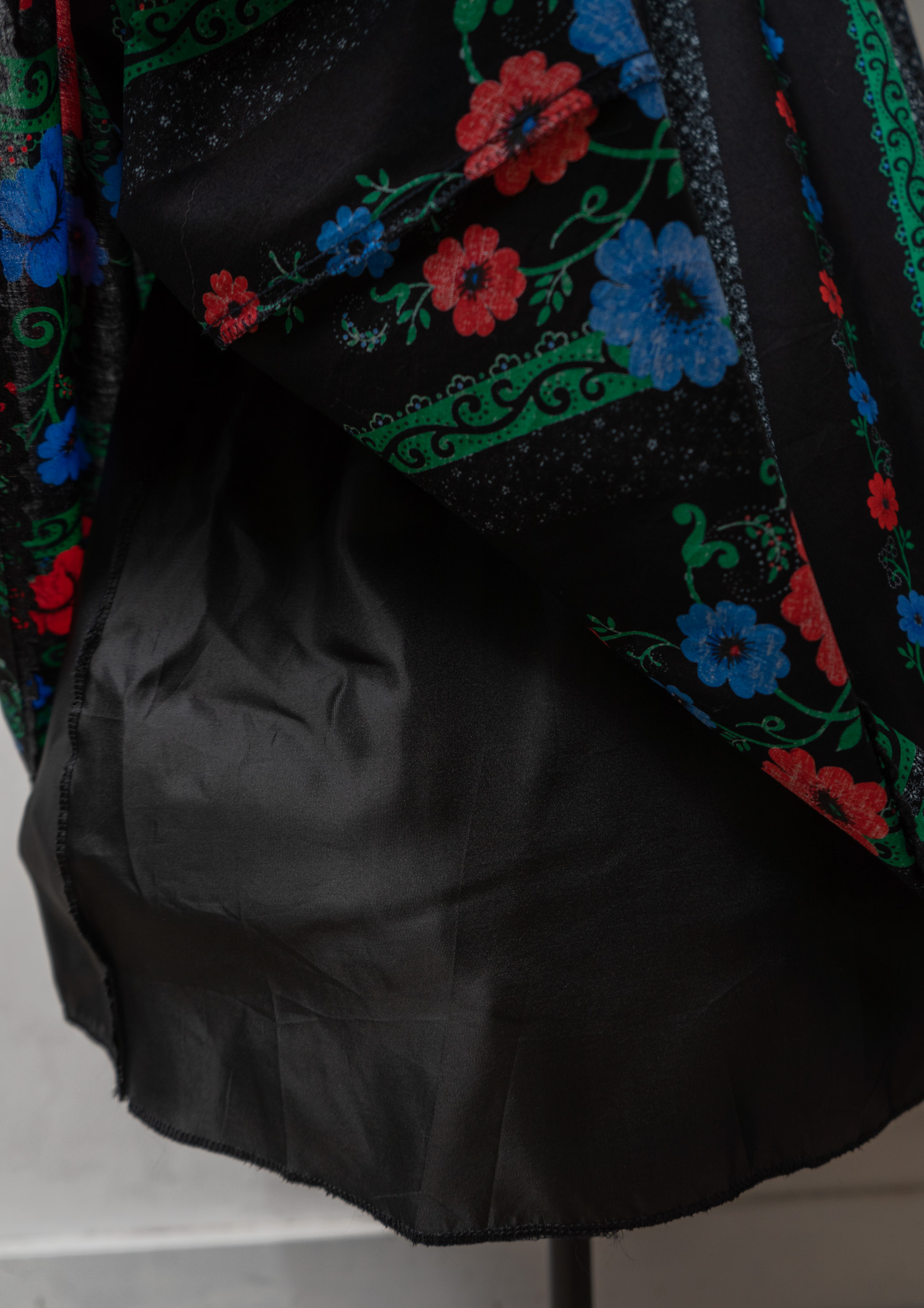 90's Red × Blue Flower Pattern Black Tyrol Skirt