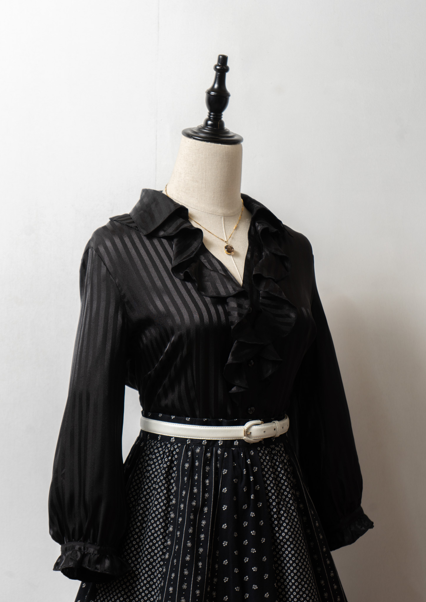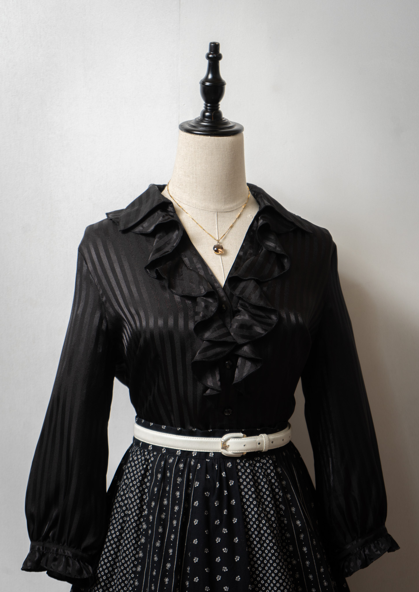 Stripe Pattern Frill Design Black Blouse