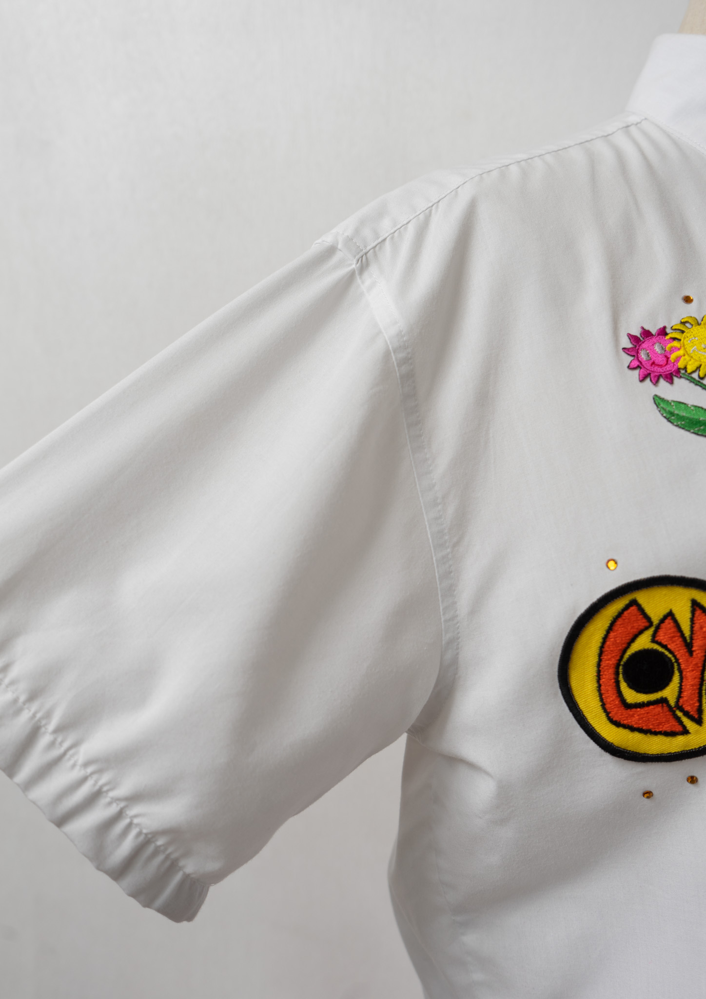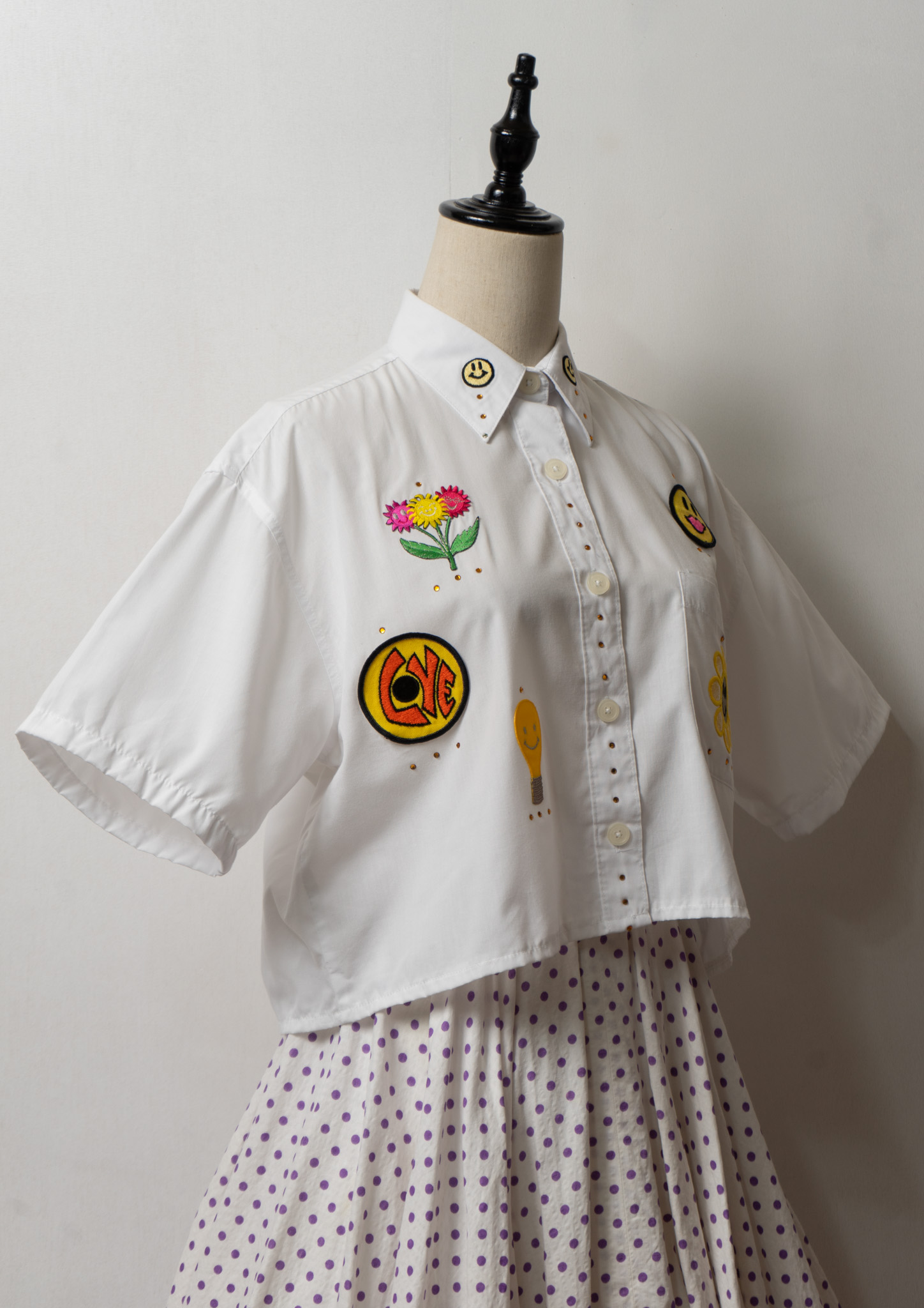 Upcycle Leaves Patchwork × Embroidery White Cropped Blouse