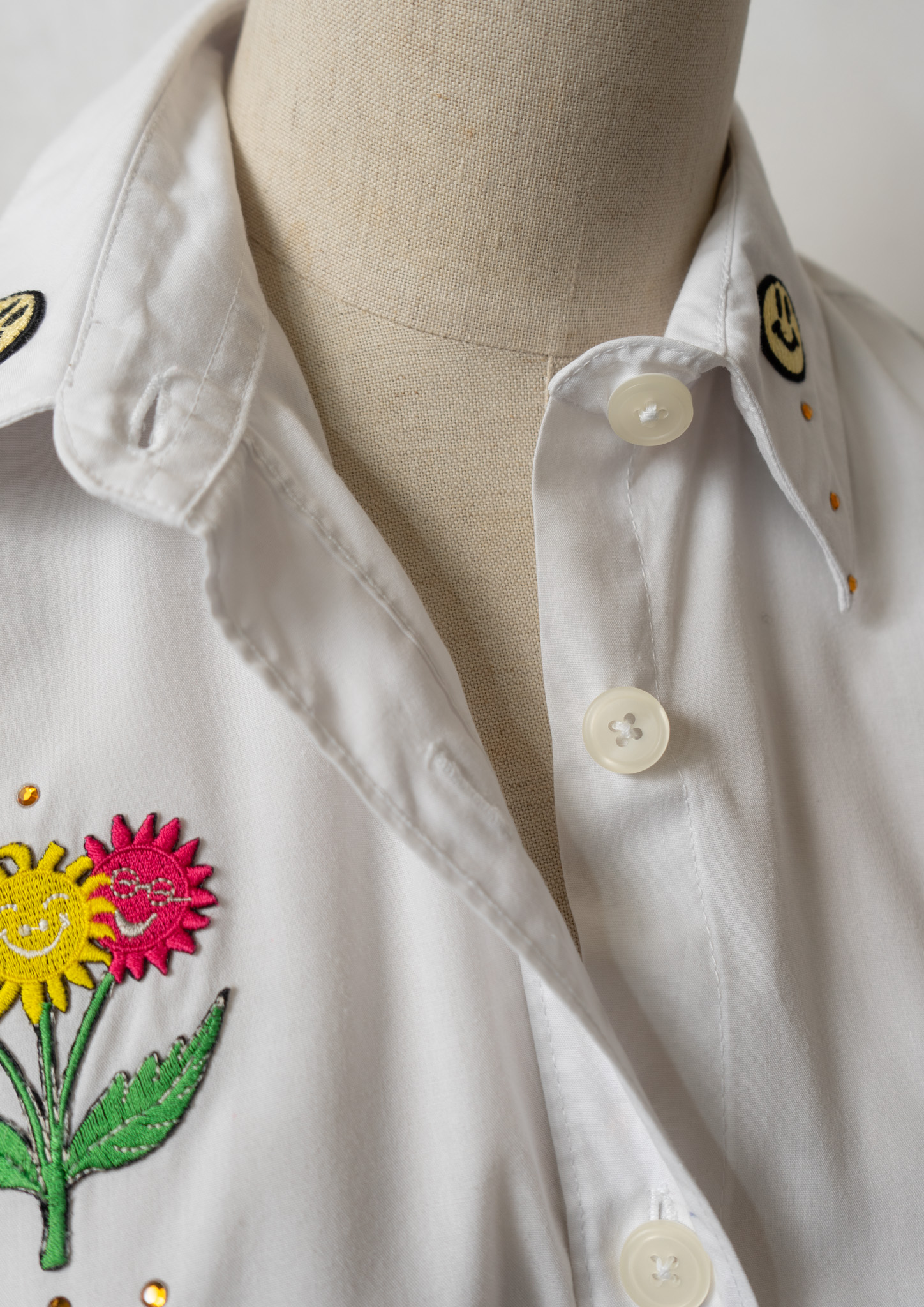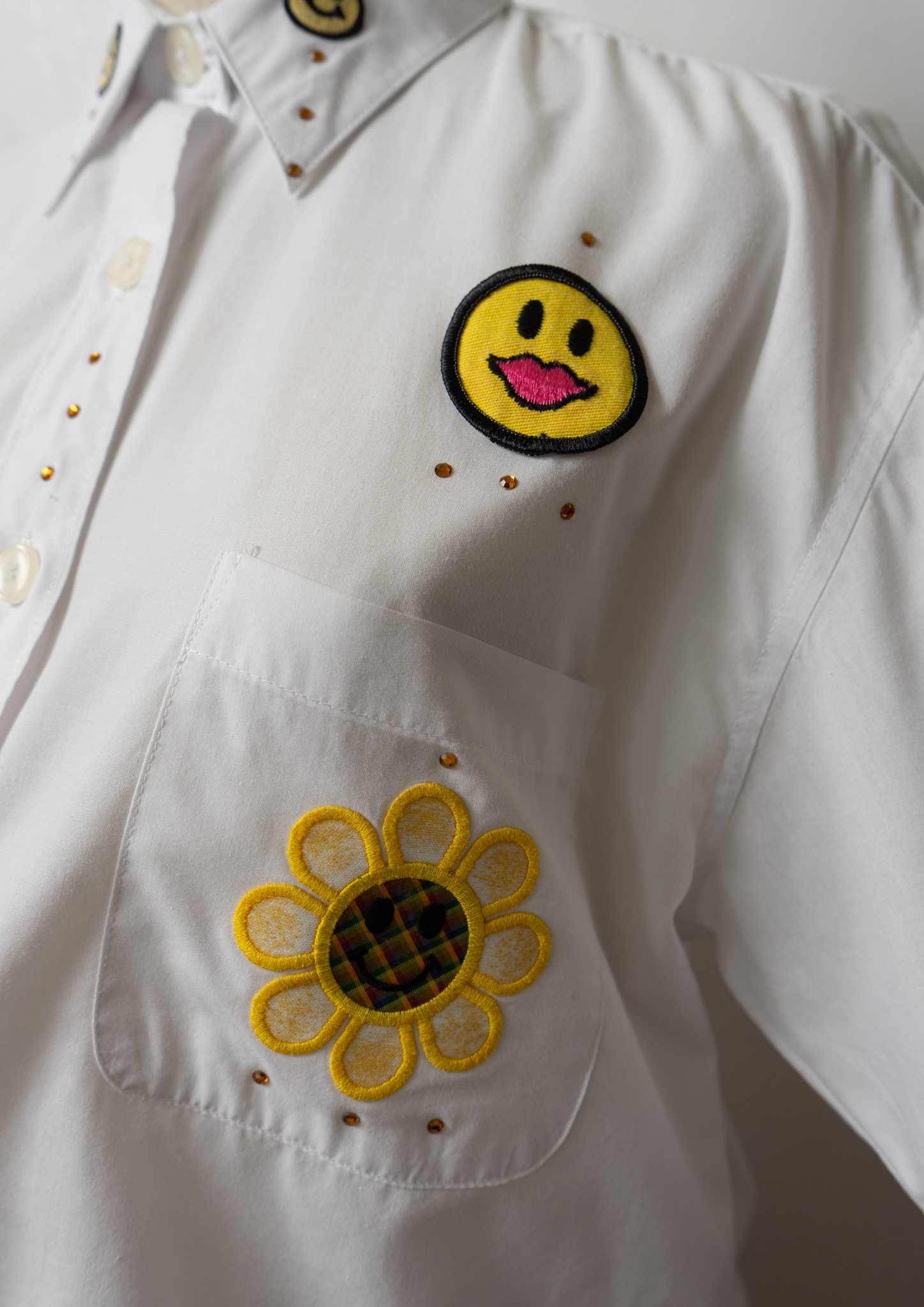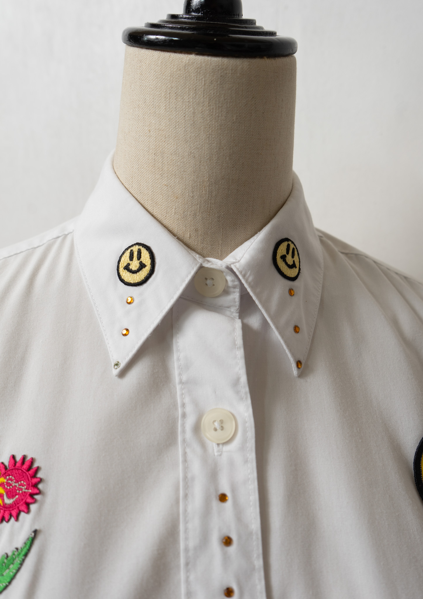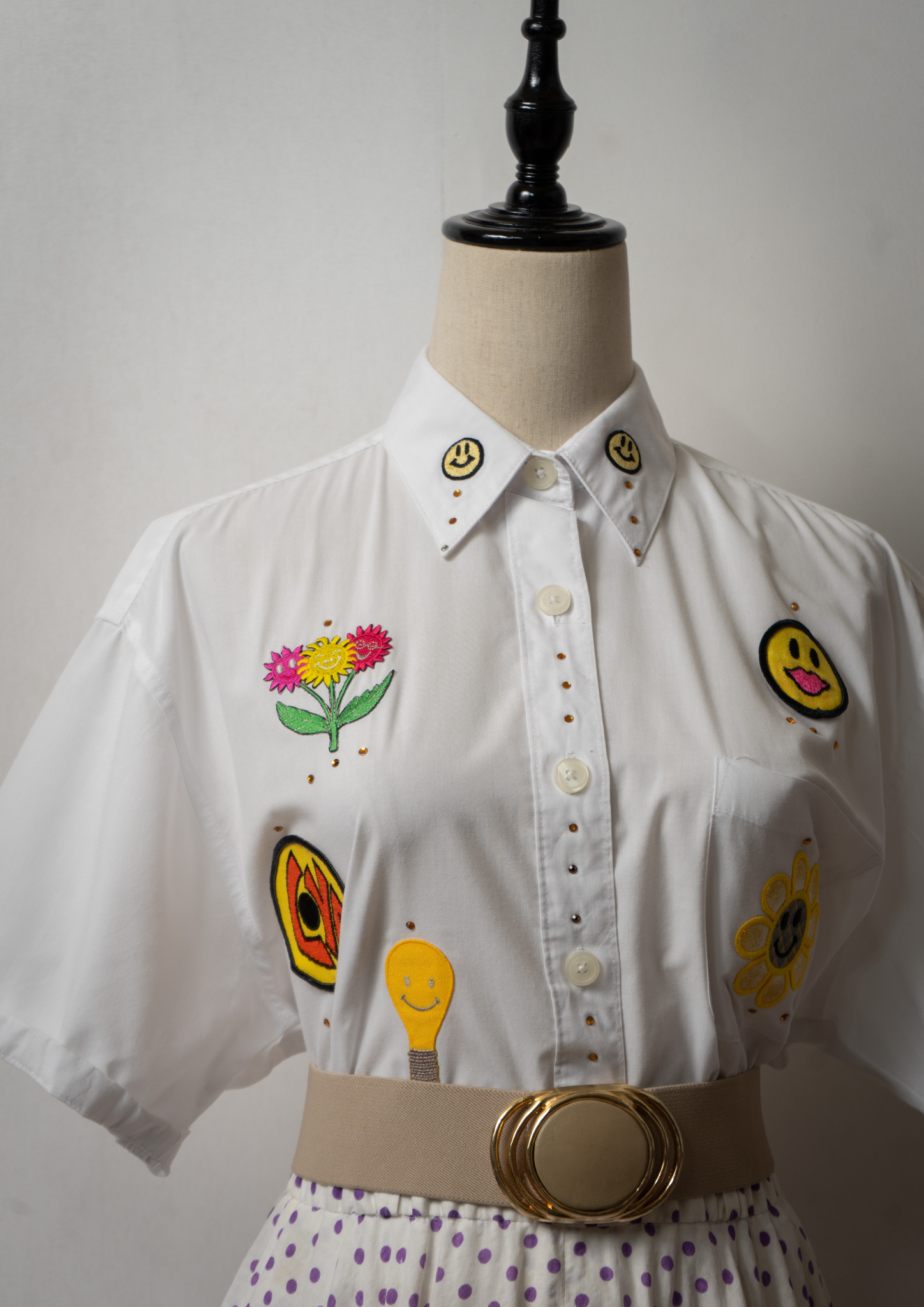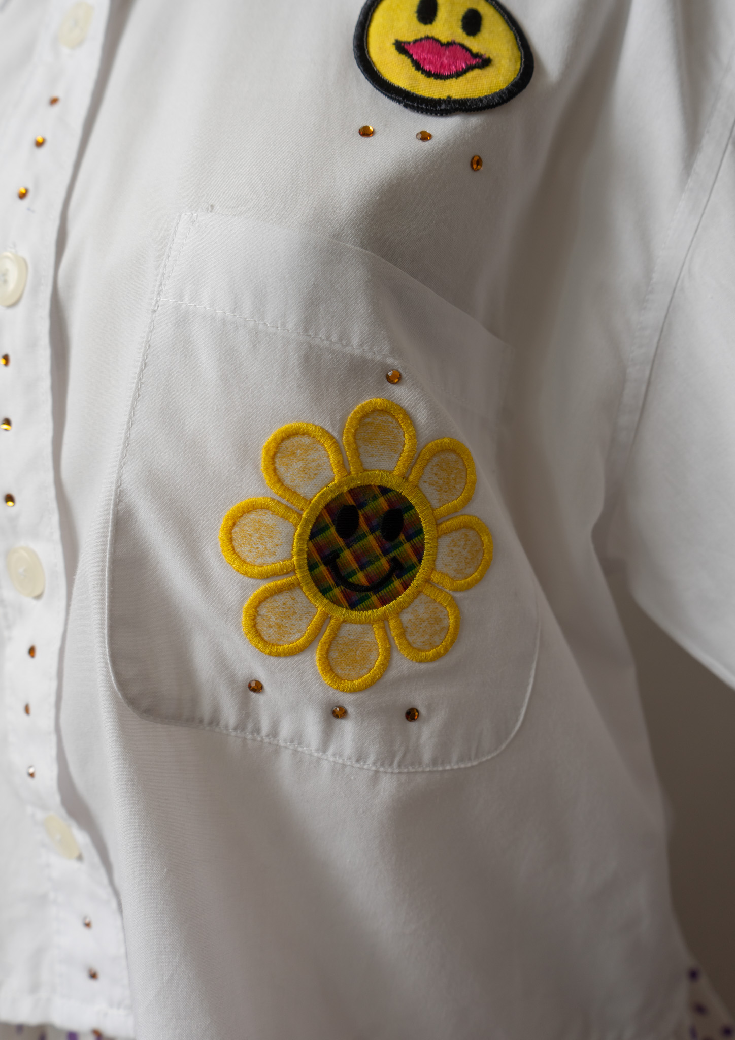 Upcycle USA Smile Patchwork White Cropped Blouse