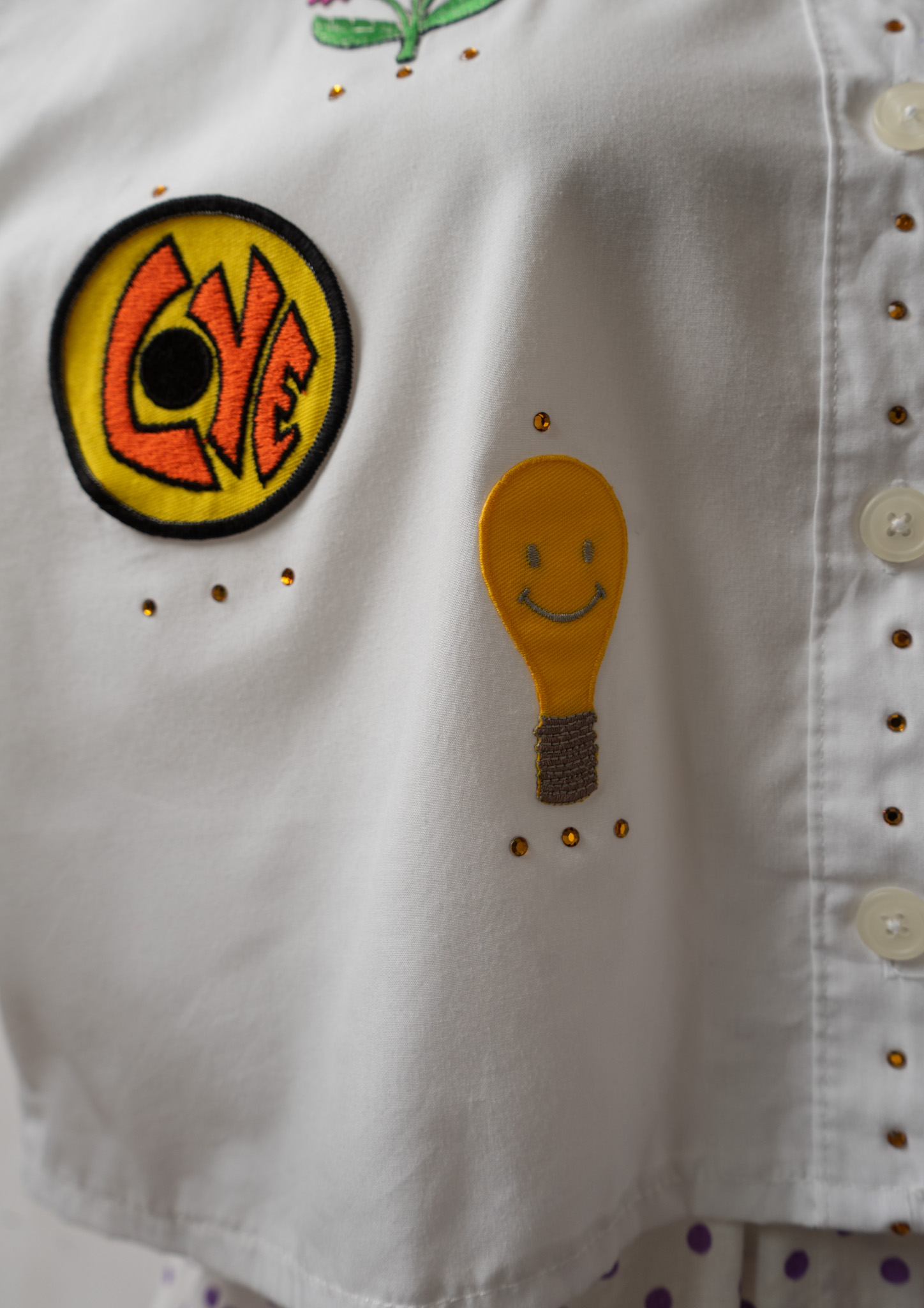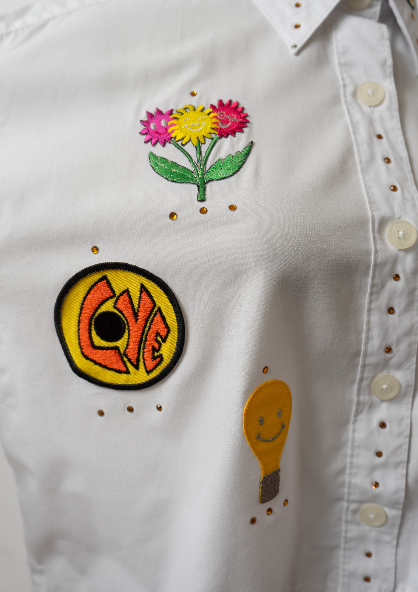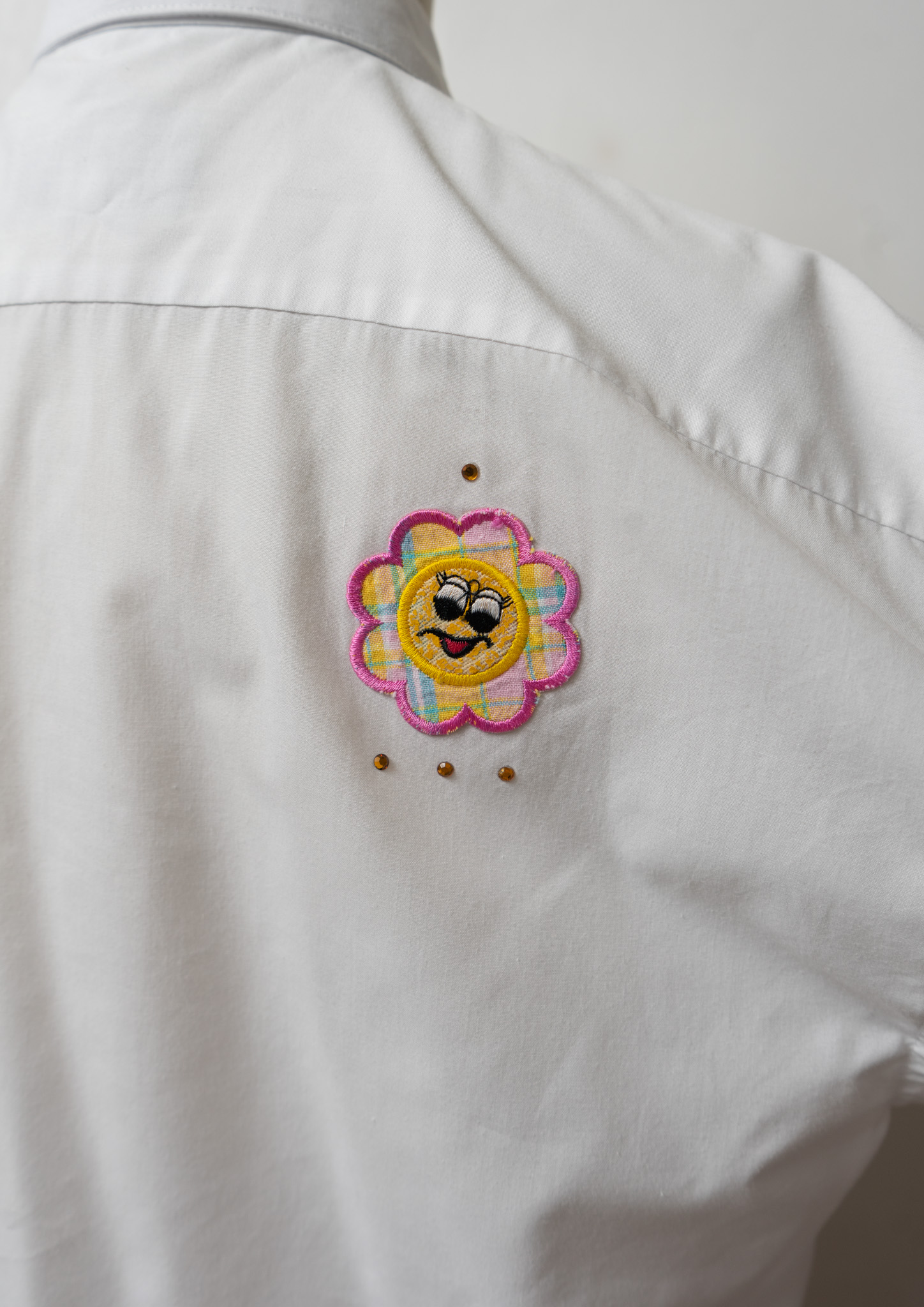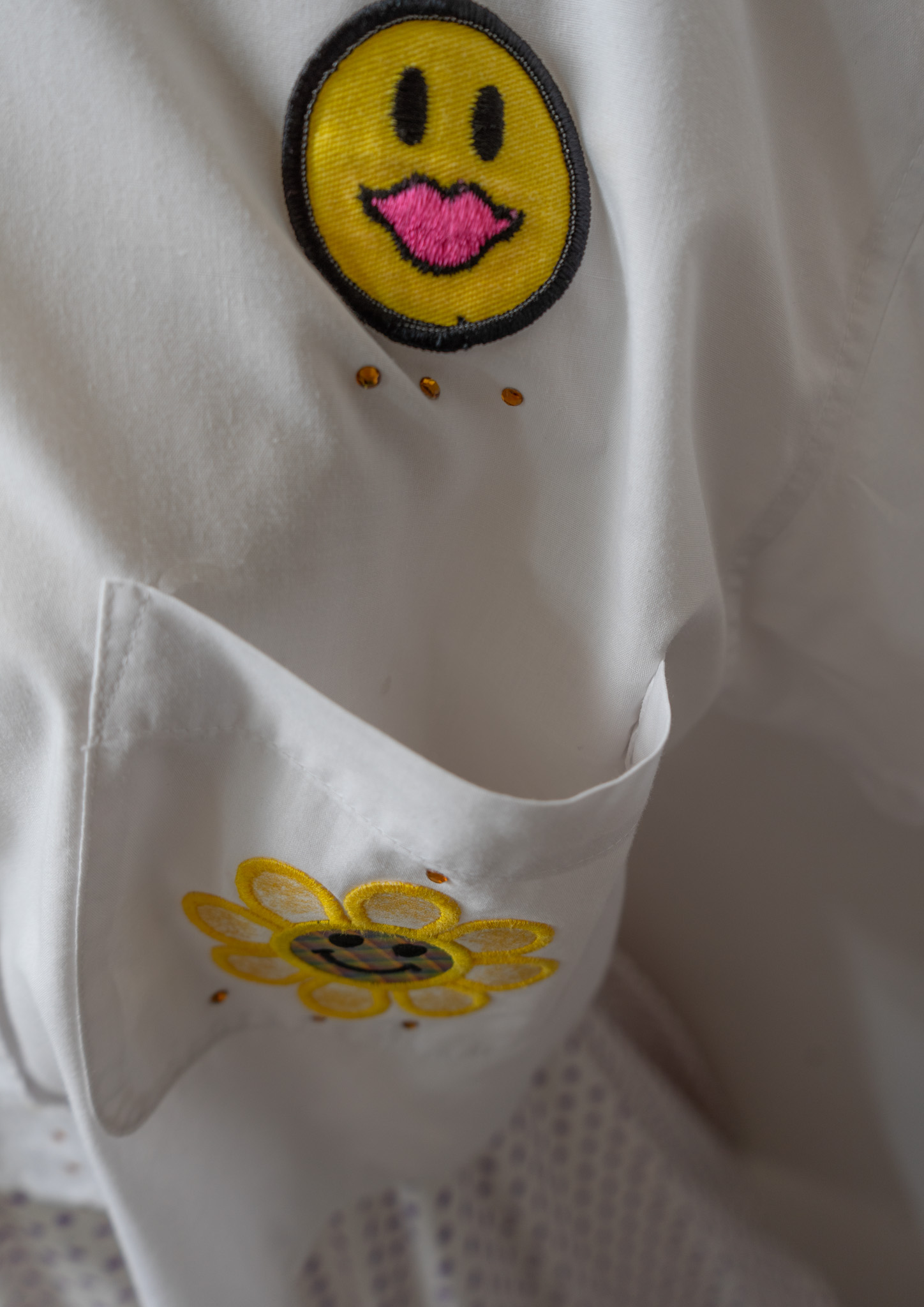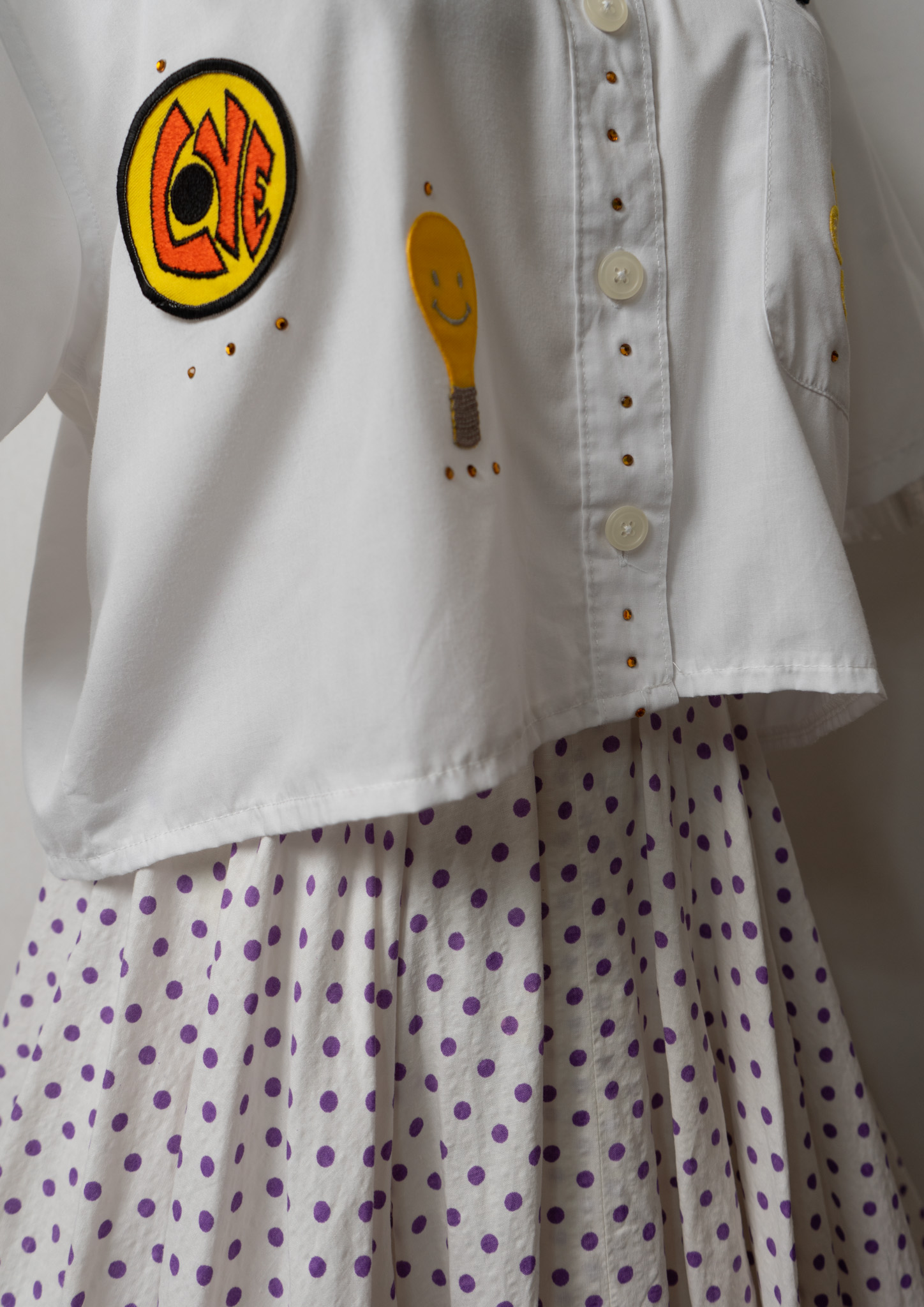 Upcycle USA Smile Patchwork White Cropped Blouse