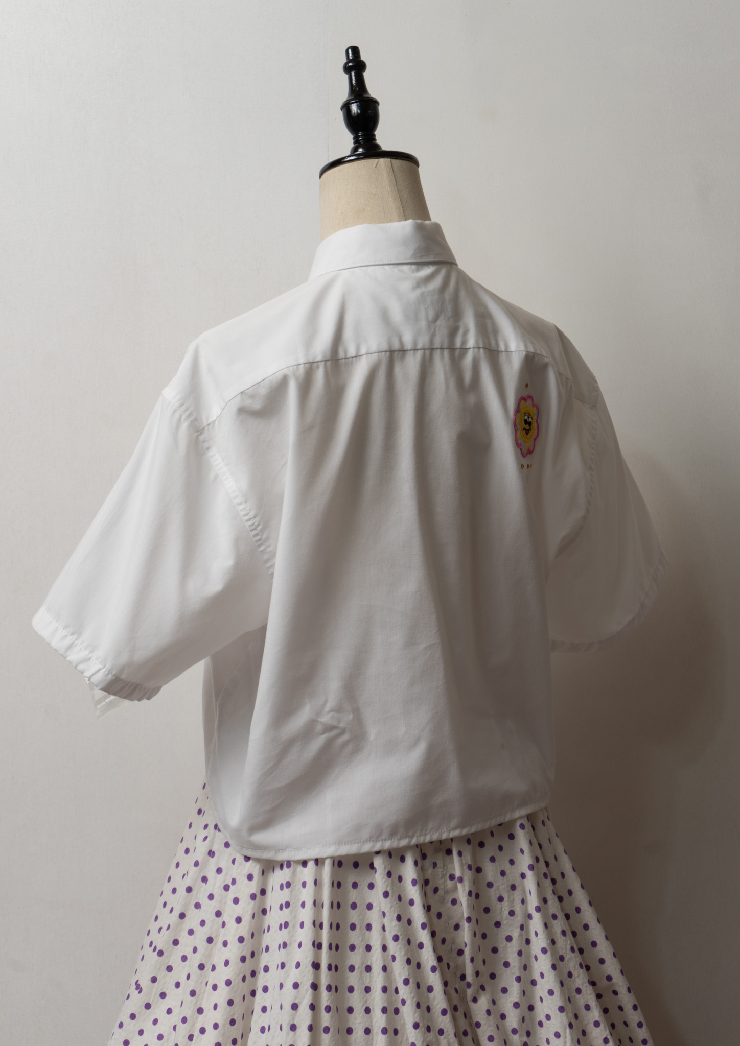 Upcycle Check pattern × Flower Embroidery White Cropped Blouse